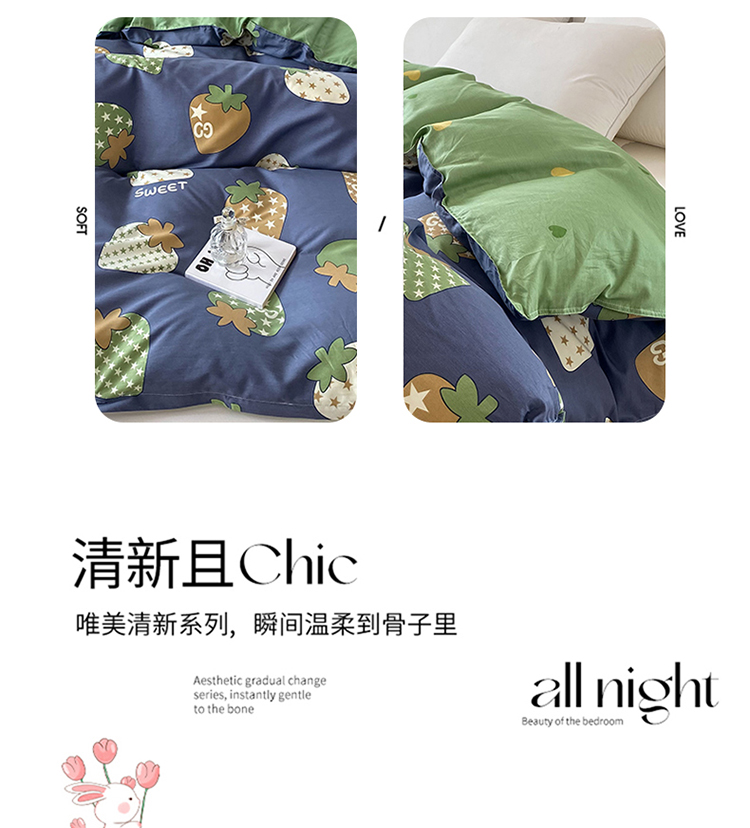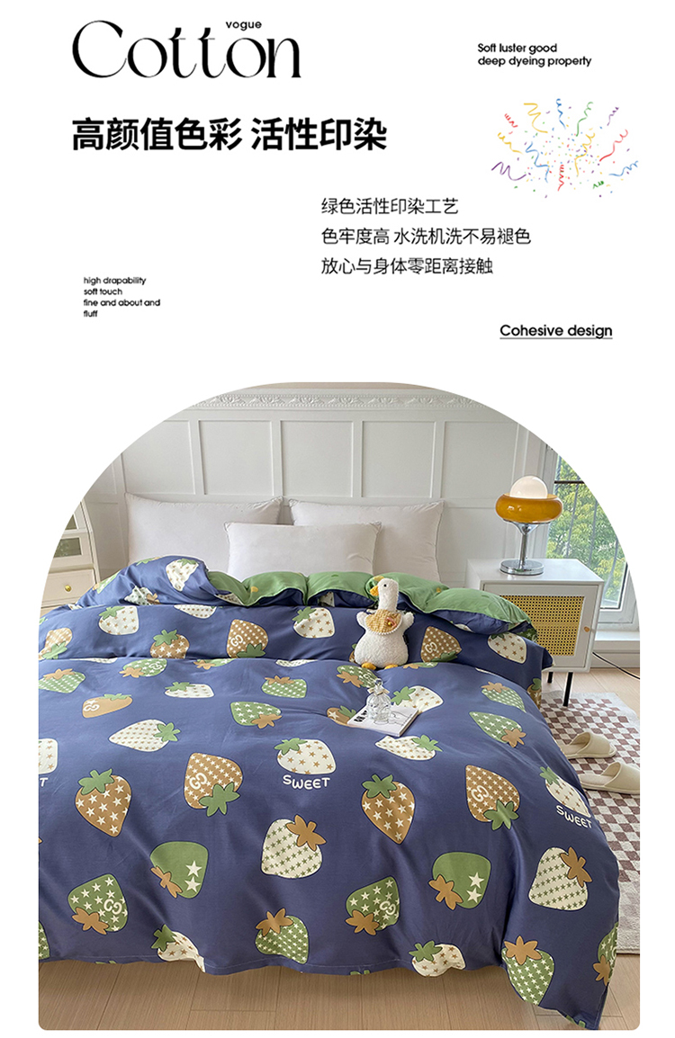 商品名称:帛织澜 2025新款全棉被套喷气12868系列纯棉单被套(预留缩水) 草莓园