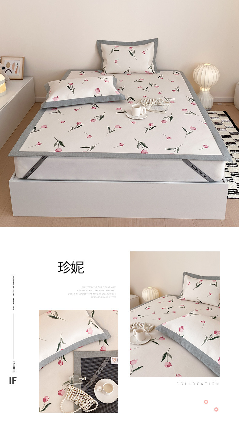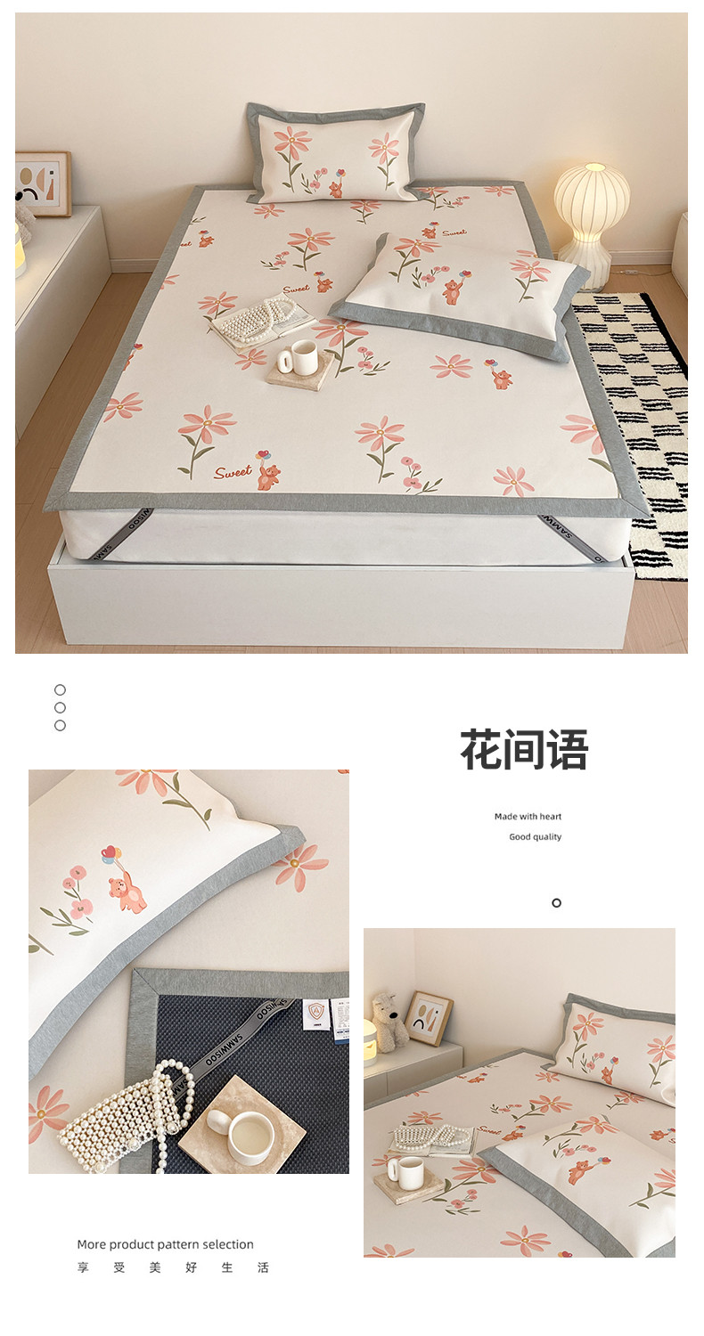 (总)三味舒屋 2025新款仲夏手札时尚印花冰藤凉席席子,仲夏手札米 床席,仲夏手札粉 床席,仲夏手札灰 床席,仲夏手札粉 床笠,仲夏手札灰 床笠,仲夏手札米 床笠