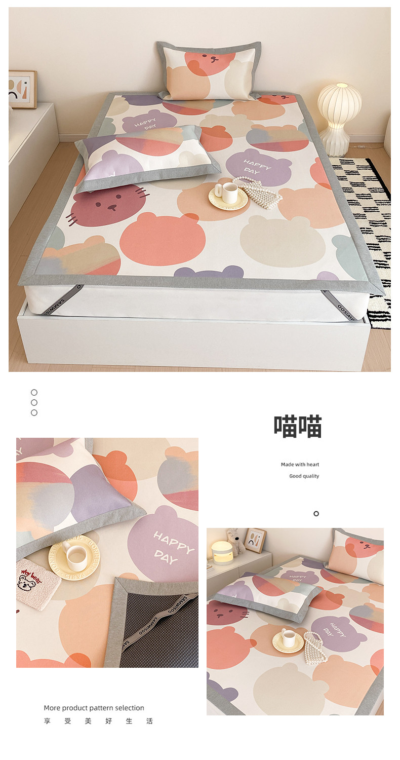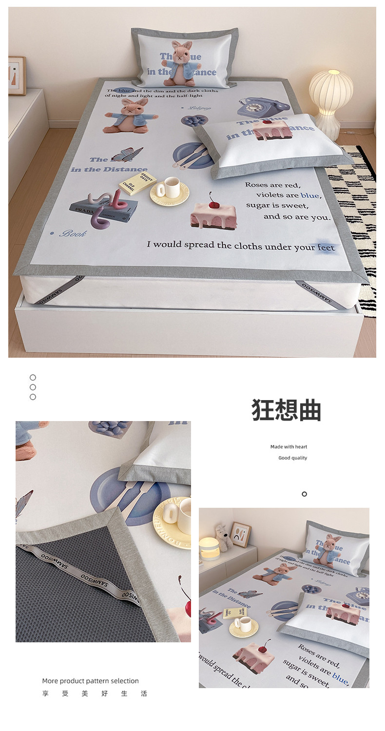 商品名称:总三味舒屋 2025新款凉感抗菌防螨卡通印花冰丝养生席-床席款