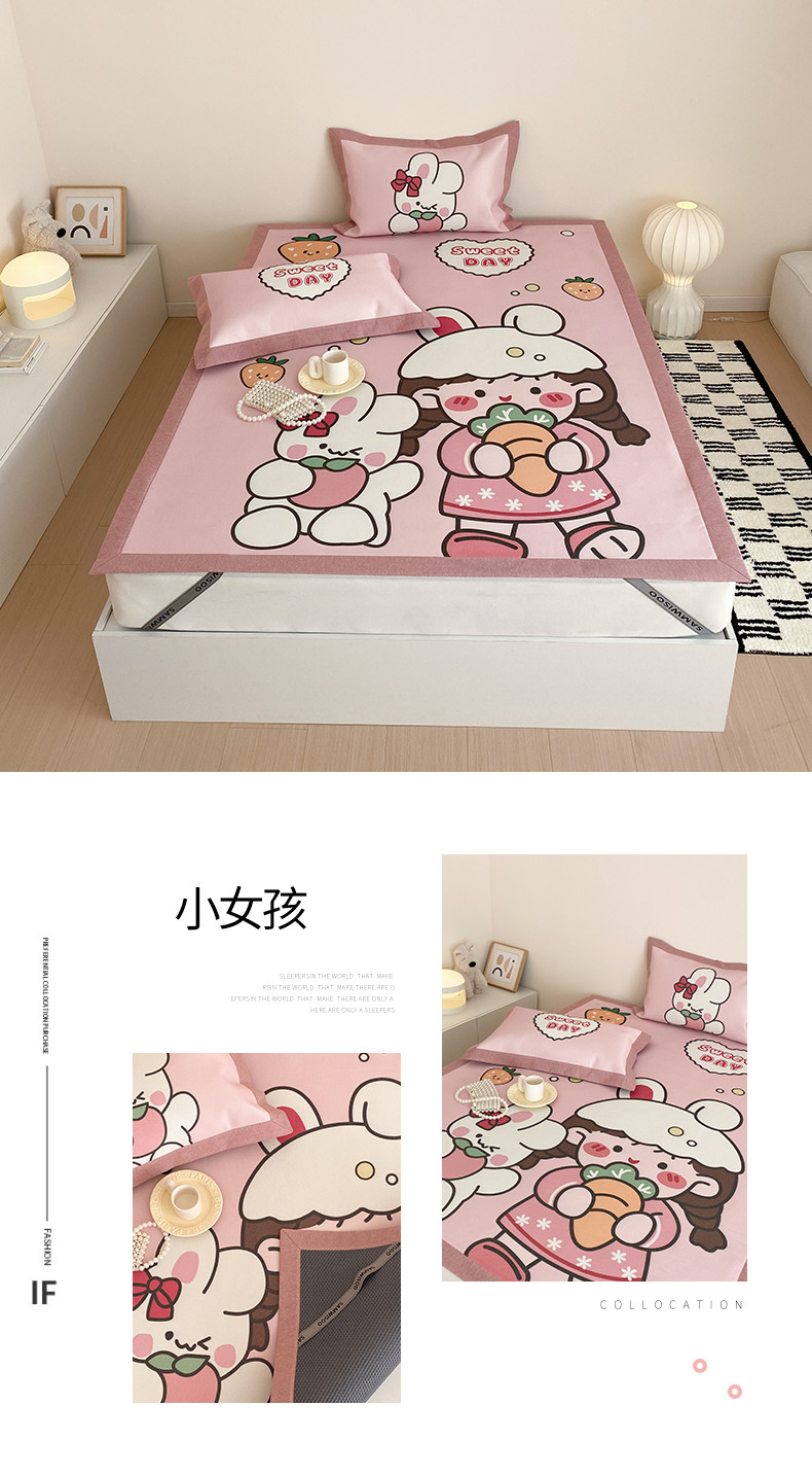 总三味舒屋 2025新款凉感抗菌防螨卡通印花冰丝养生席-床席款