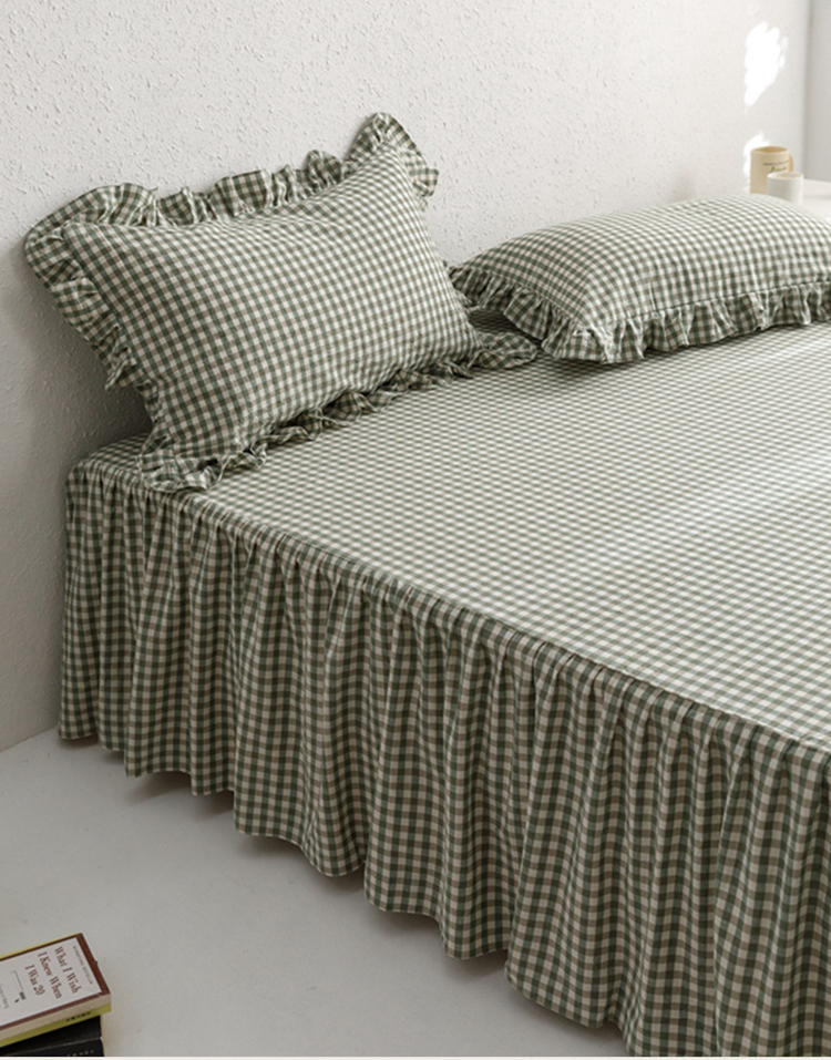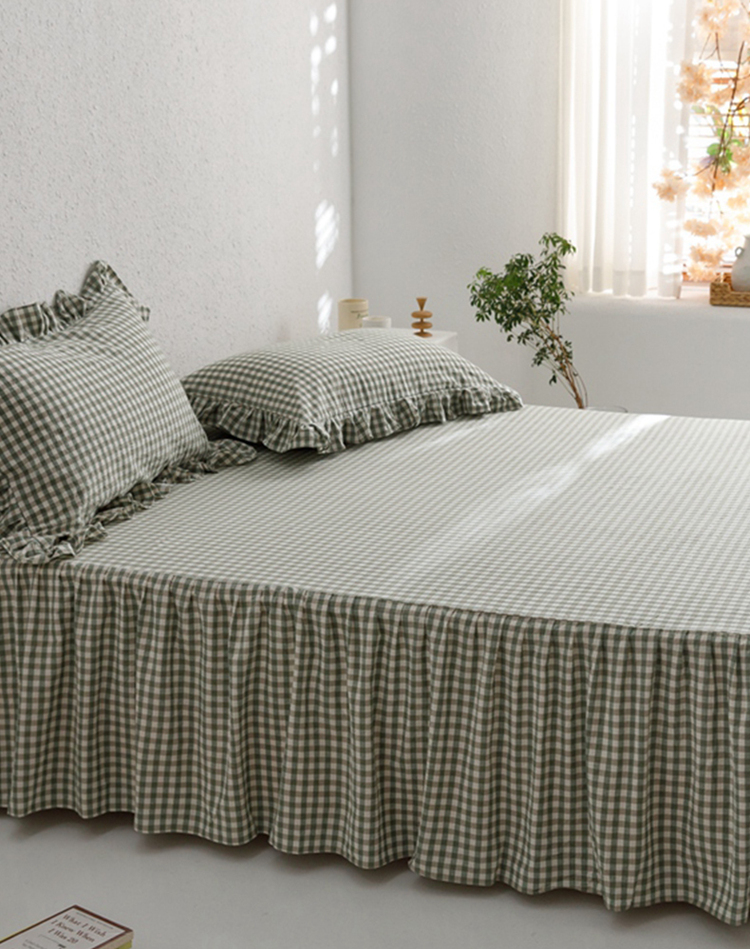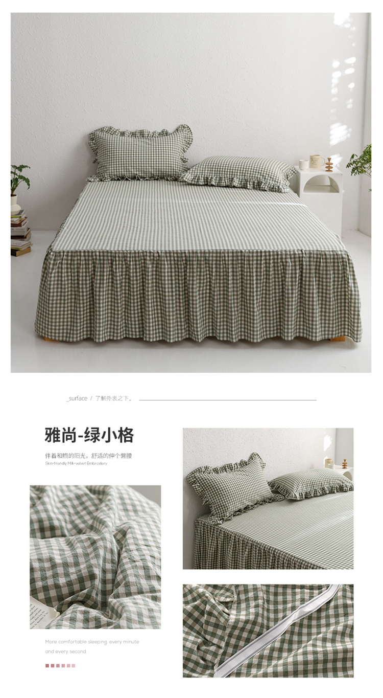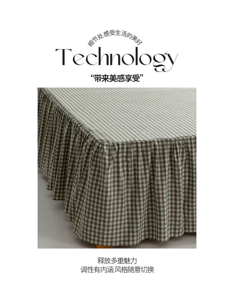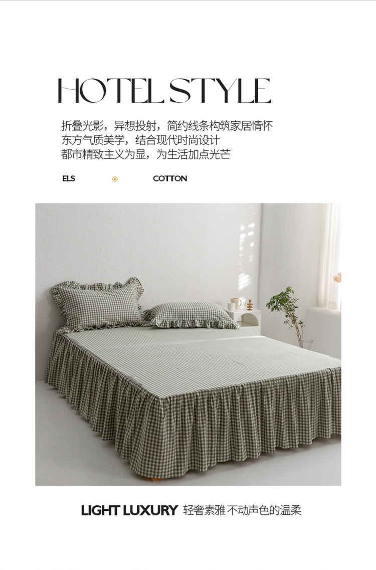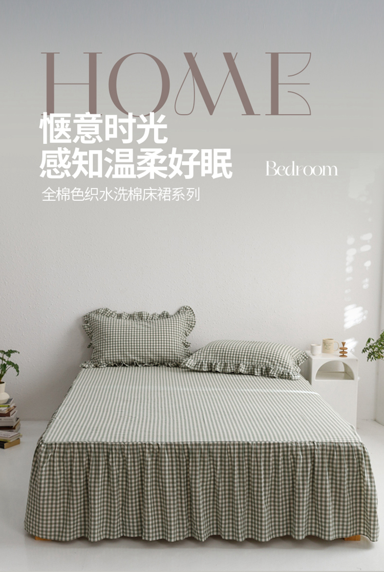 忘忧草 2023新款全棉色织水洗棉床裙纯棉格子 雅尚-绿小格