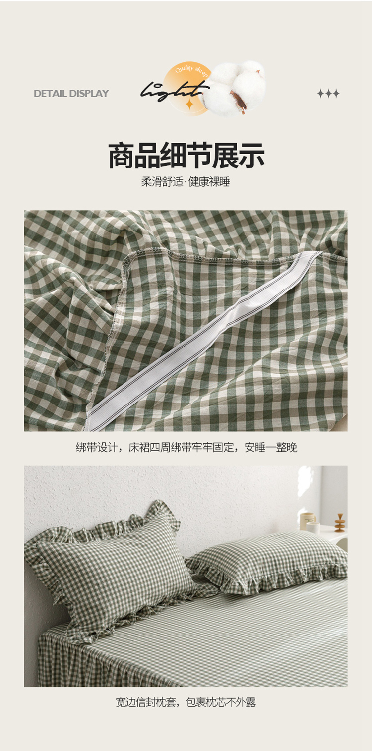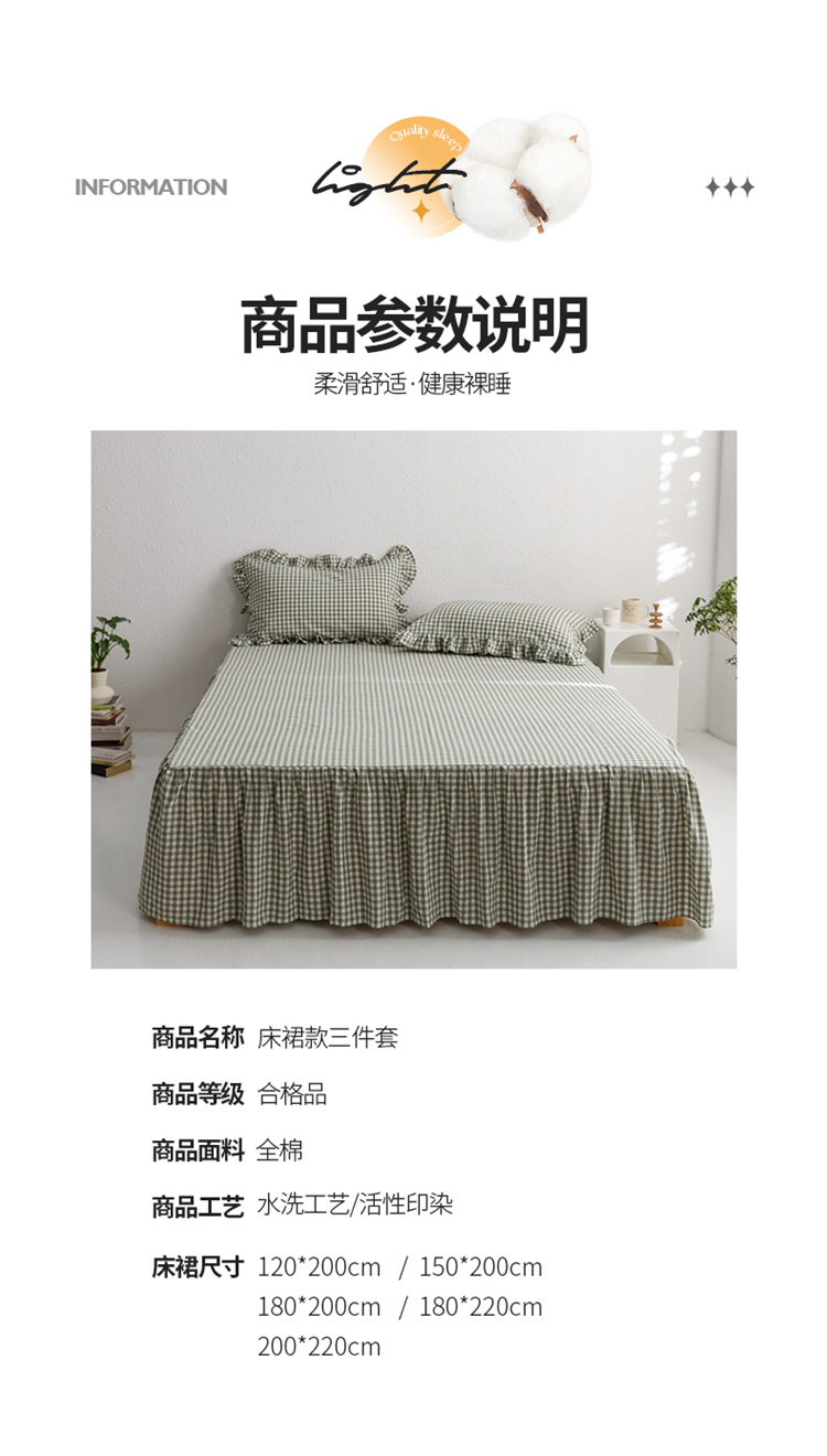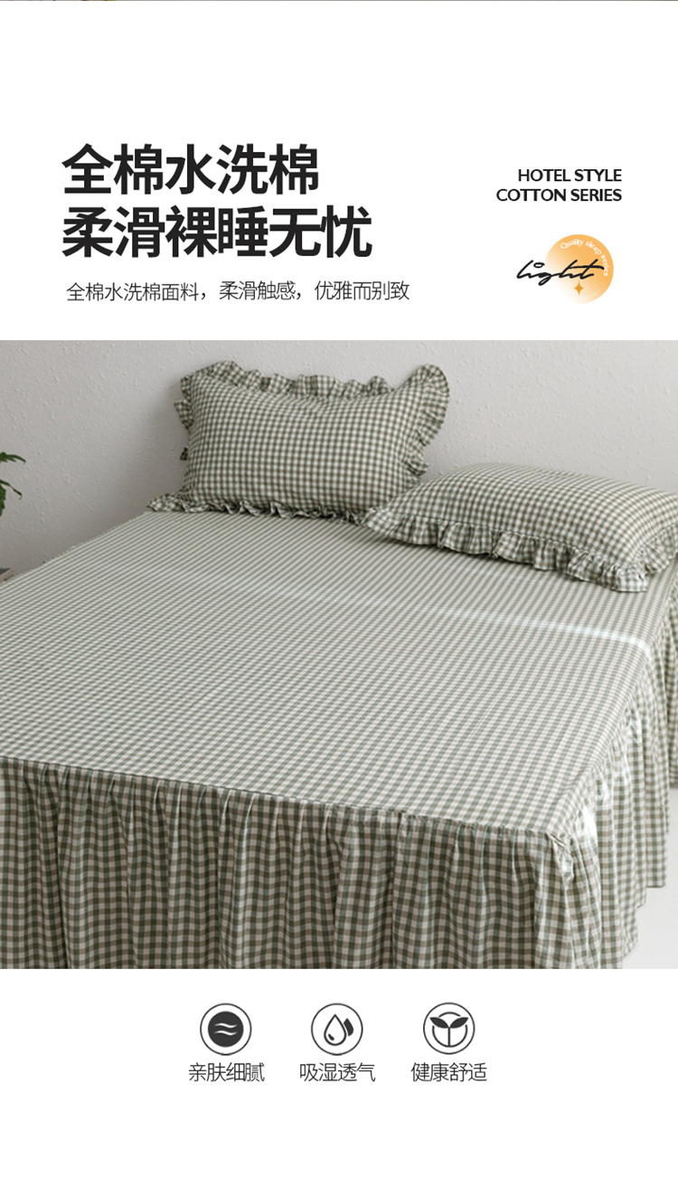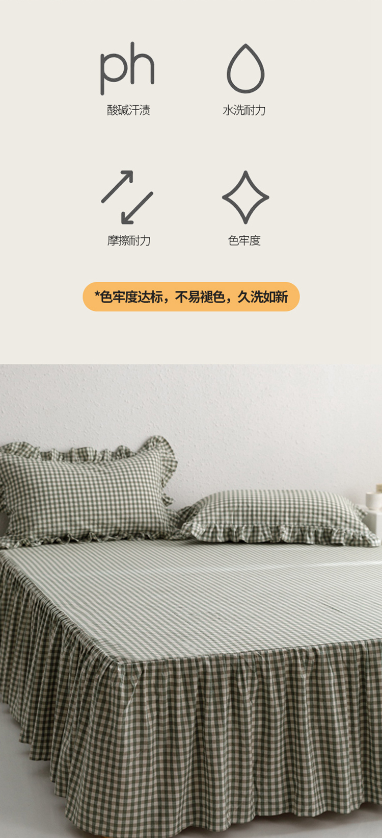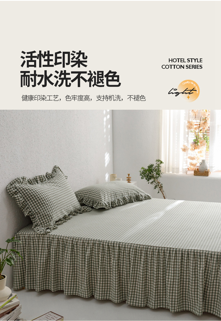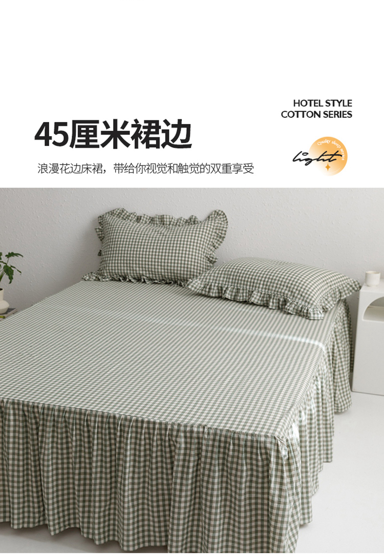 商品名称:忘忧草 2023新款全棉色织水洗棉床裙纯棉格子 雅尚-绿小格