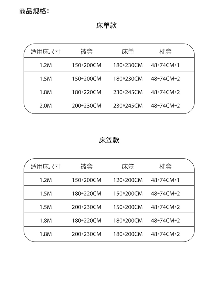1.8m床笠款四件套(被套200*230cm) | ¥66.00 |