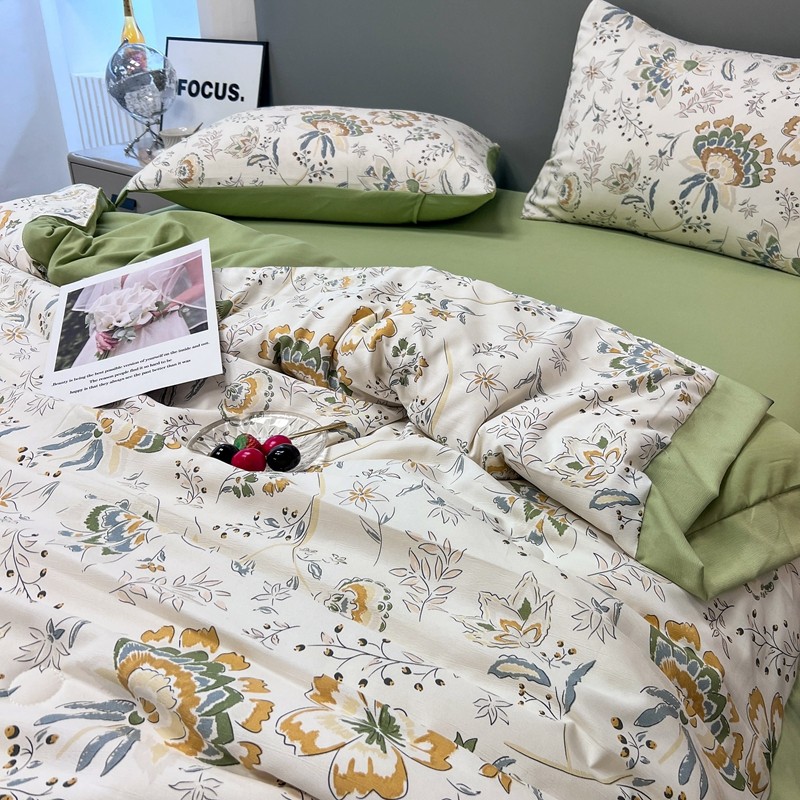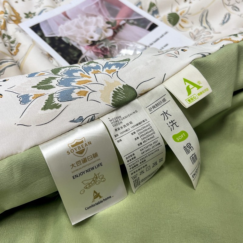 商品名称:慕尚 2025新款水洗棉麻夏被四件套 春意盎然