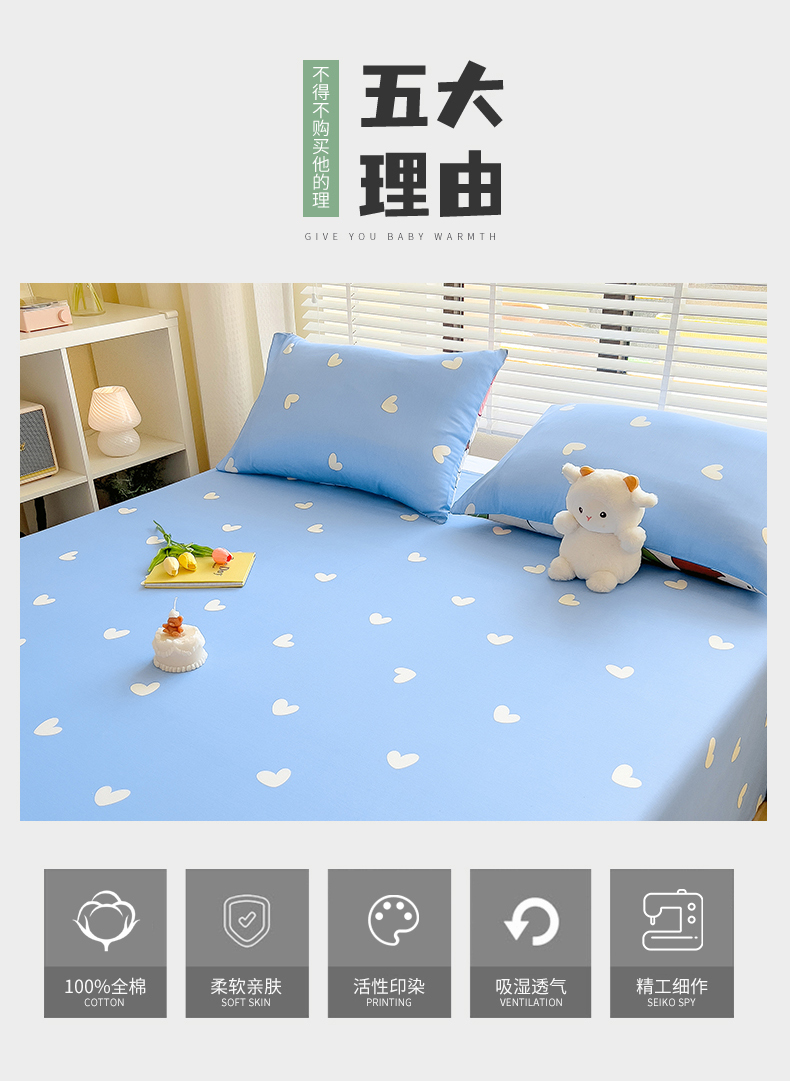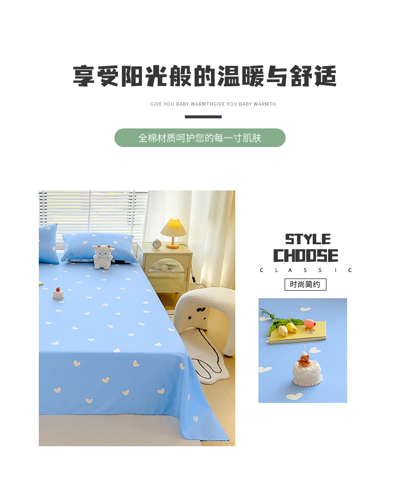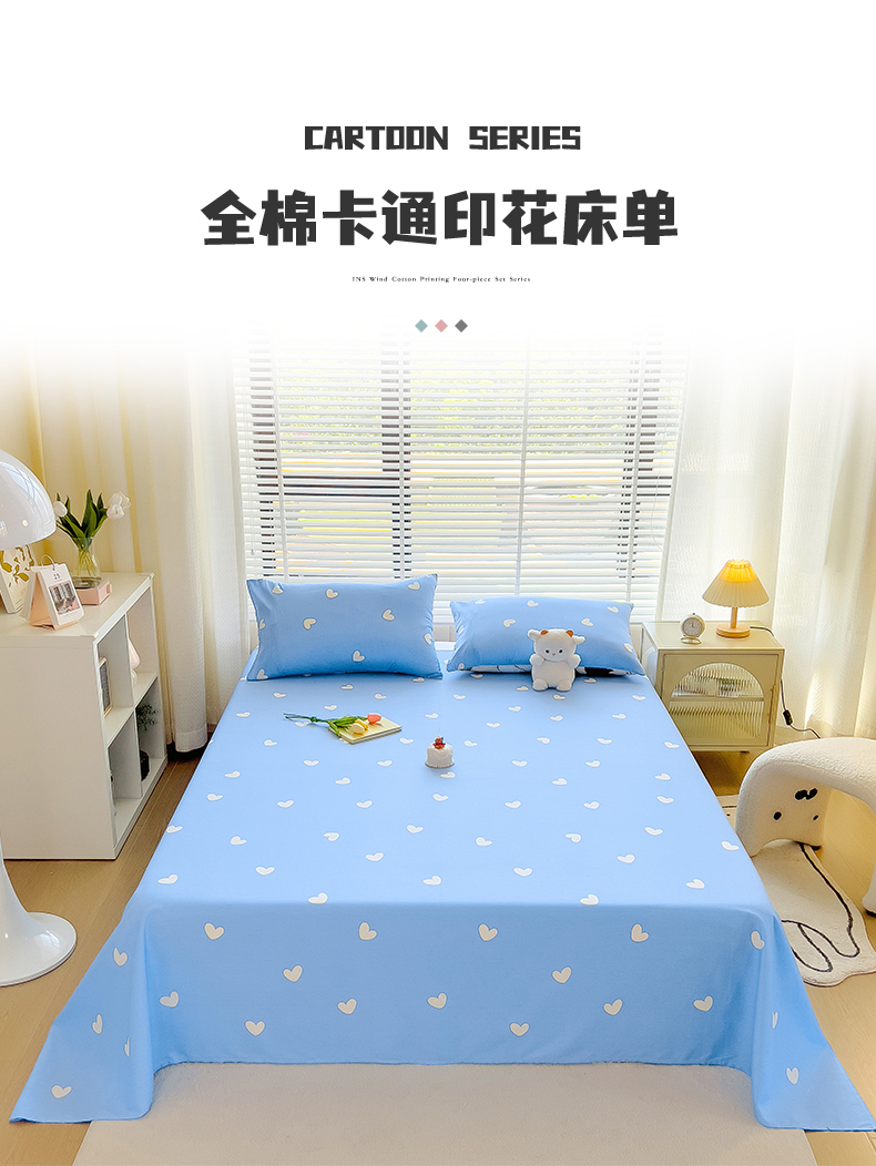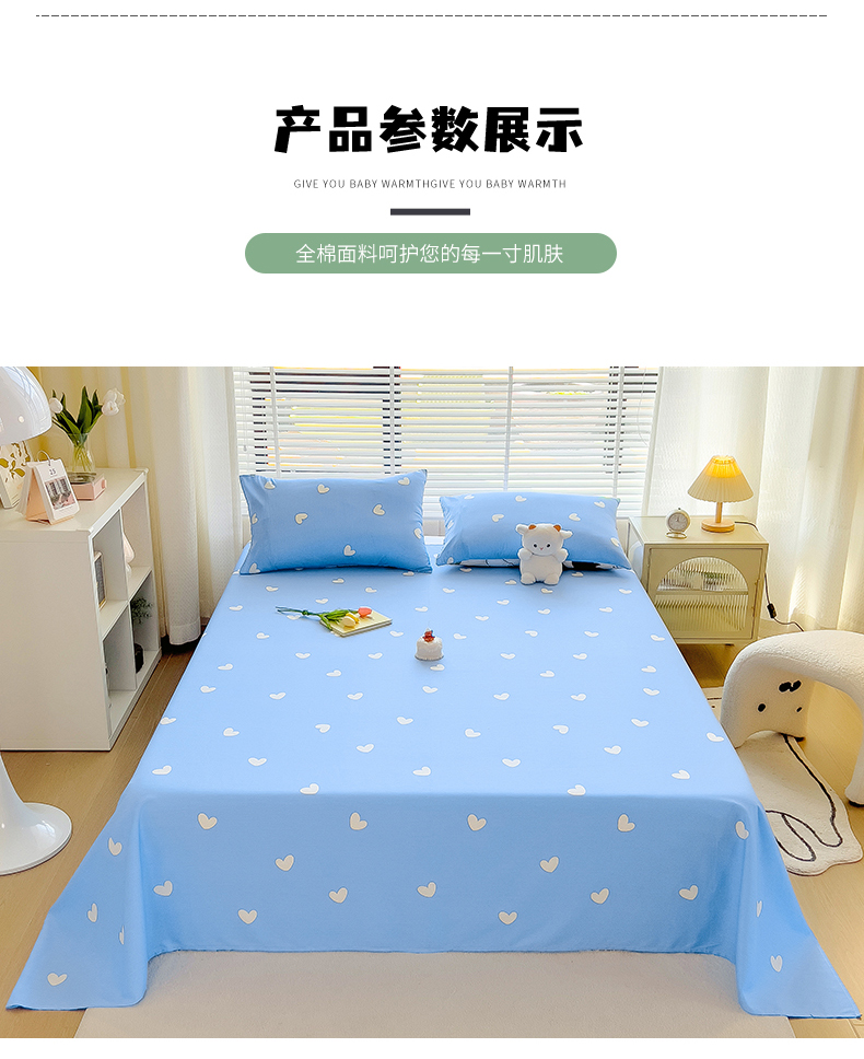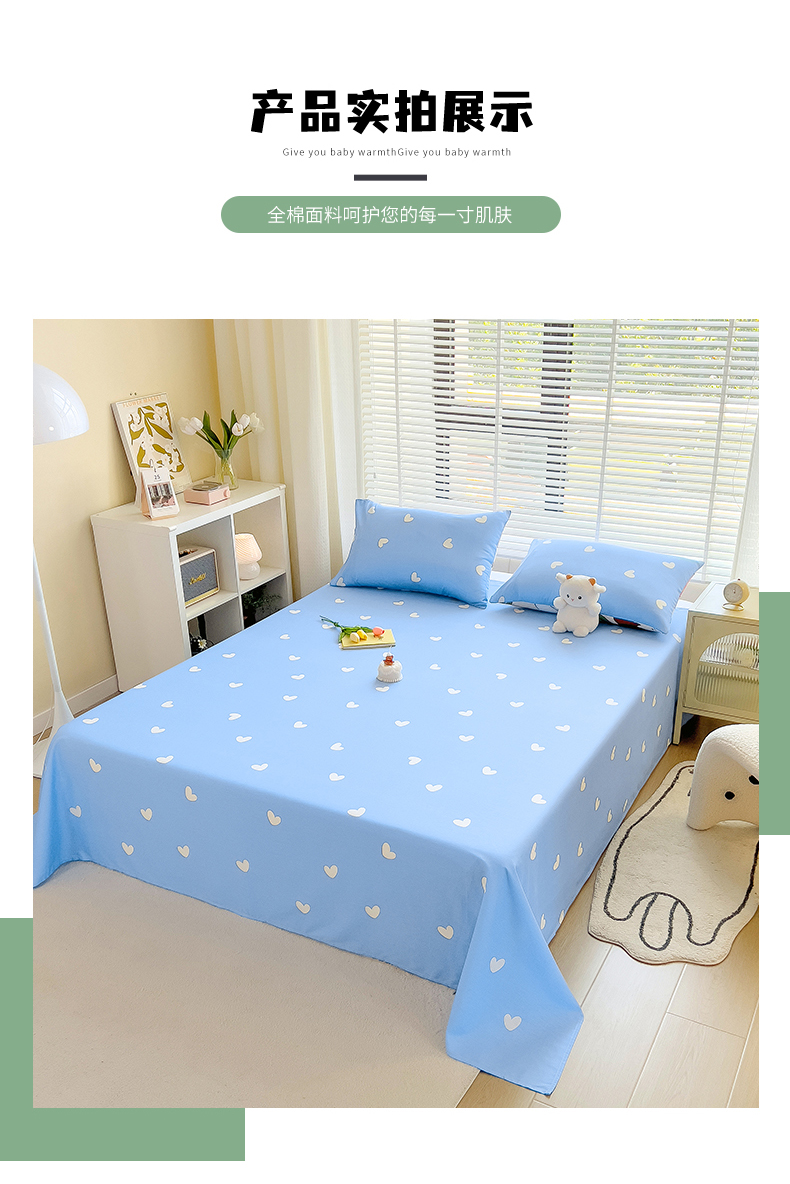 芃成家纺 2023新款全棉13070单床单 蓝爱心