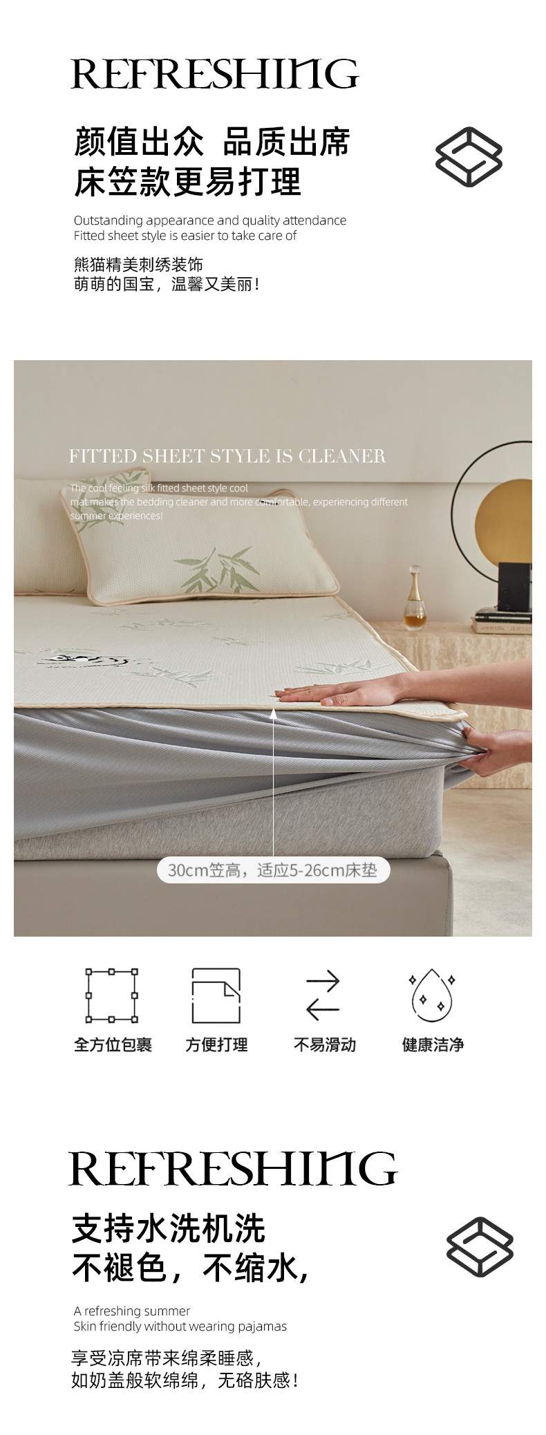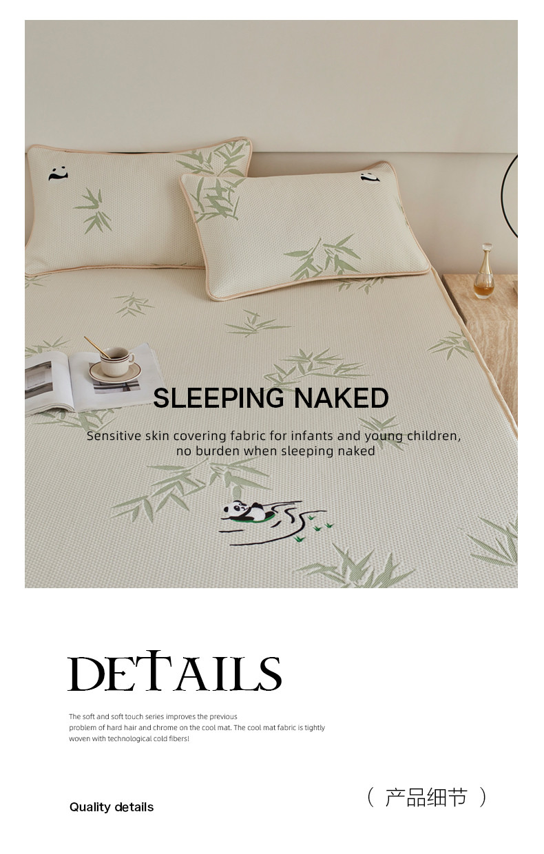 千朵森 2024新款熊猫绣花款冰感丝凉席三件套 绿野仙踪-浅米黄