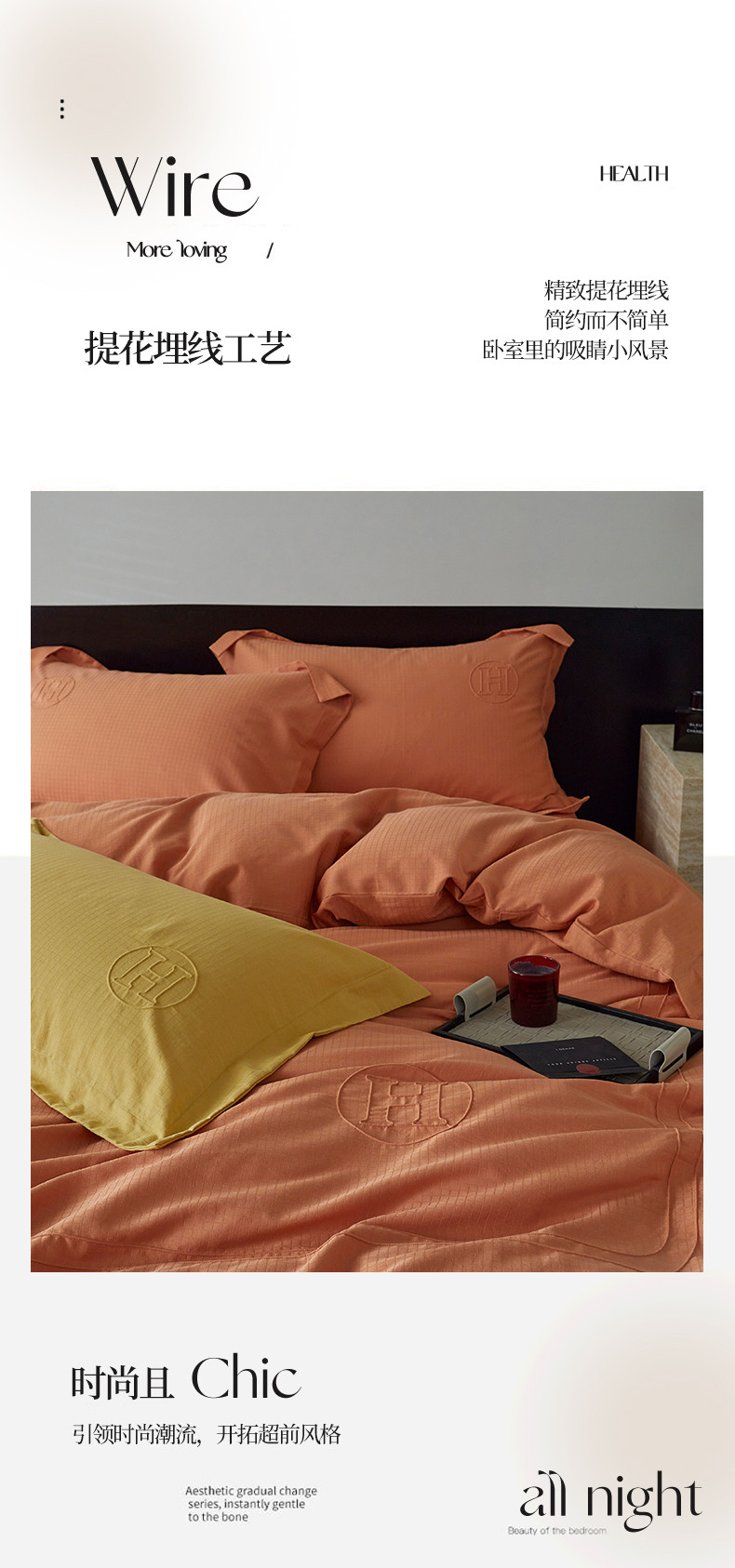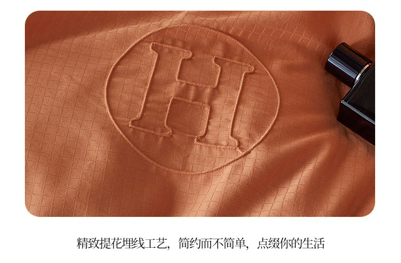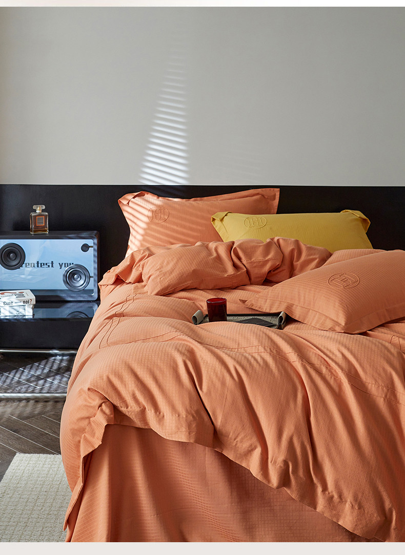 商品名称:艾莱 2023新款A类长绒棉水洗80提花埋线工艺款四件套 艾华仕-爱玛橙