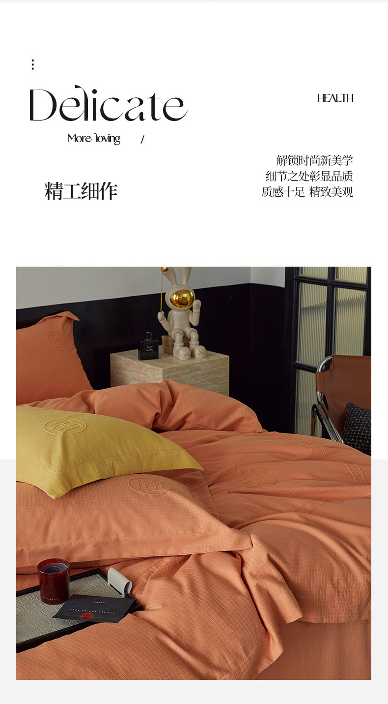 艾莱 2023新款A类长绒棉水洗80提花埋线工艺款四件套 艾华仕-爱玛橙