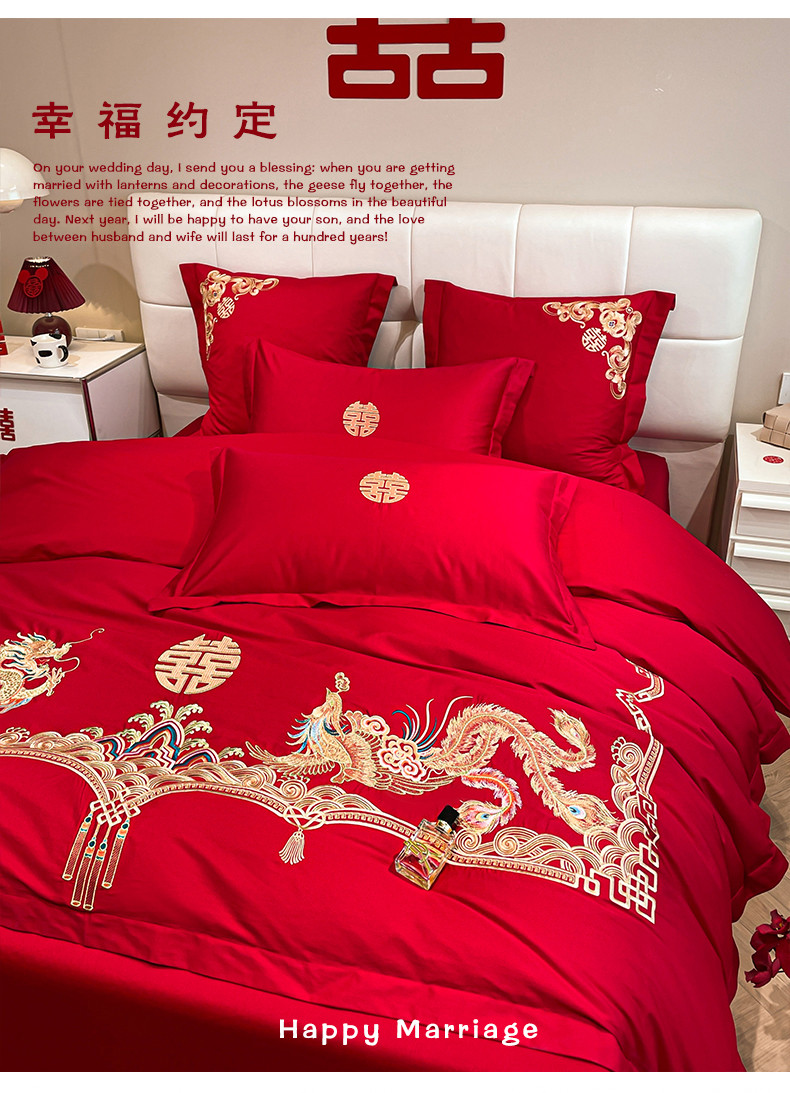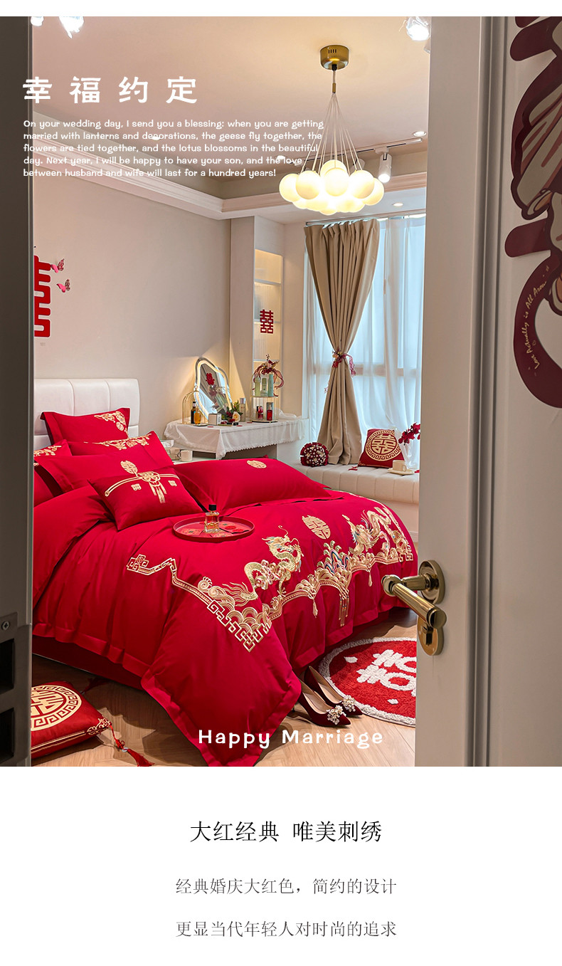 当前位置: 91家纺网 > 商品网购 > 床品套件 > 四件套 > 婚庆四件套 > 新款亲肤舒适时尚婚庆四件套系列 幸福约定