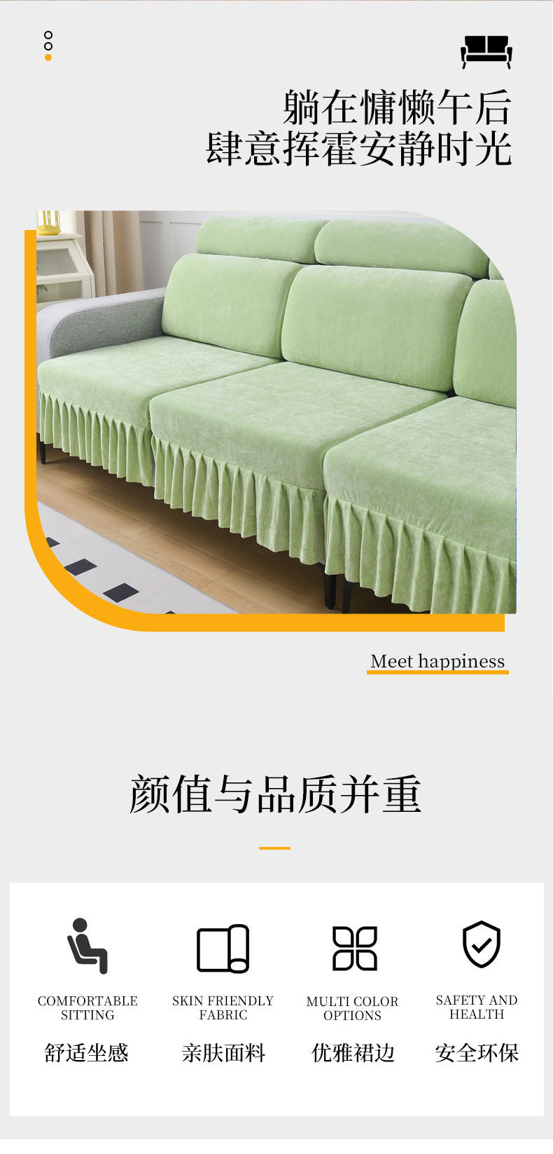当前位置: 91家纺网 > 商品网购 > 居家布艺 > 坐垫/椅垫/沙发垫 > 沙发垫 > 千彤 2023新款裙边沙发笠沙发套雪尼尔系列 薄荷绿