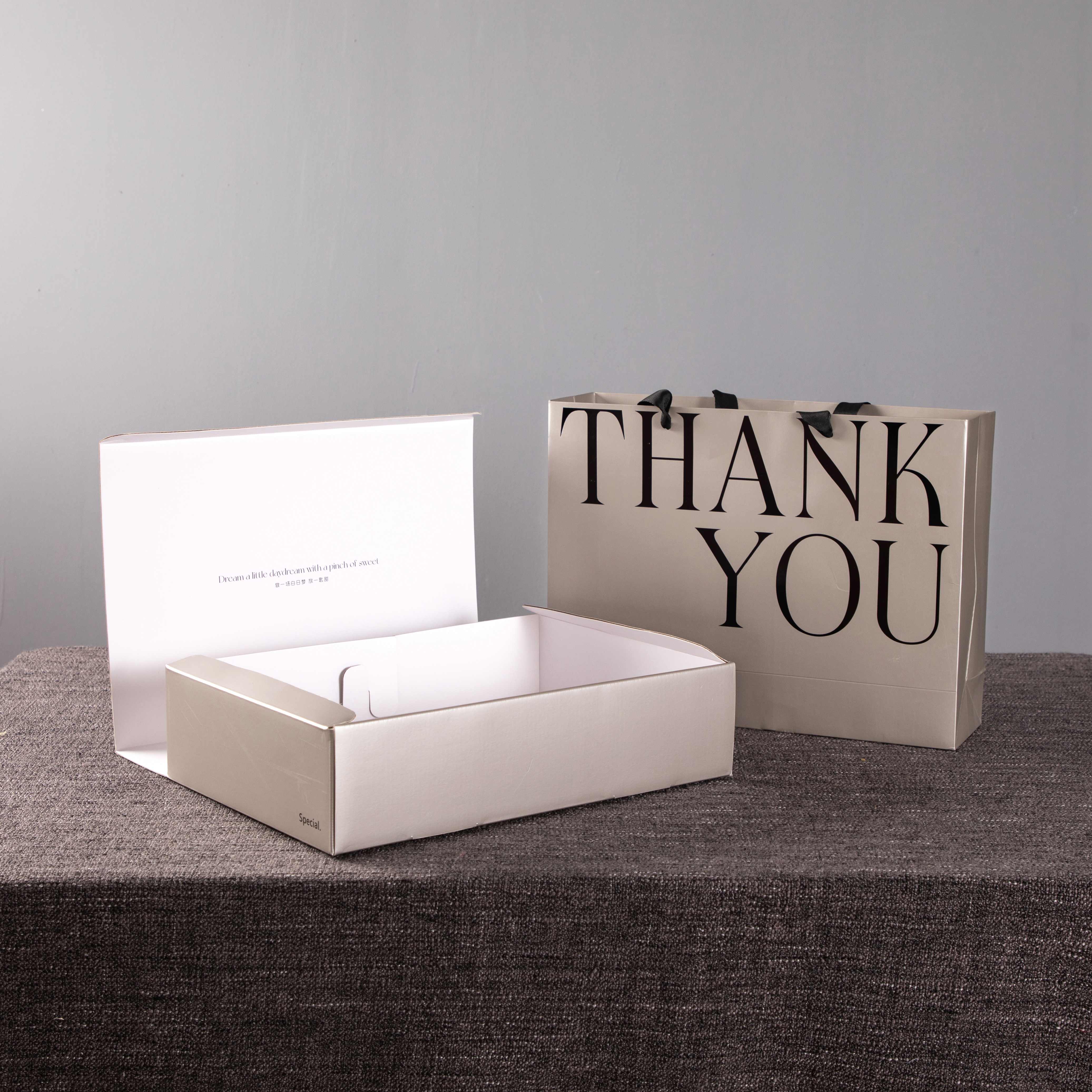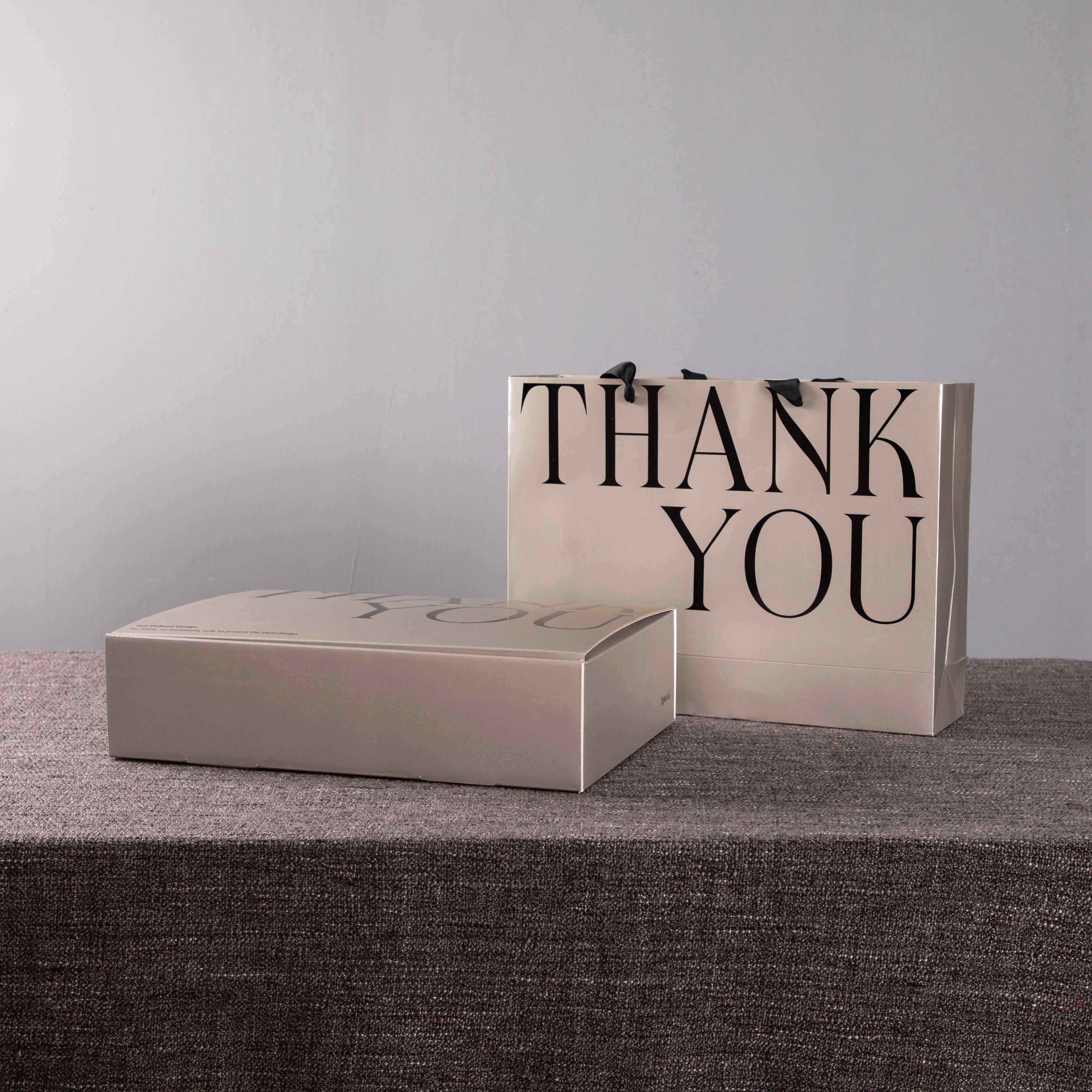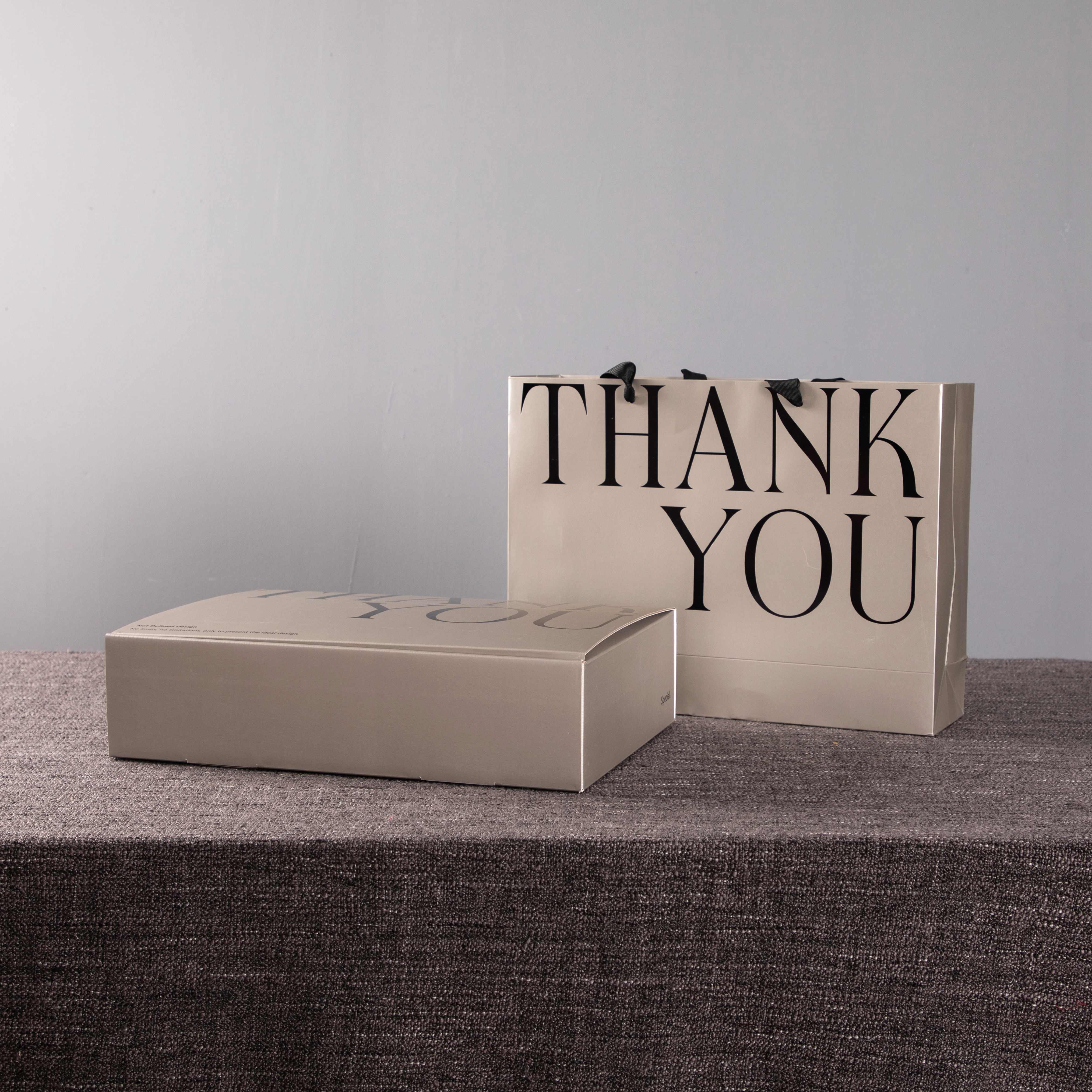 当前位置: 91家纺网 > 商品网购 > 辅料包装 > 包装 > 套件包装 > 森翔 手提袋套件包装 黑色LOGO处烫金可定制 THANK YOU