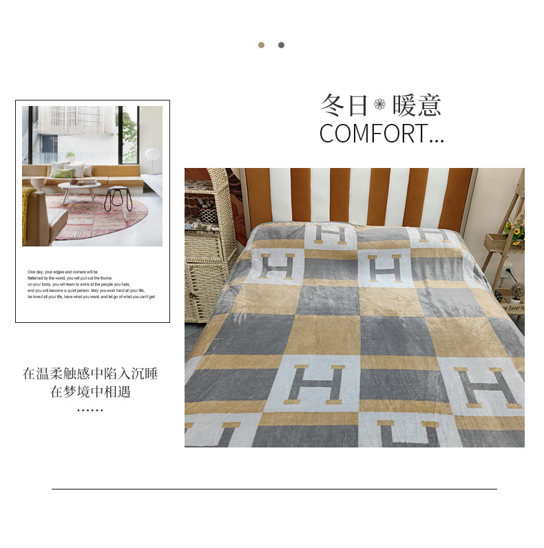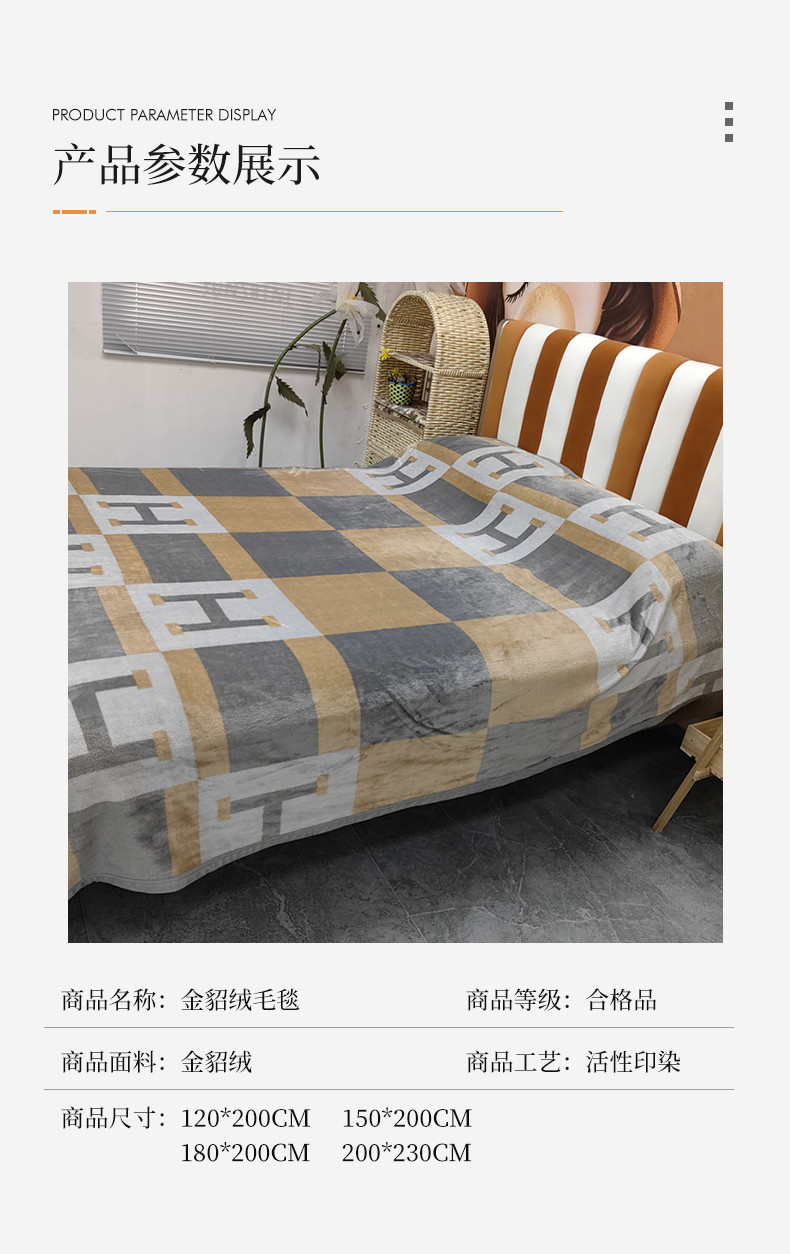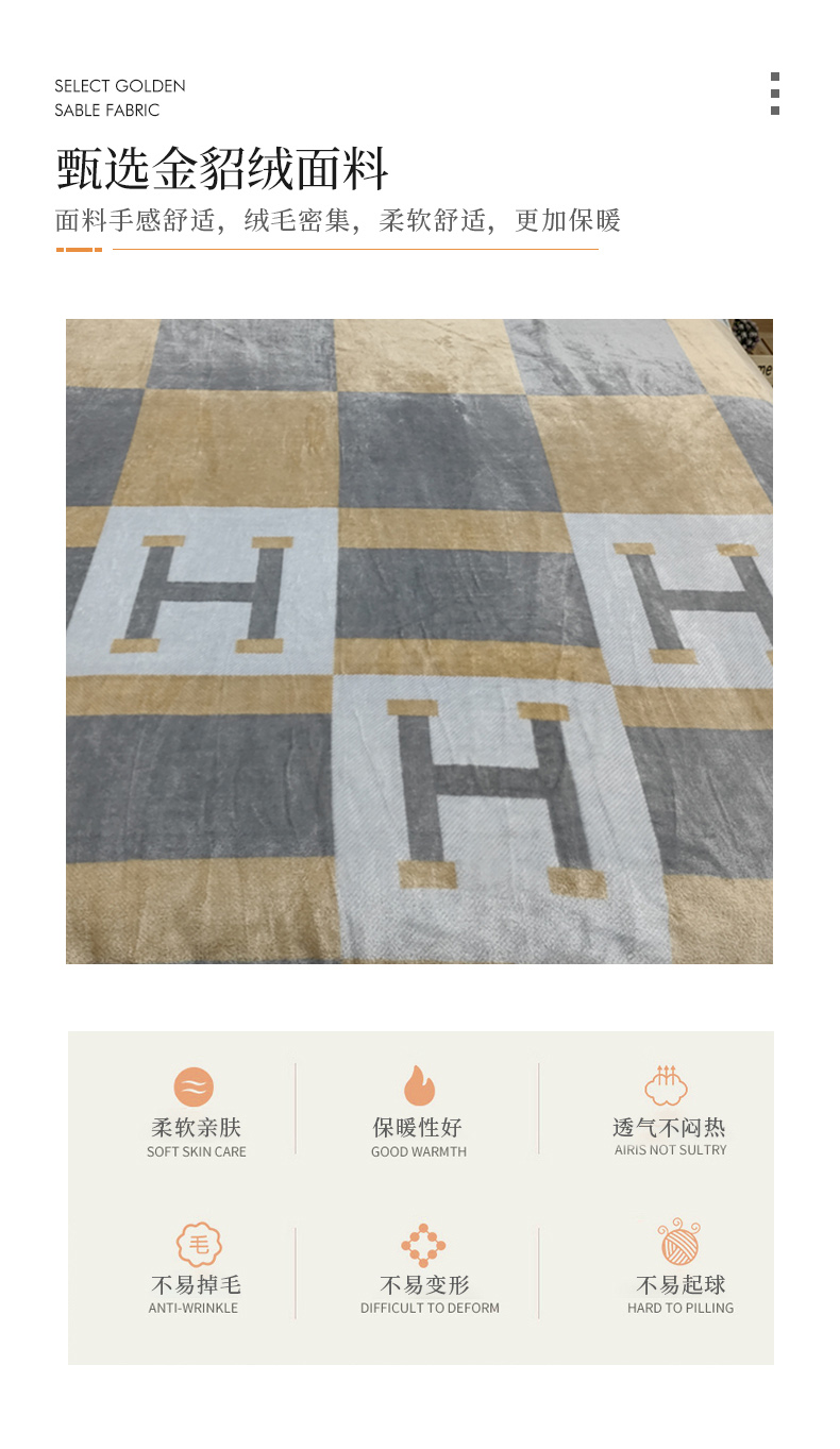 商品名称:爱她美 2023新款300g金貂绒系列加厚包边法莱绒盖毯毛毯子银灰H