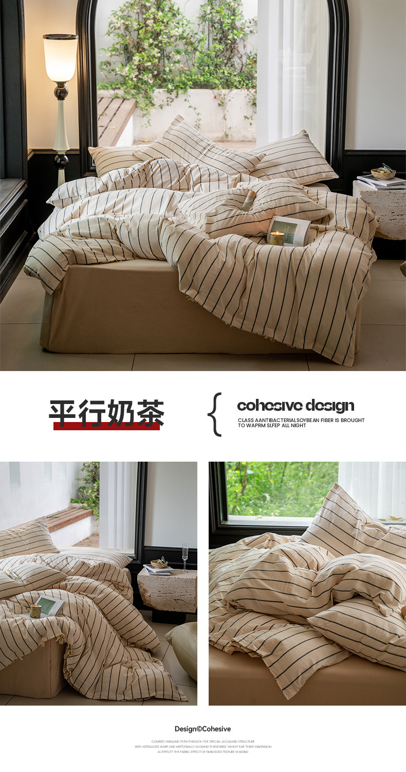 当前位置: 91家纺网 > 商品网购 > 床品套件 > 四件套 > 色织四件套 > 华超针织 2023新款色织竖条水洗棉四件套 平行奶茶