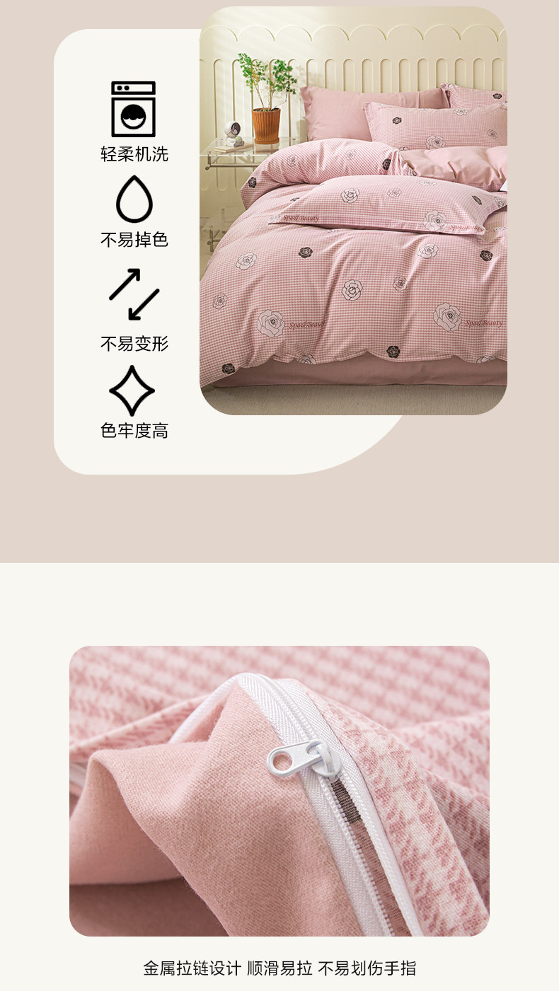 商品名称:卡巴伦家纺 2023新款磨毛小清新印花系列四件套 格子花都