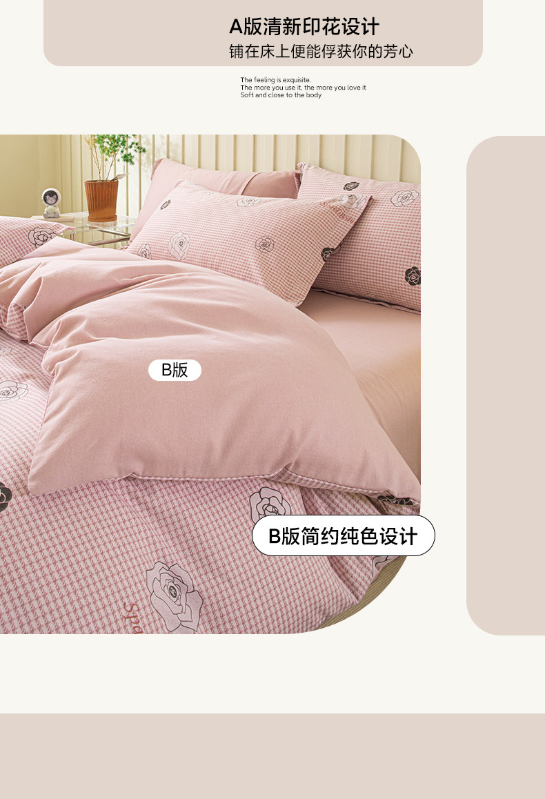 卡巴伦家纺 2023新款磨毛小清新印花系列四件套 格子花都
