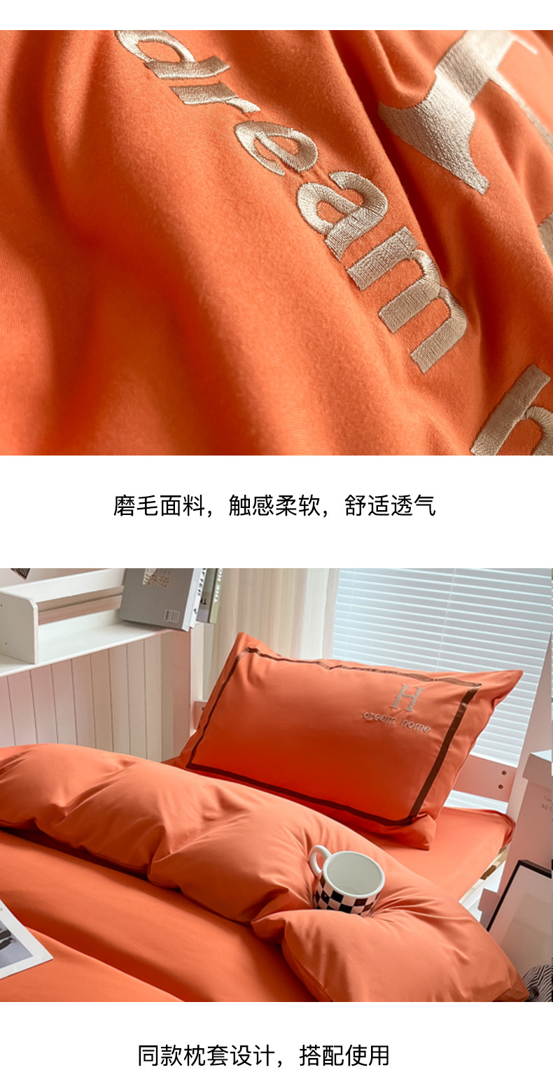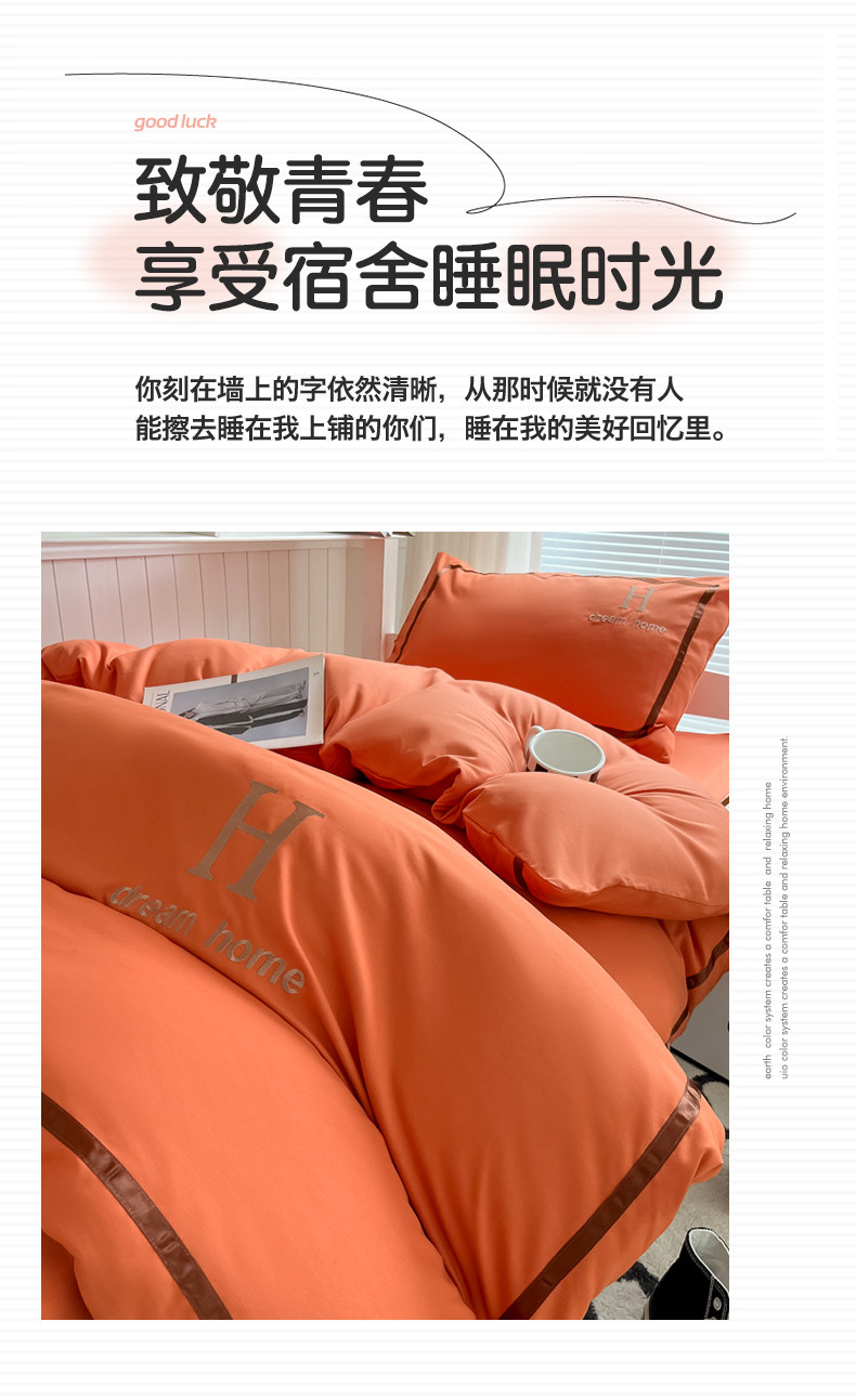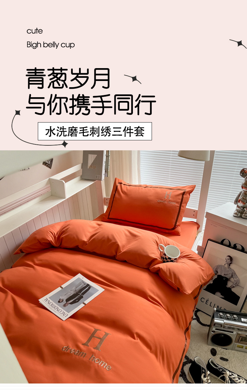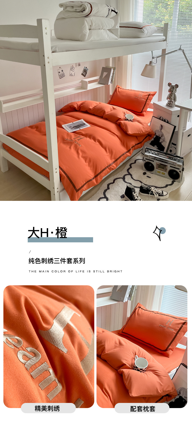 千希家纺 2023新款水洗棉磨毛刺绣学生季上下铺宿舍三件套-大H款 大H-橙