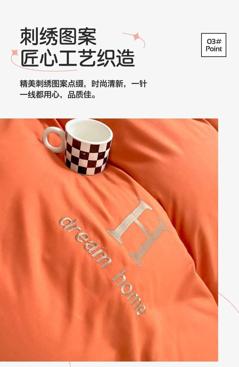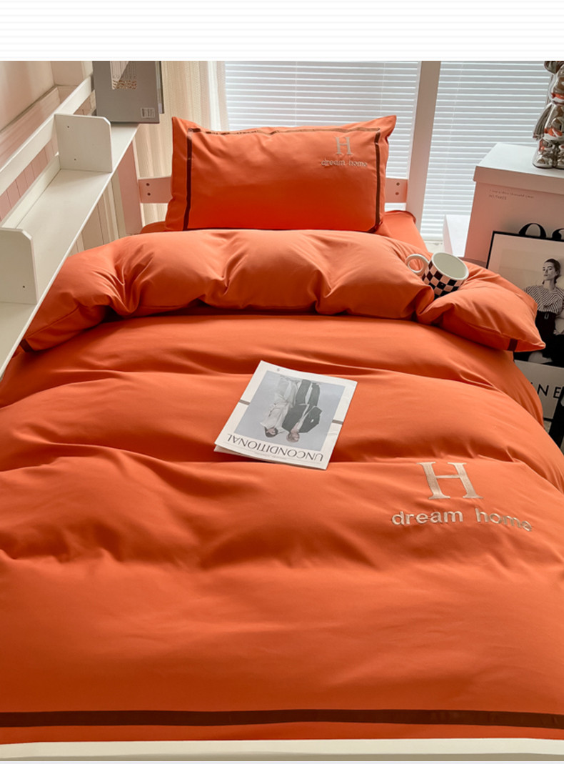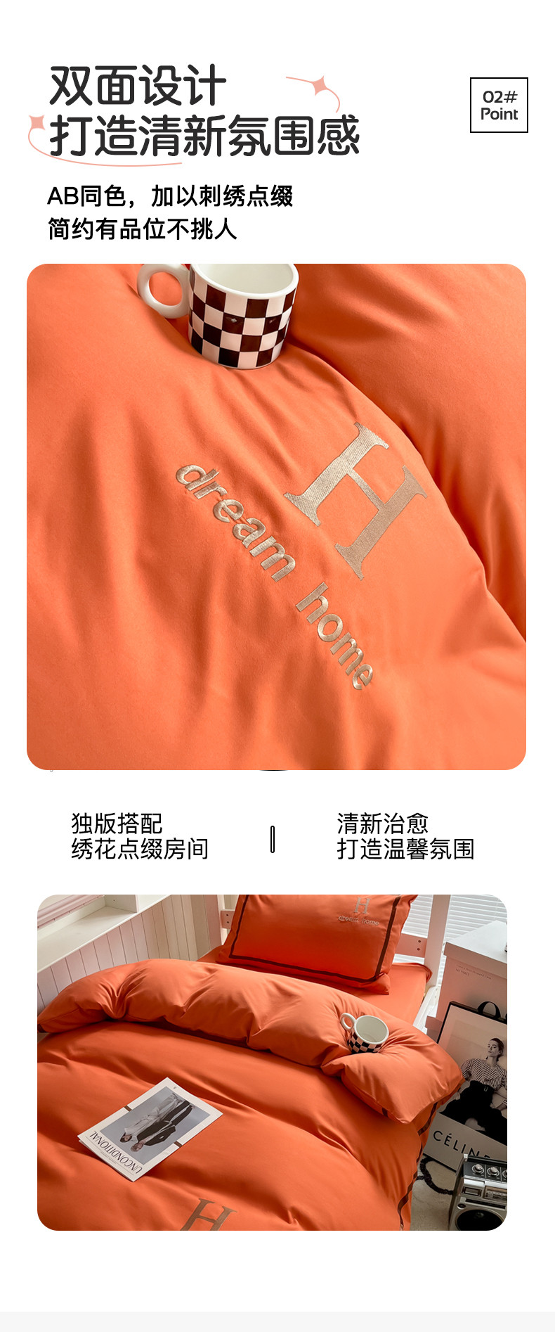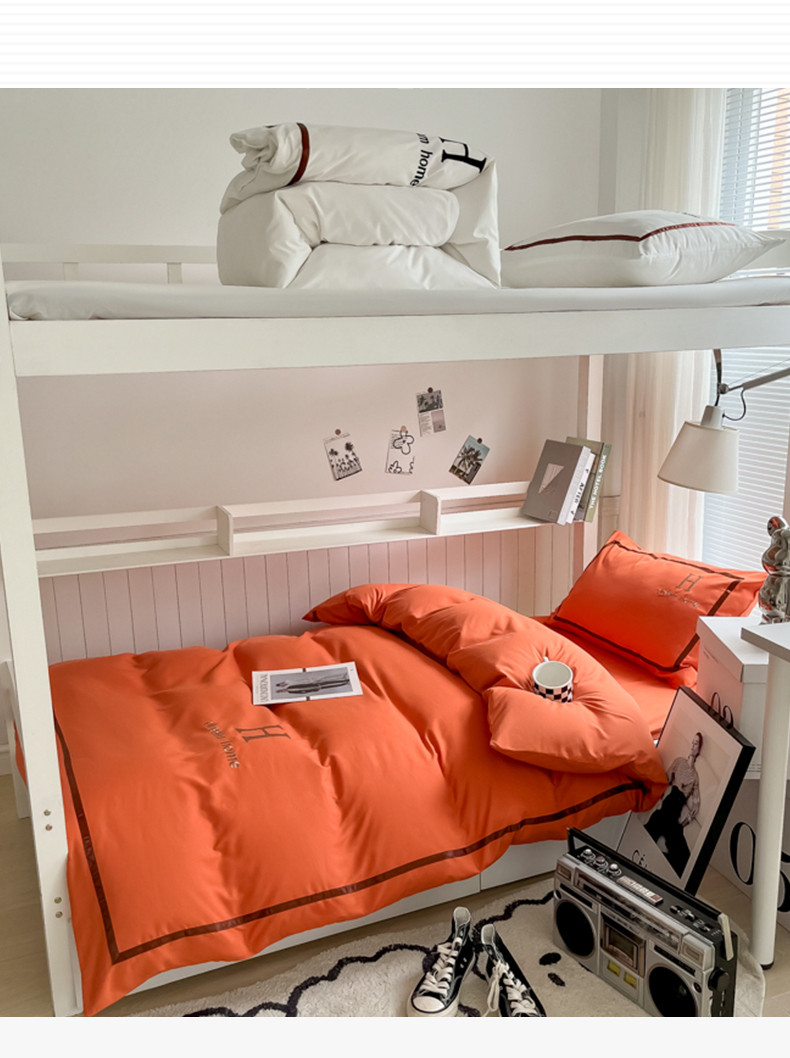 千希家纺 2023新款水洗棉磨毛刺绣学生季上下铺宿舍三件套-大H款 大H-橙