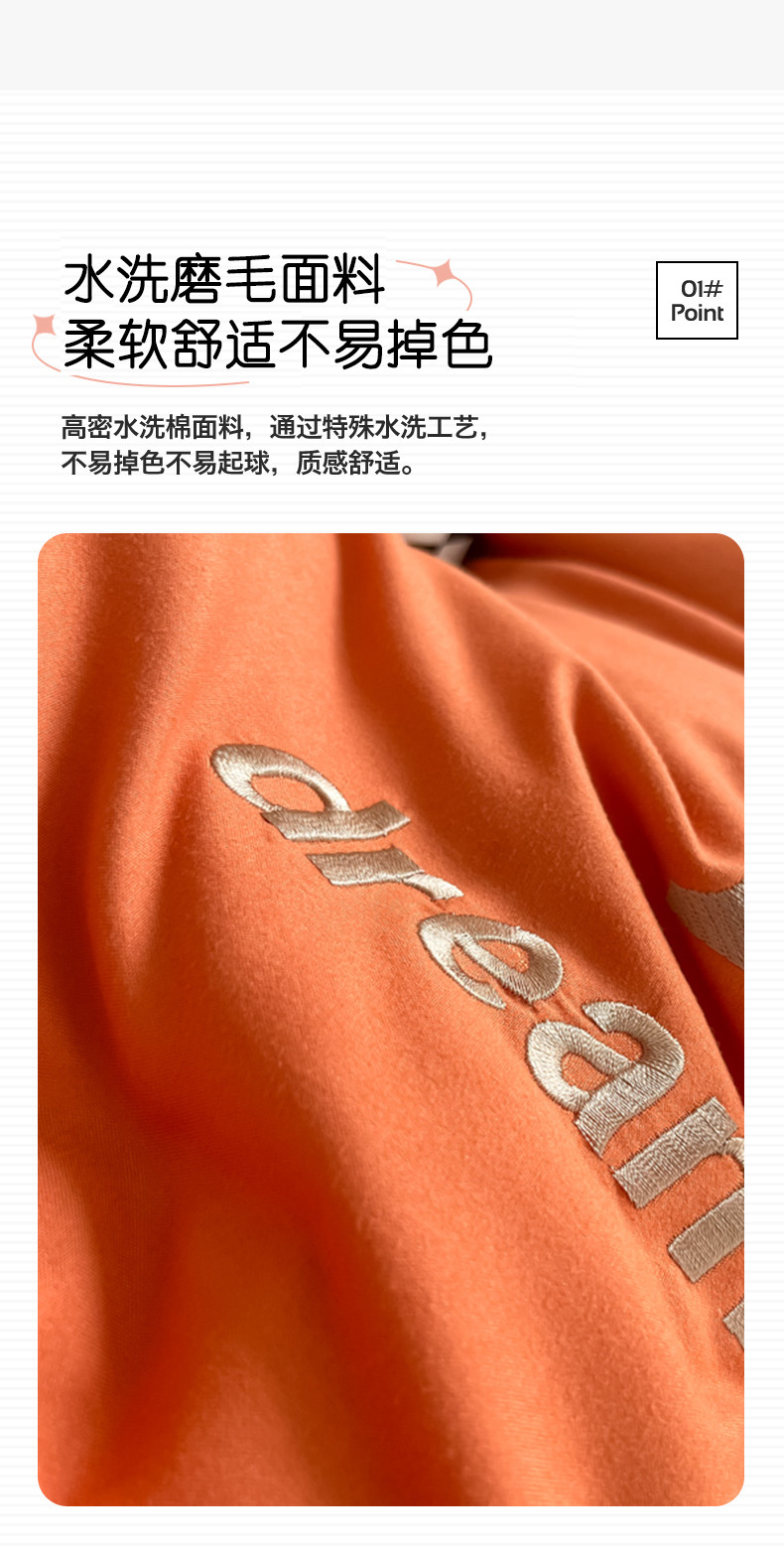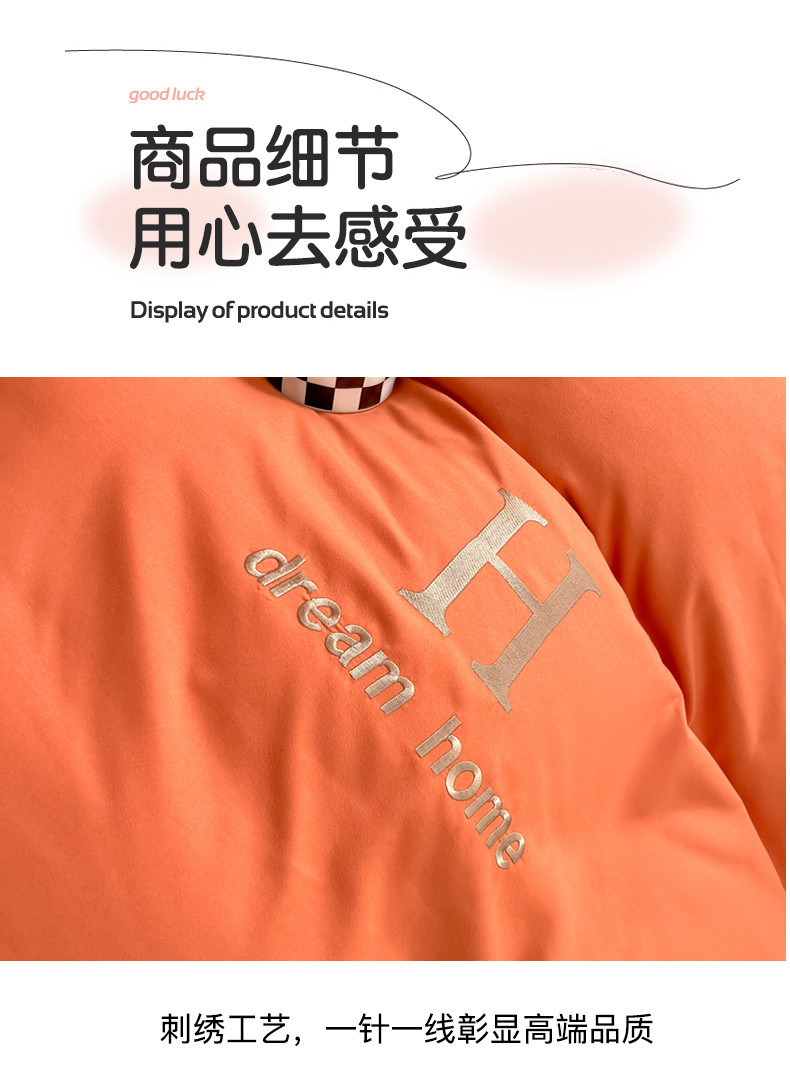 商品名称:千希家纺 2023新款水洗棉磨毛刺绣学生季上下铺宿舍三件套-大H款 大H-橙