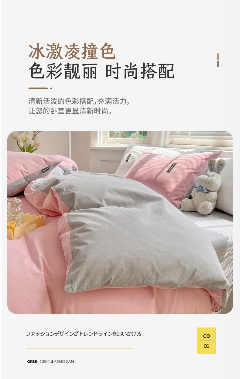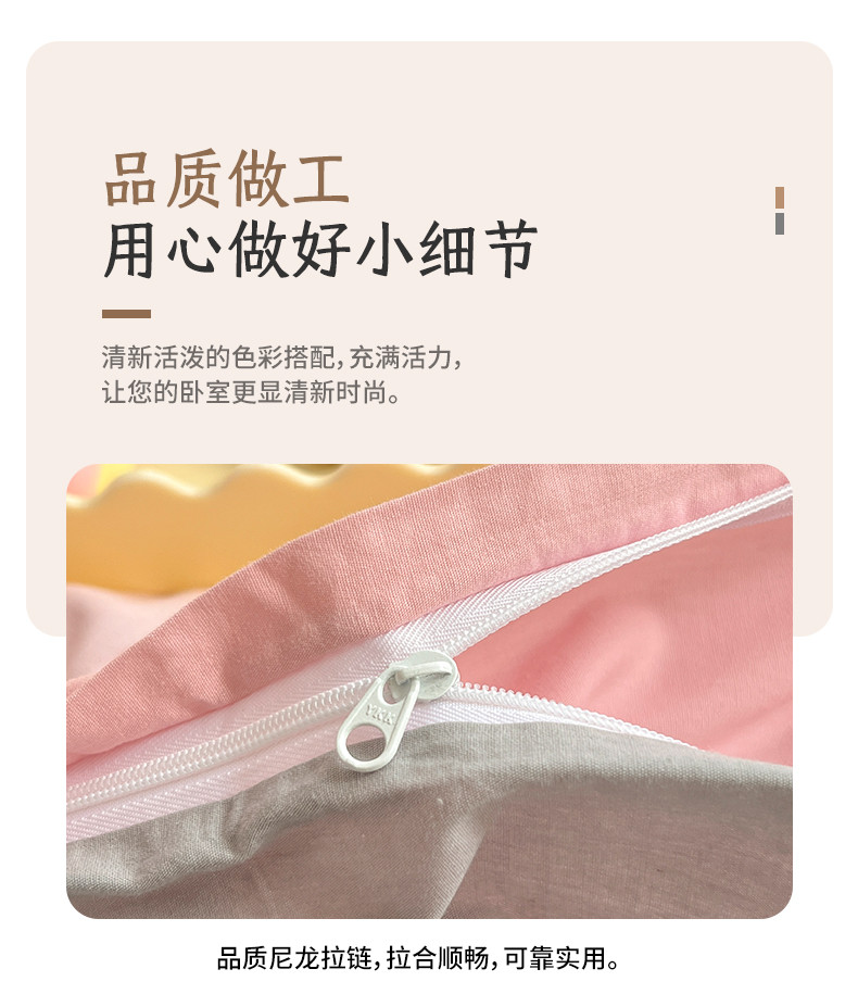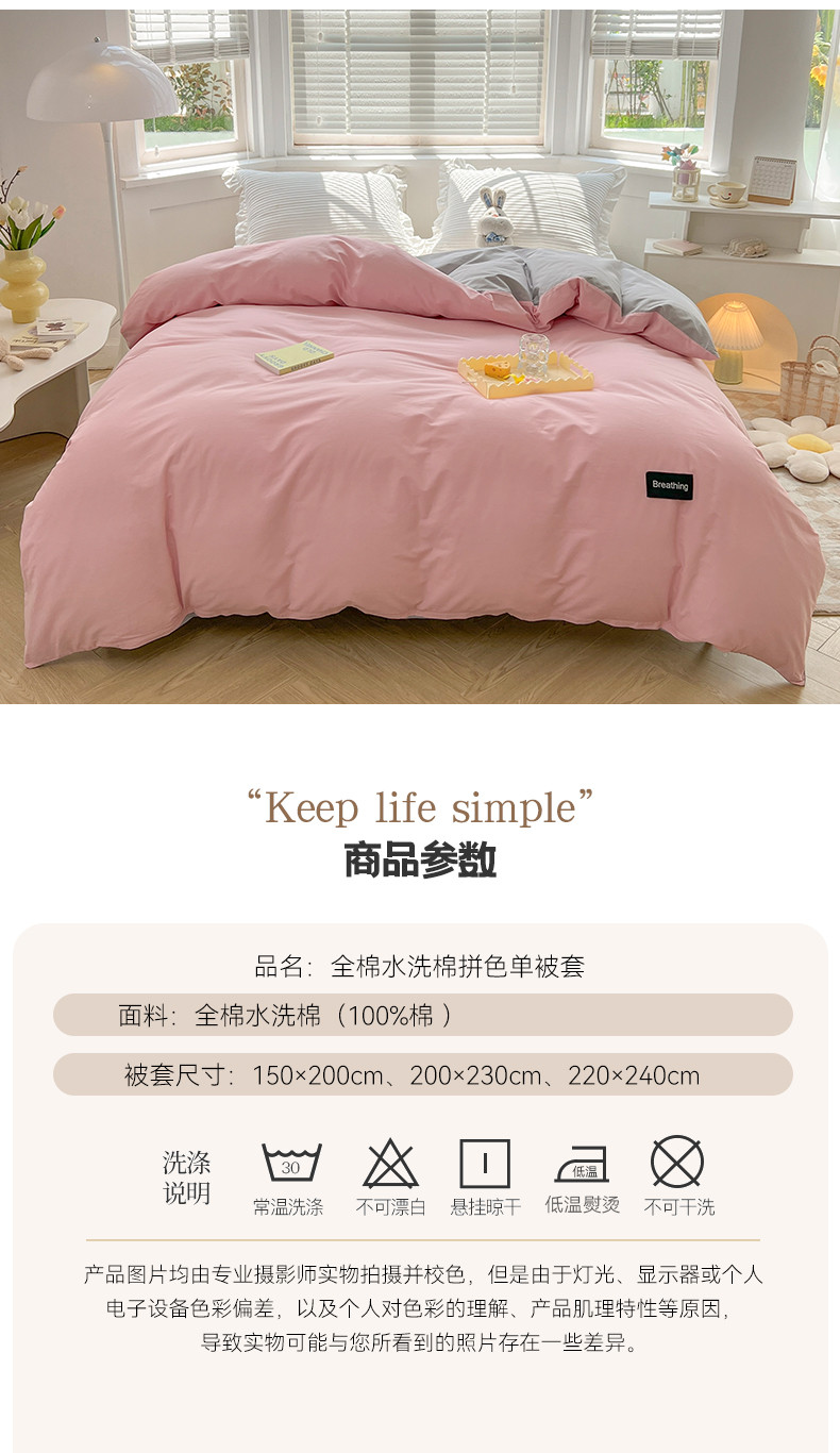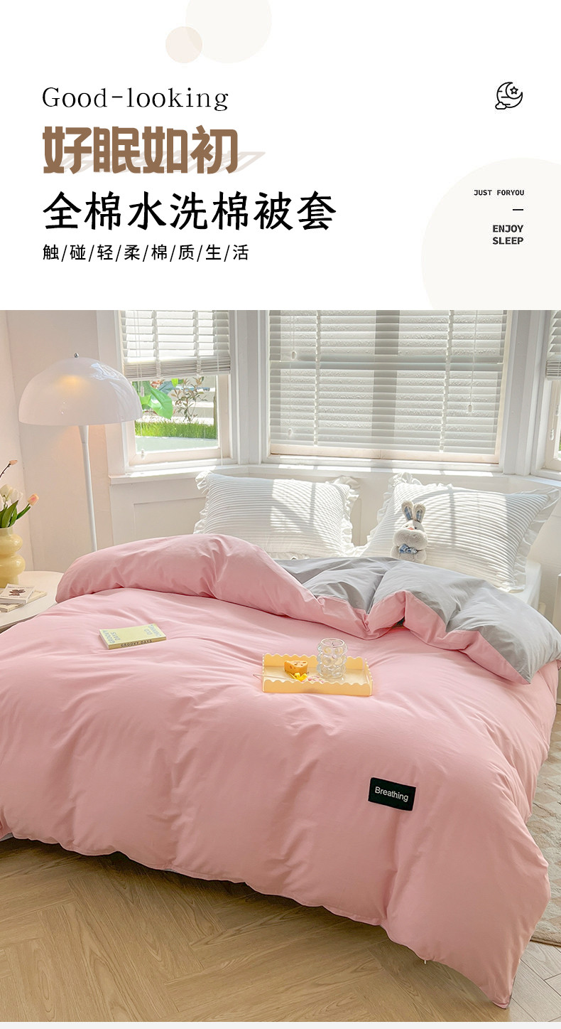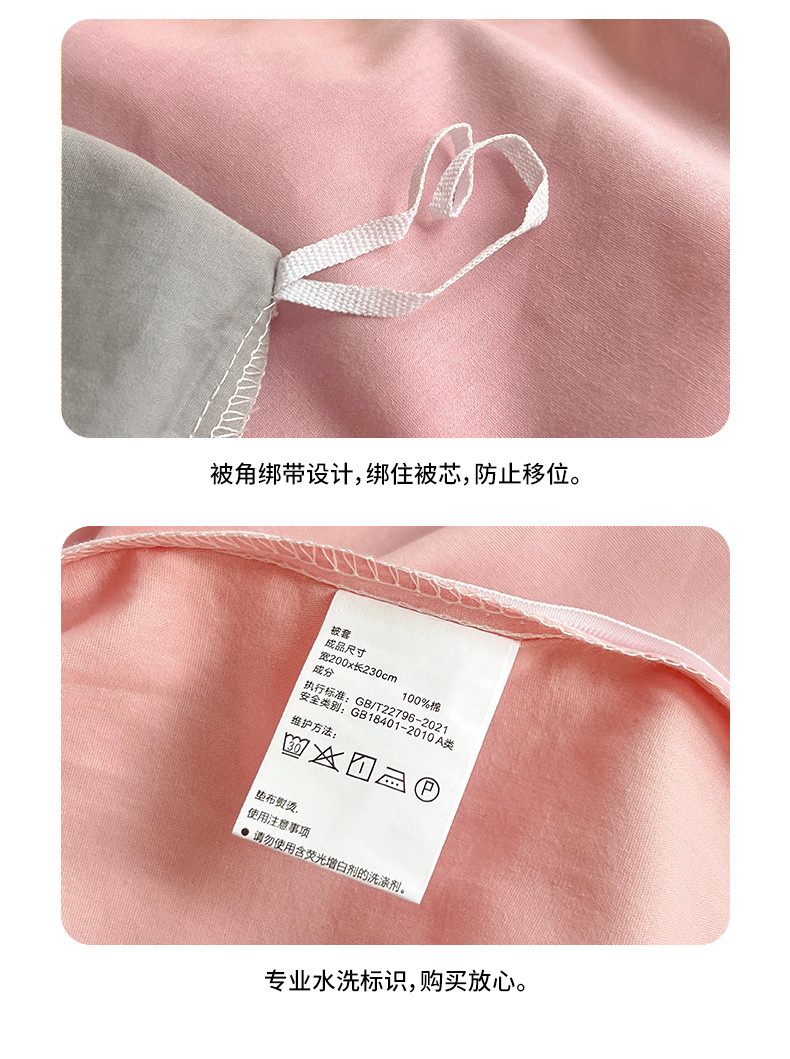 商品名称:绵庭家纺 2023新款全棉水洗棉拼色单被套 少女粉+绅士灰