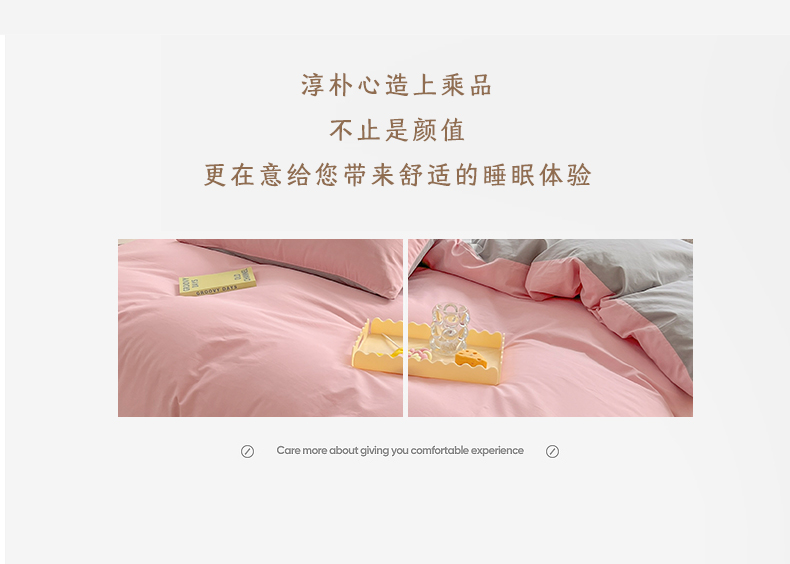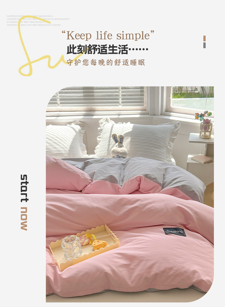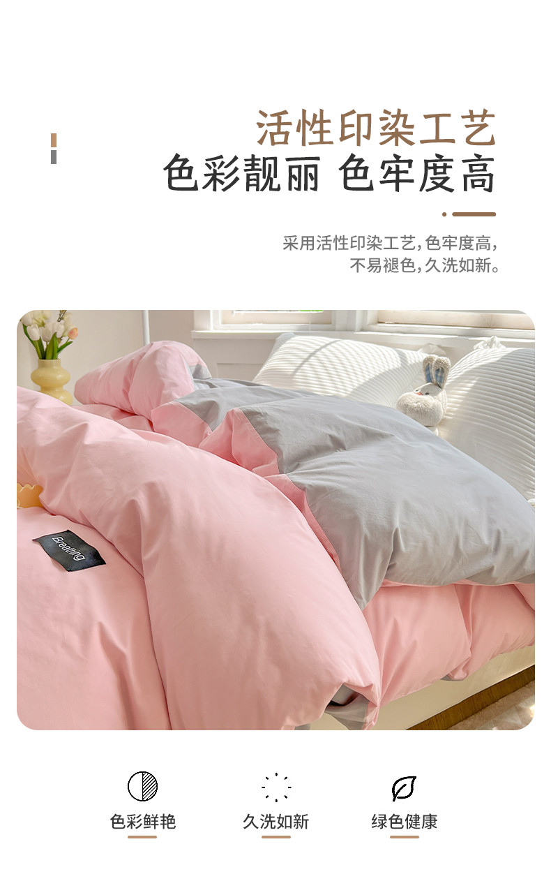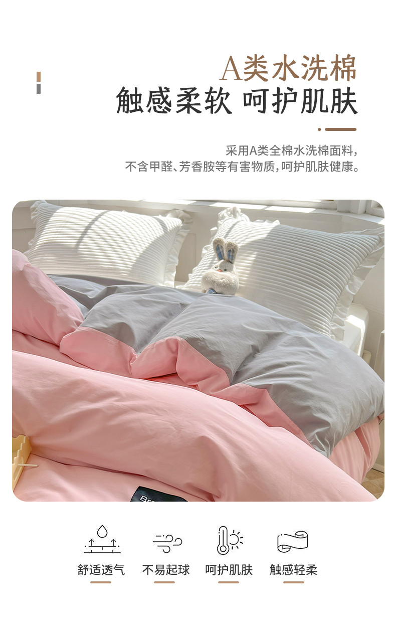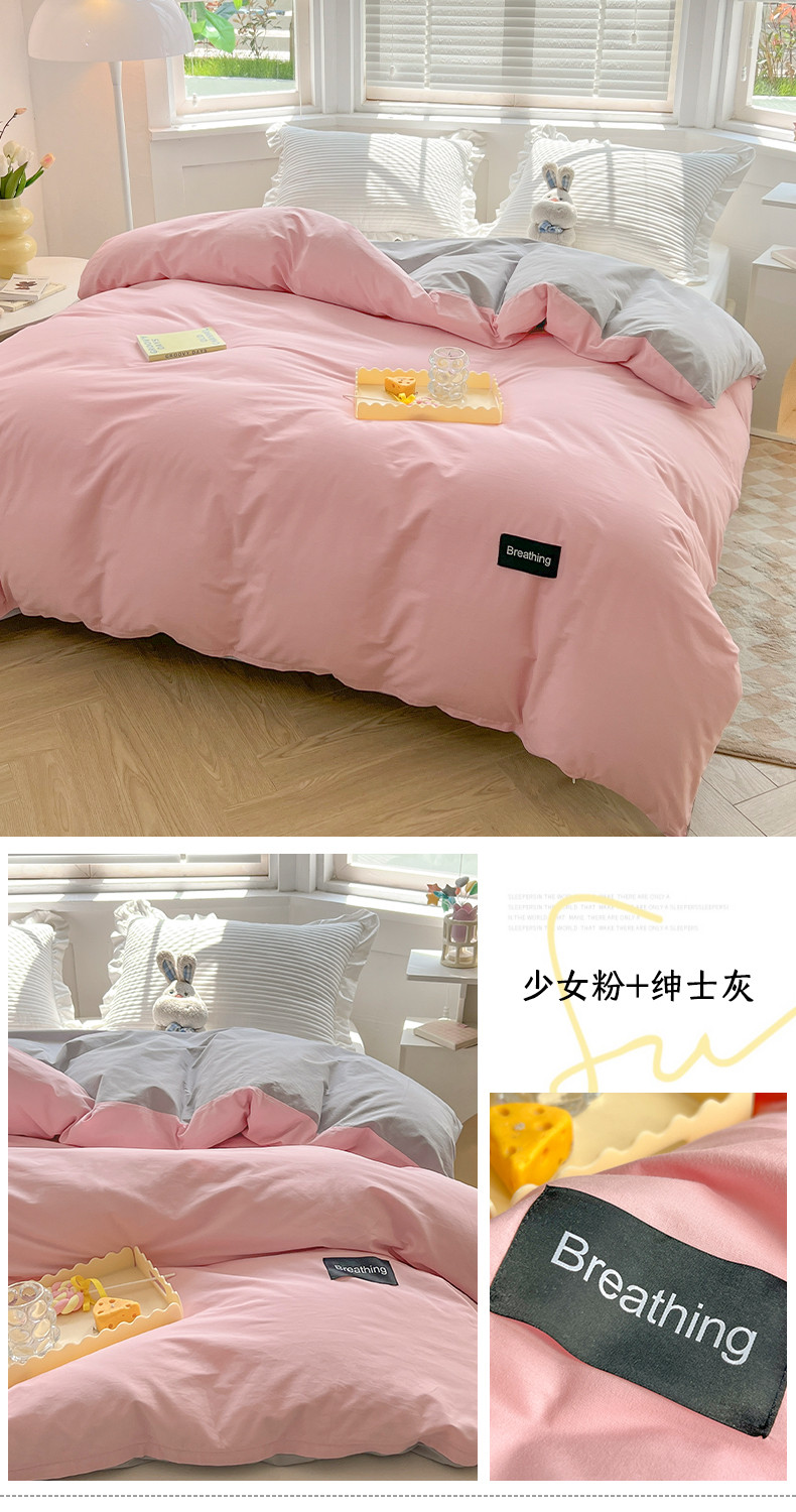 商品名称:绵庭家纺 2023新款全棉水洗棉拼色单被套 少女粉+绅士灰