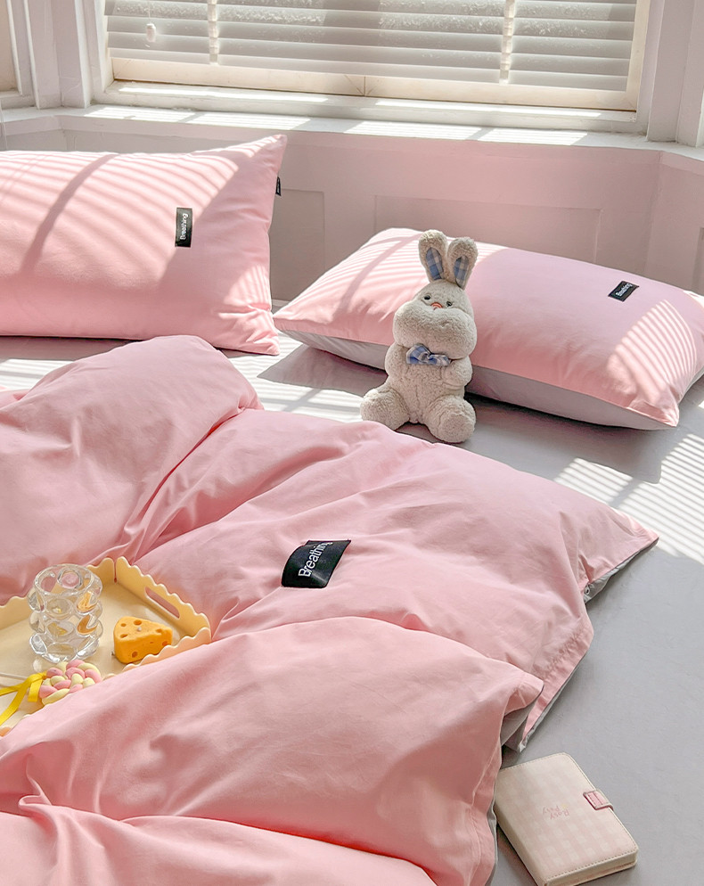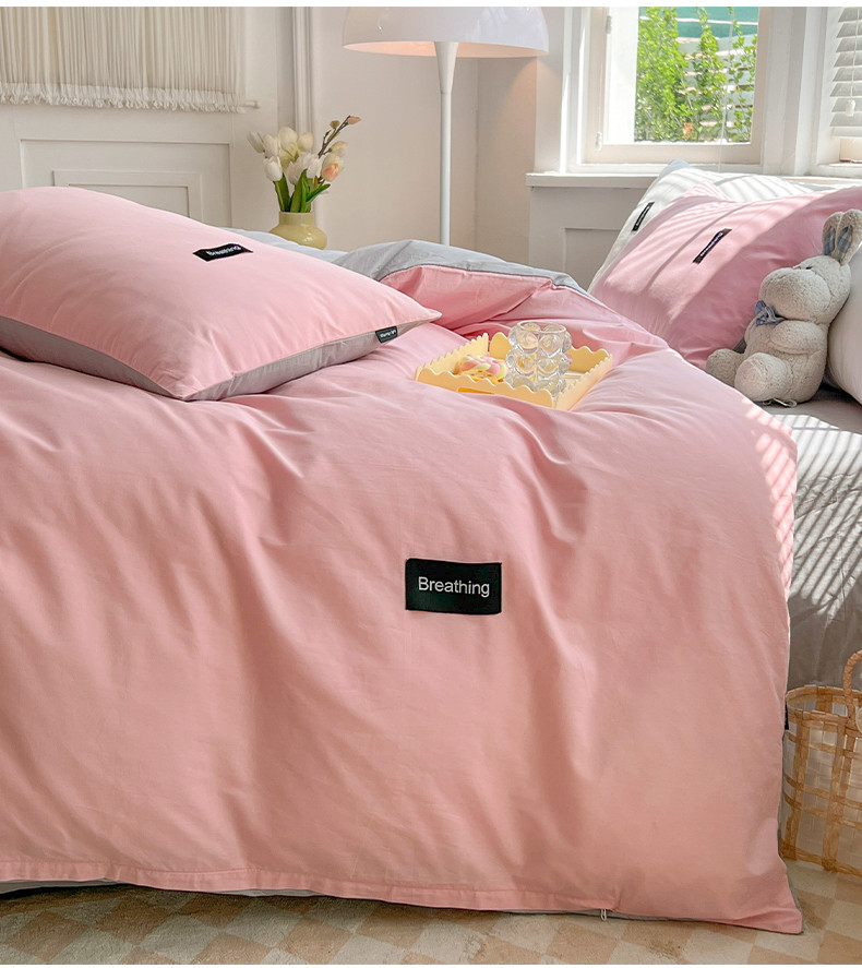 绵庭家纺 2023新款全棉水洗棉拼色单被套 少女粉+绅士灰