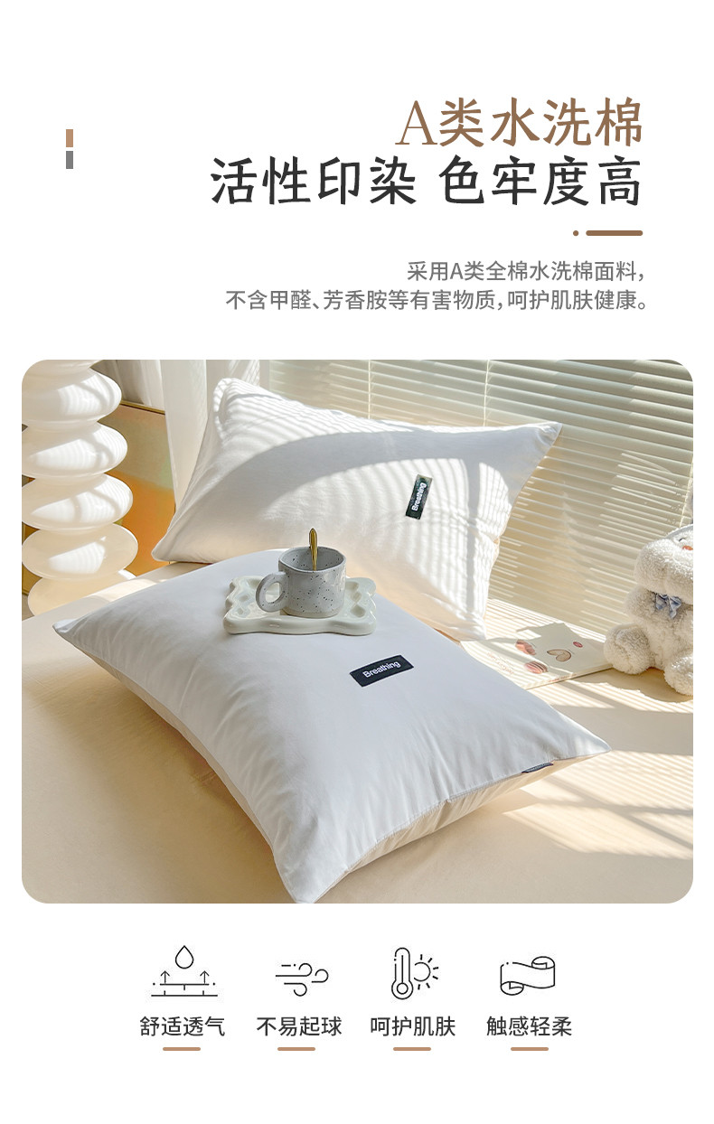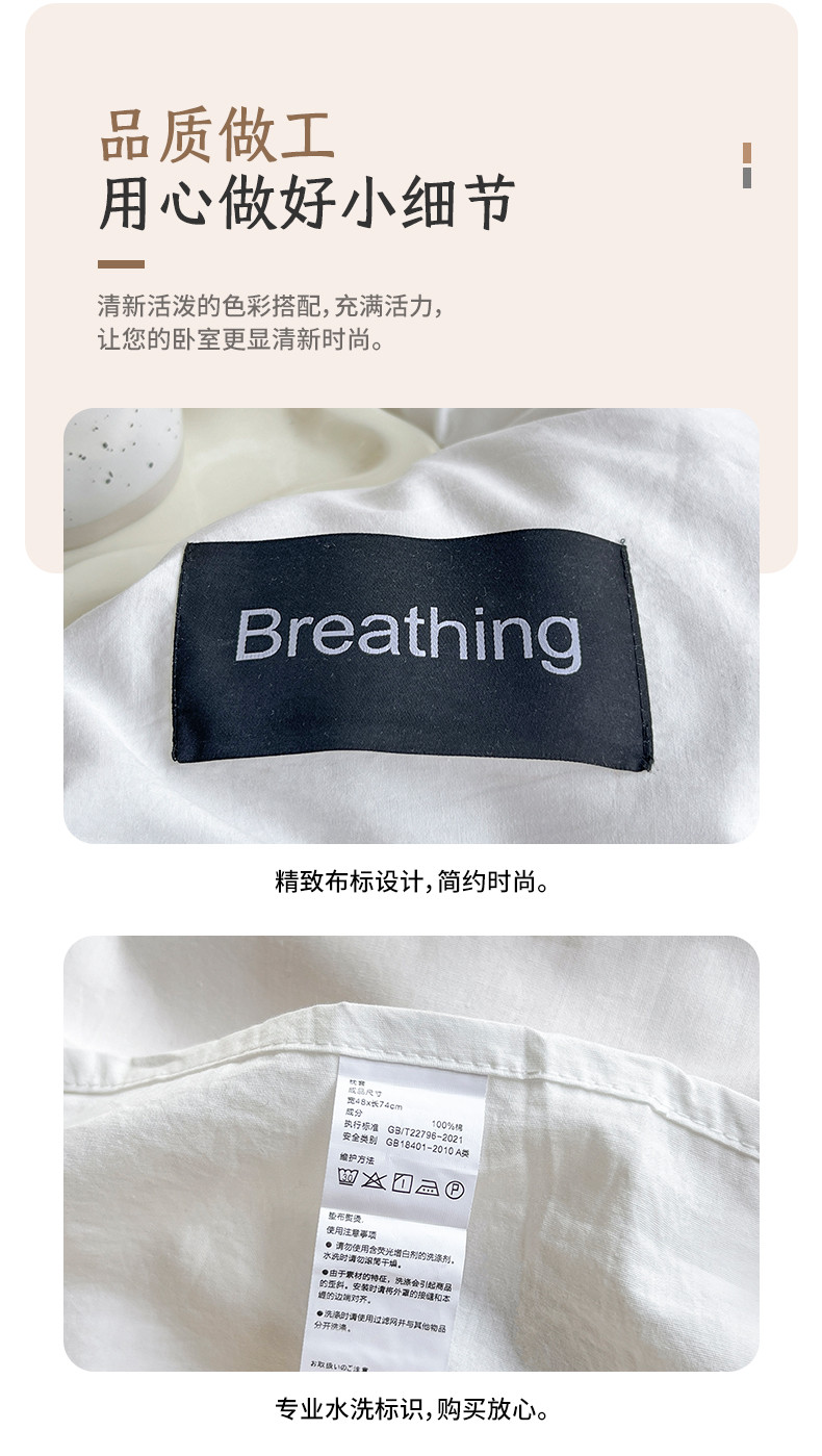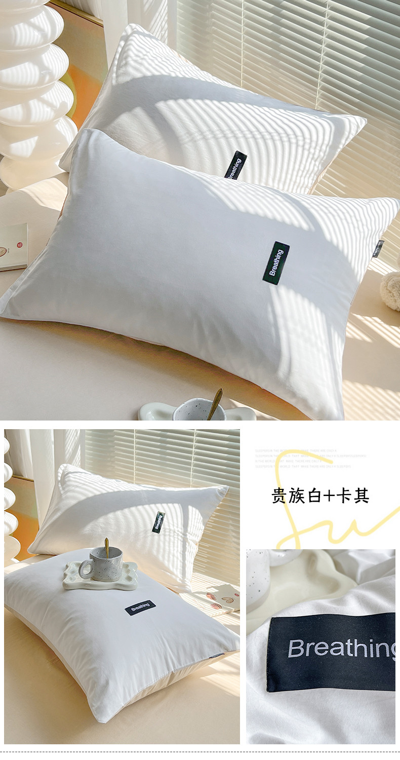 绵庭家纺 2023新款全棉水洗棉拼色单品枕套 贵族白+卡其