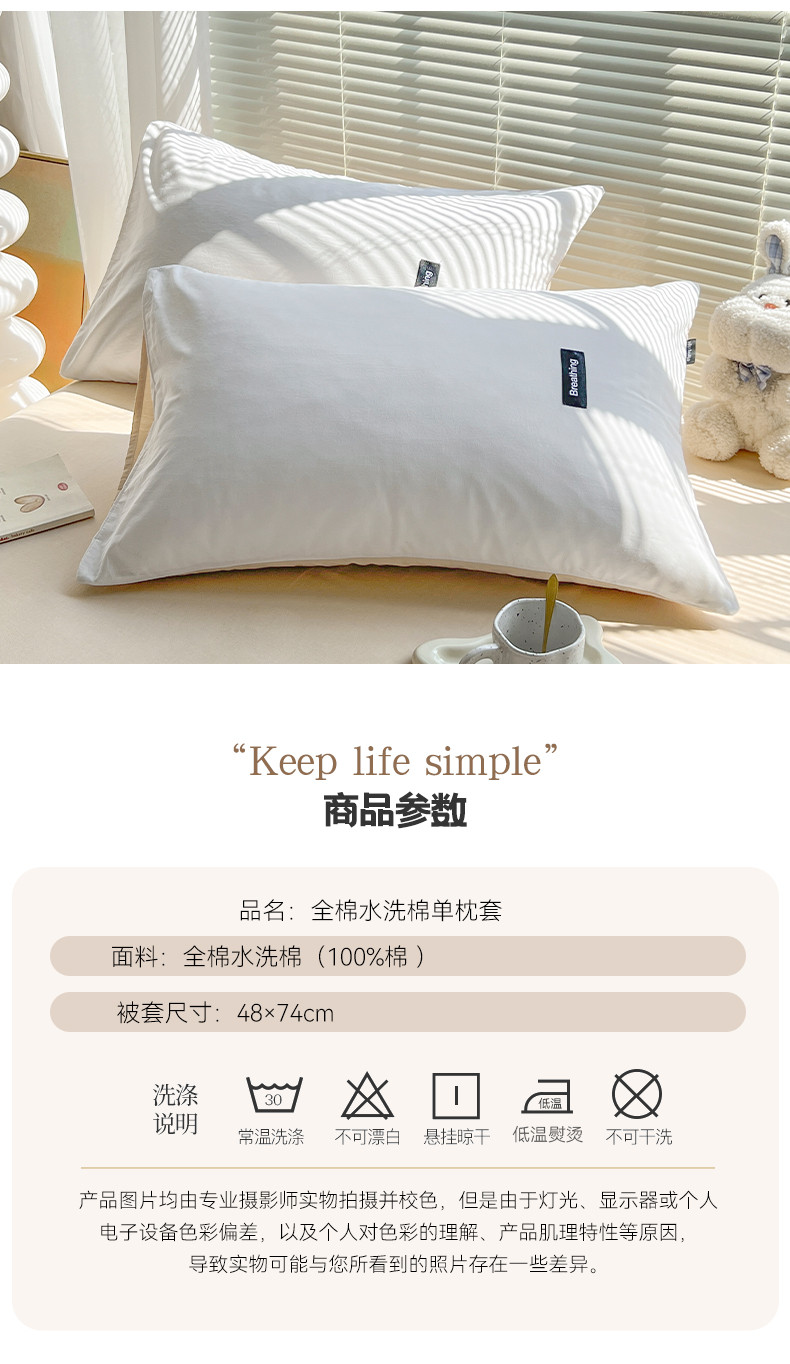 商品名称:绵庭家纺 2023新款全棉水洗棉拼色单品枕套 贵族白+卡其