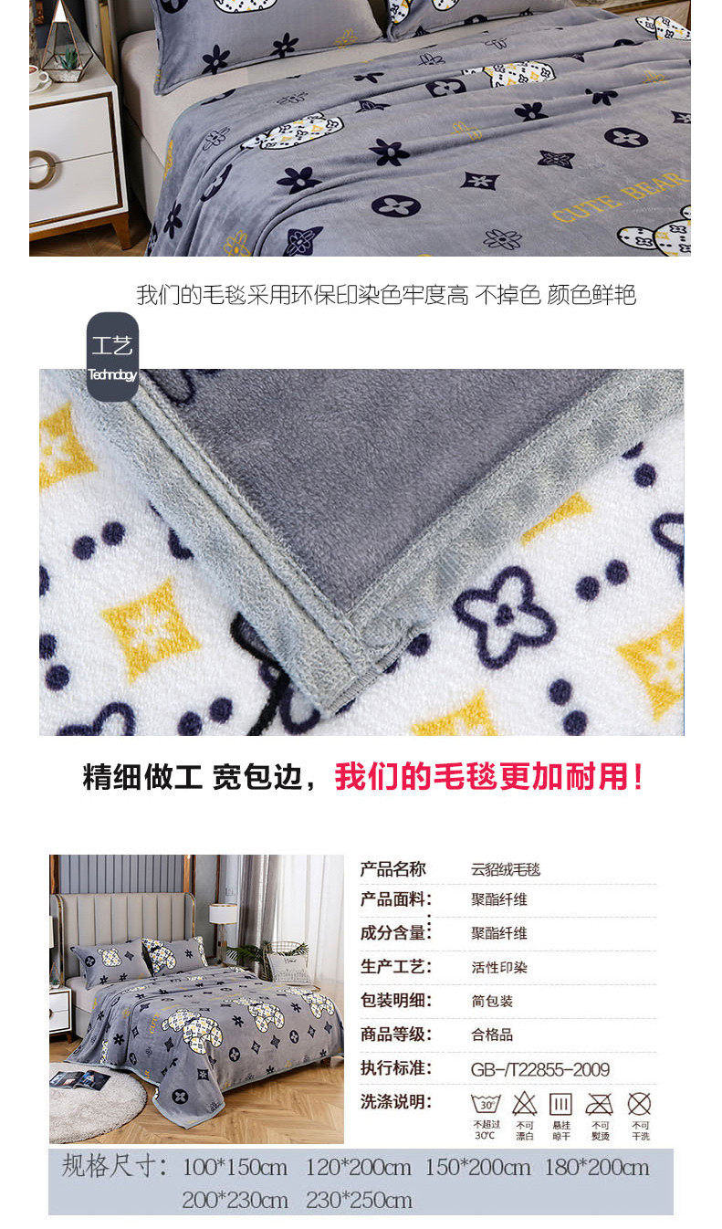 当前位置: 91家纺网 > 商品网购 > 毛毯休闲毯绒毯 > 法莱绒毯 > 赋雅 新款300克双面绒毯子超柔加厚云貂绒法莱绒 幸运熊
