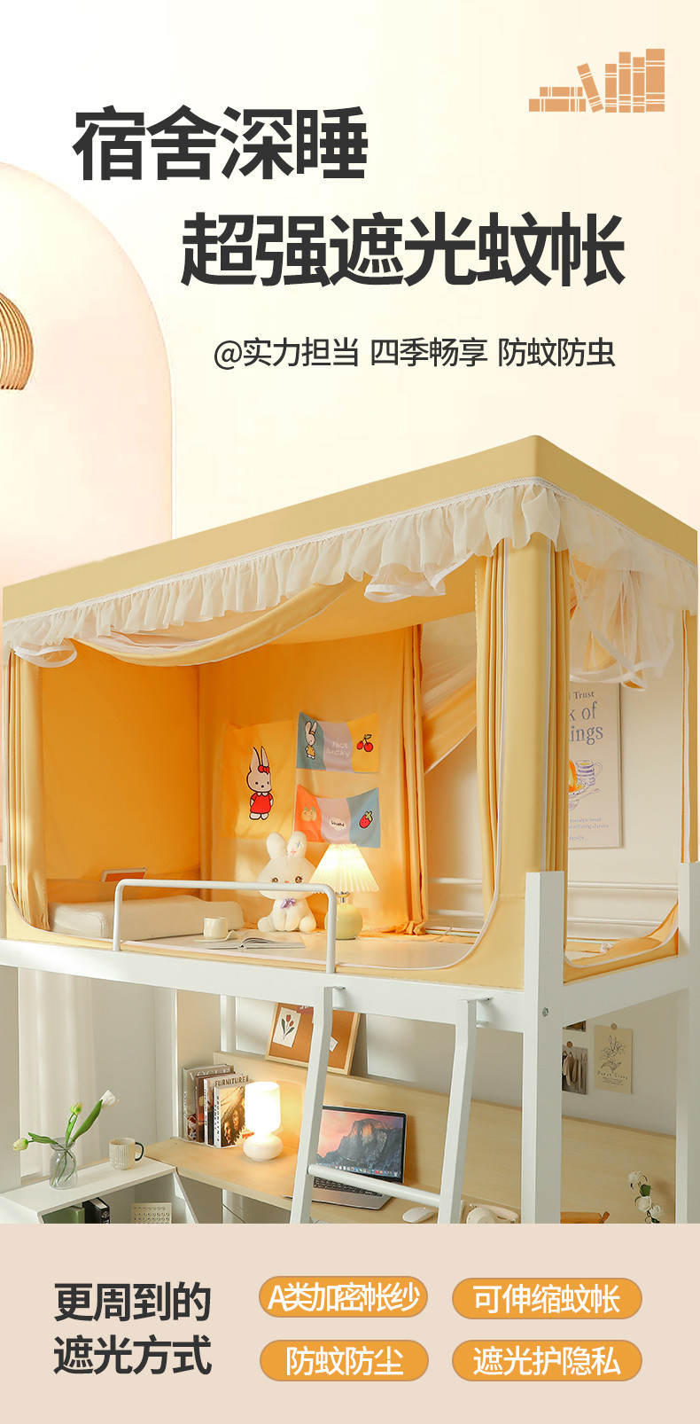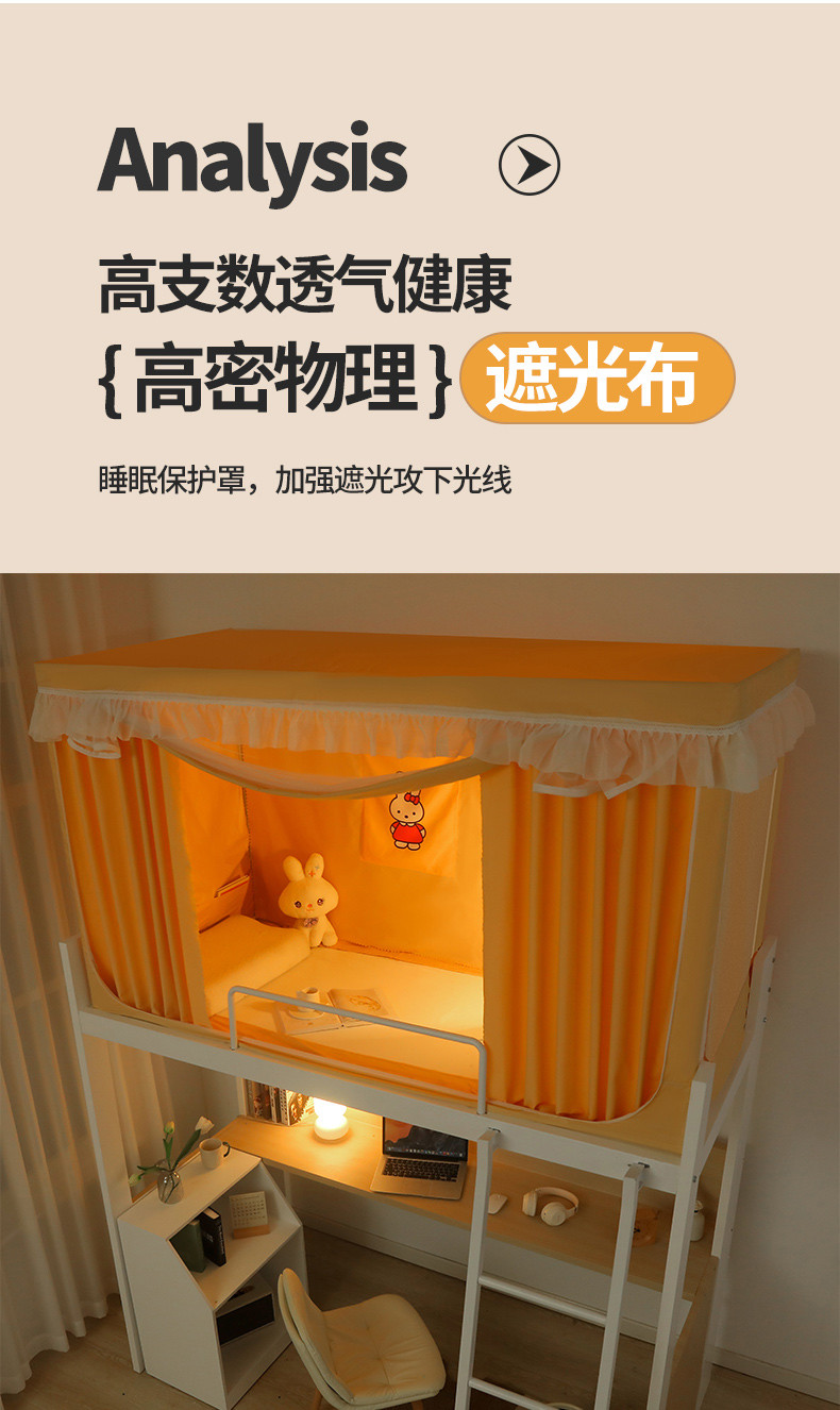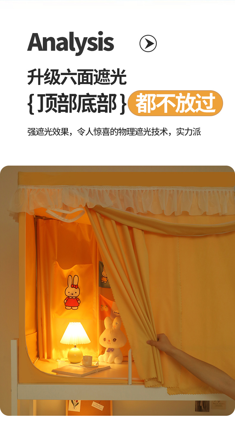 • 91家纺网 家纺一手货源 找家纺 夏彩 88575加强遮光涂层窗帘学生上下铺拉链蚊帐 88557-蜜柚黄