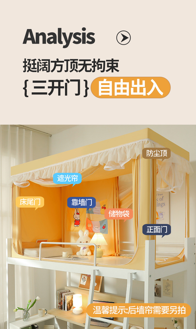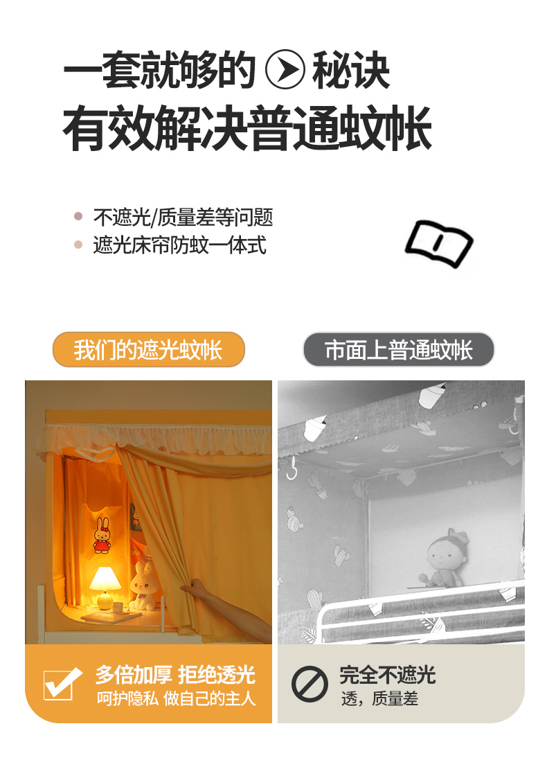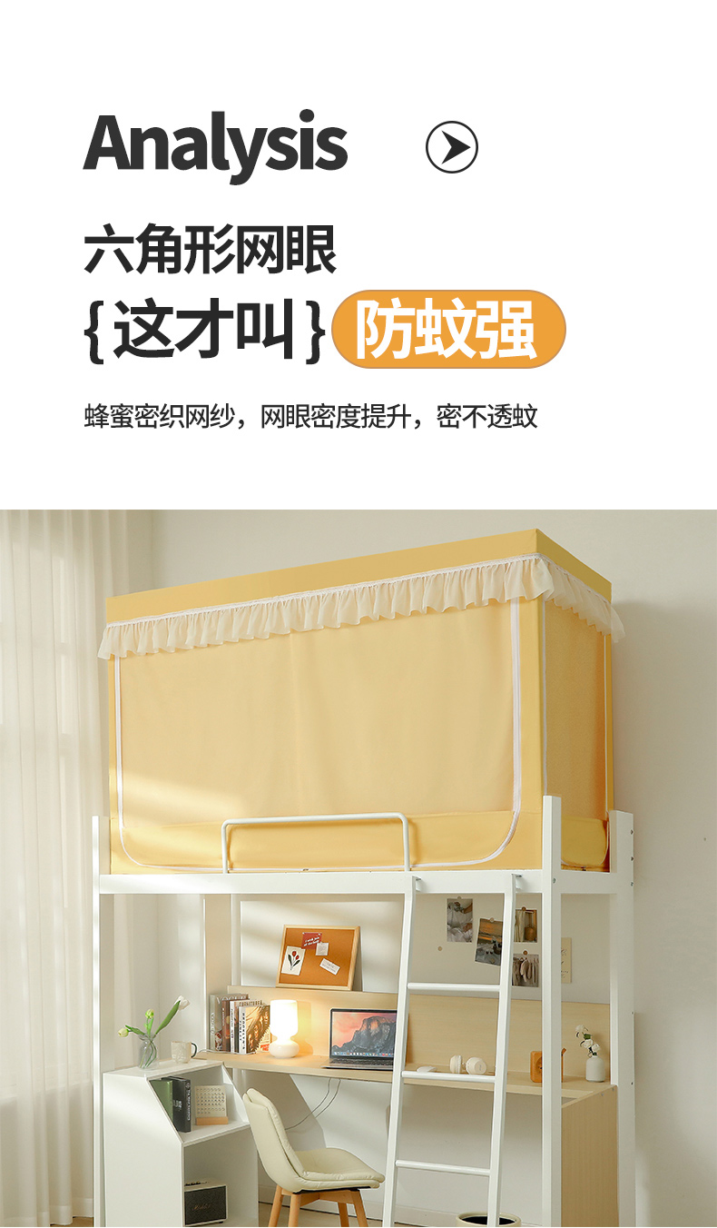 • 91家纺网 家纺一手货源 找家纺 夏彩 88575加强遮光涂层窗帘学生上下铺拉链蚊帐 88557-蜜柚黄