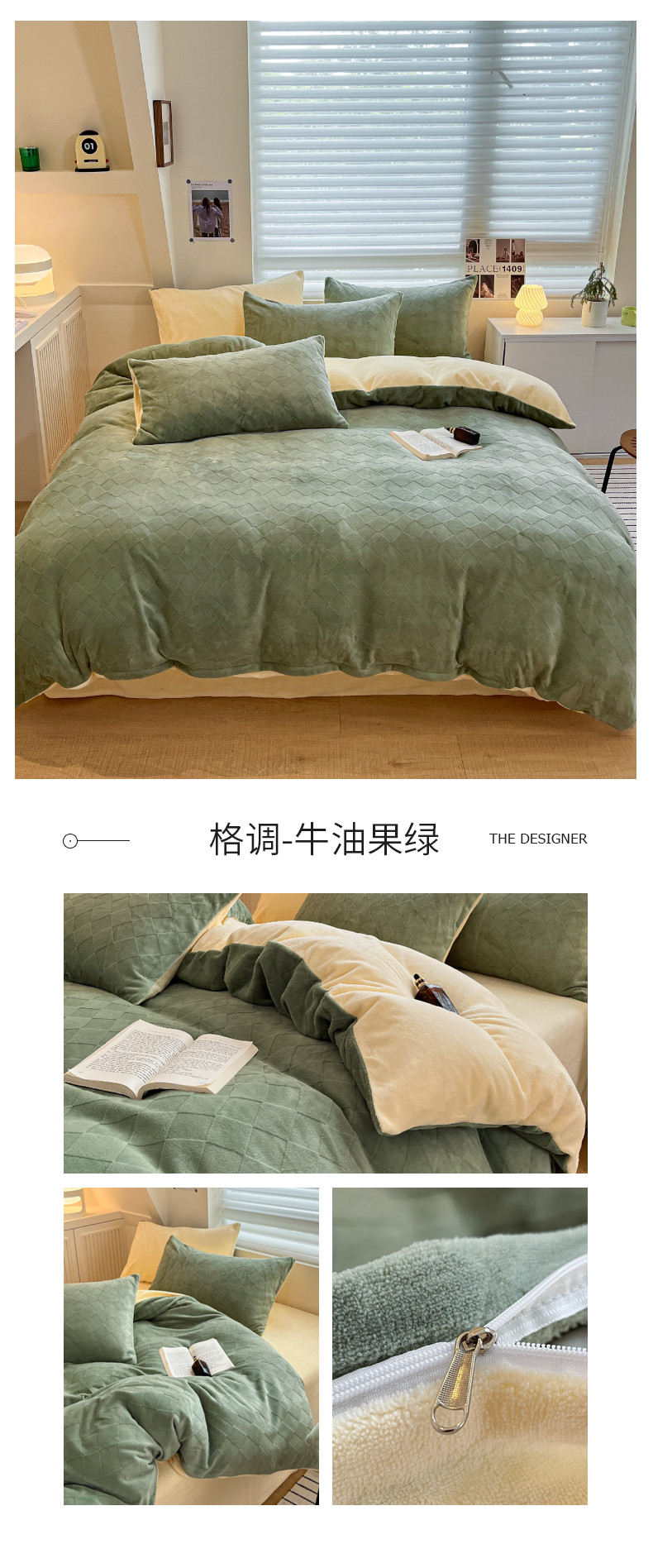 当前位置: 91家纺网 > 商品网购 > 床品套件 > 四件套 > 牛奶绒四件套 > 丝羽坊 2023新款高克重3D立体雕花提花牛奶绒四件套单被套 格调-牛油果绿