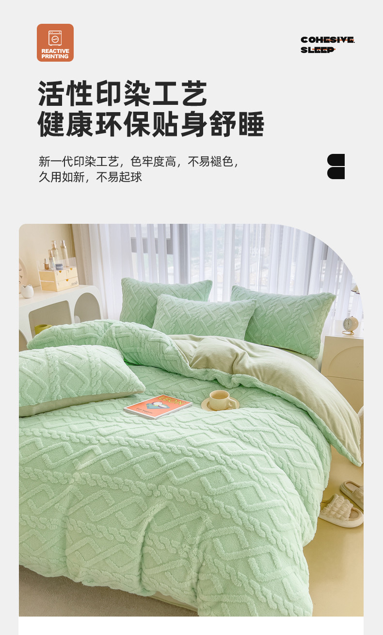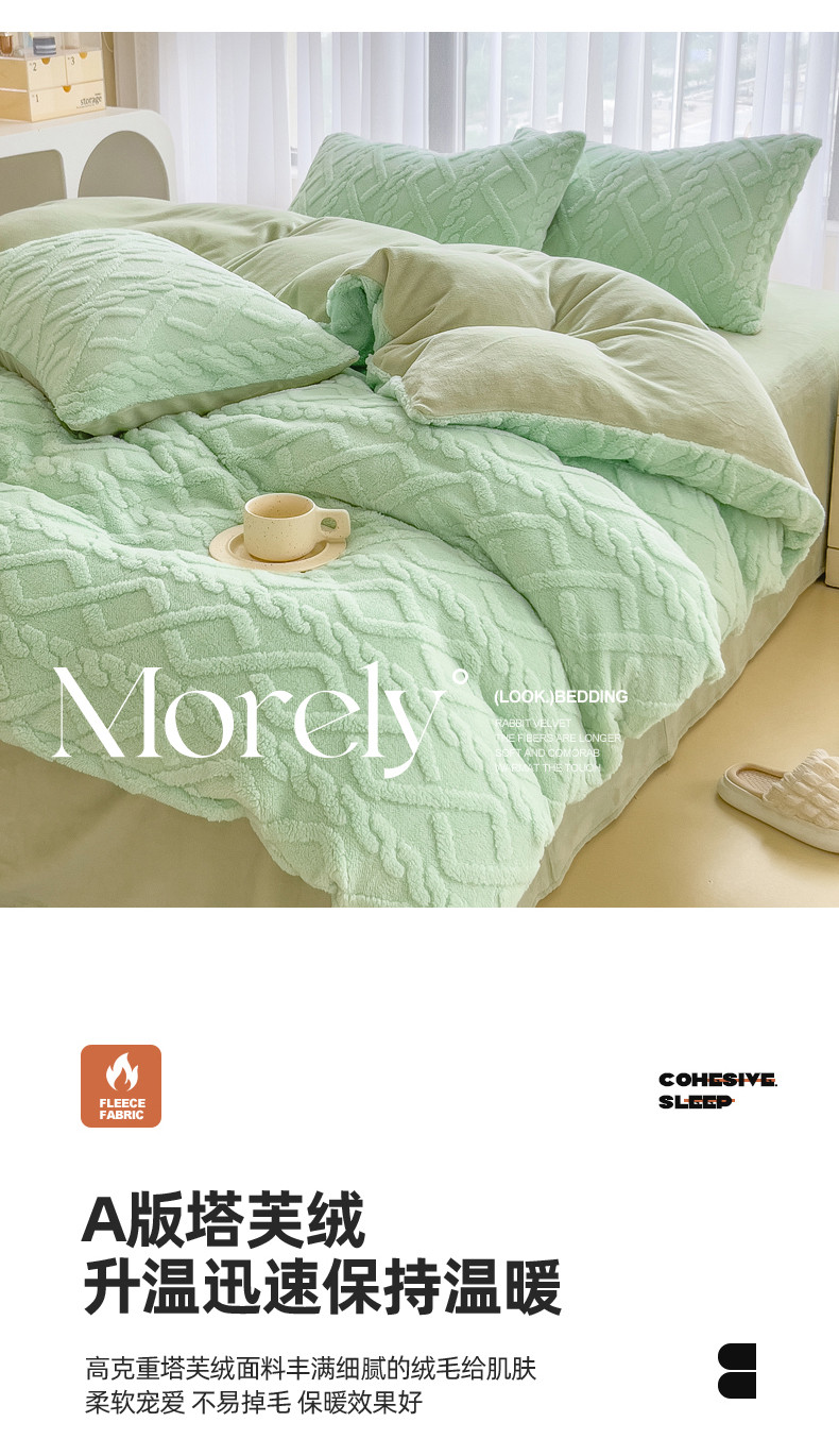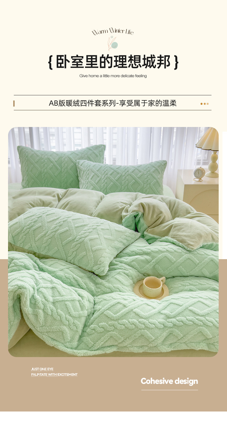 商品名称:绒世界 2024秋冬新款加厚塔芙绒简约款牛奶绒四件套 抹茶