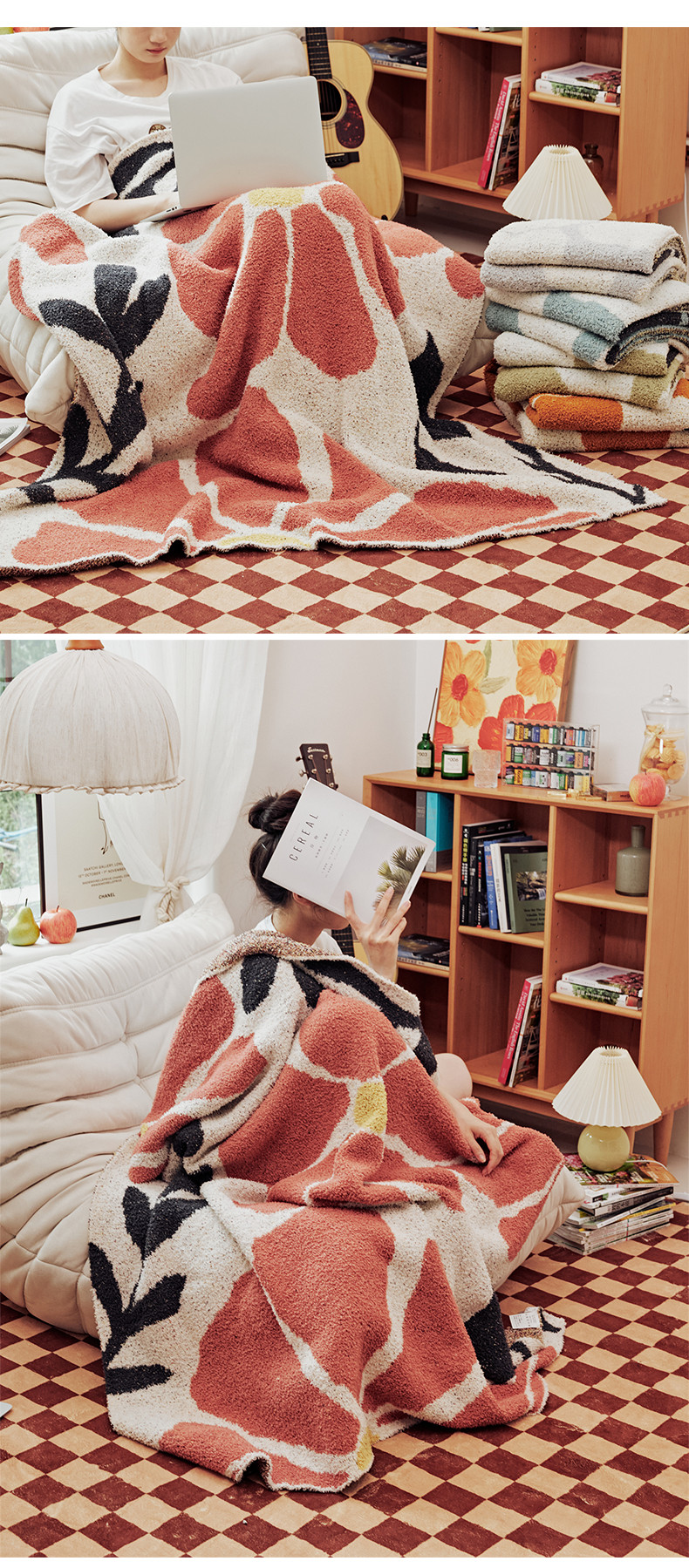 暖绵绵家纺 2025新款花琦系列半边绒办公室午睡毯休闲毯 雅兰