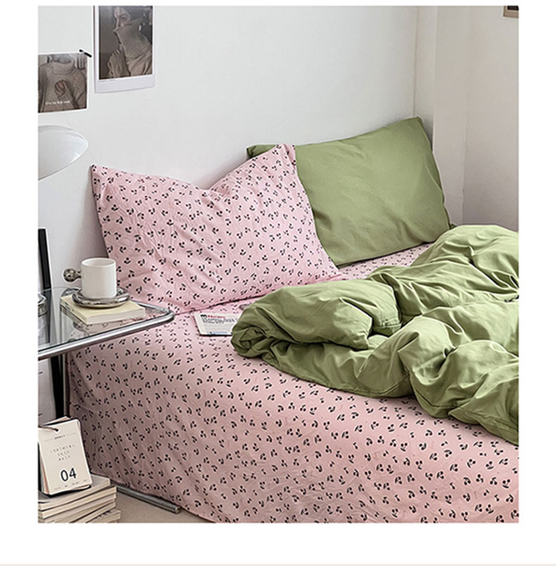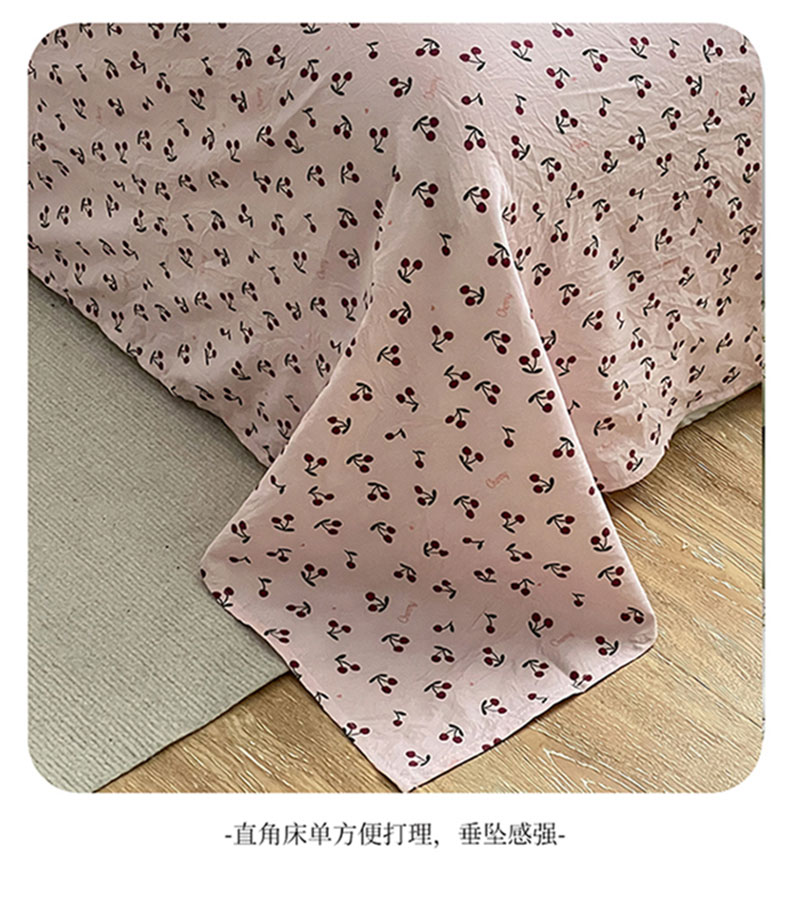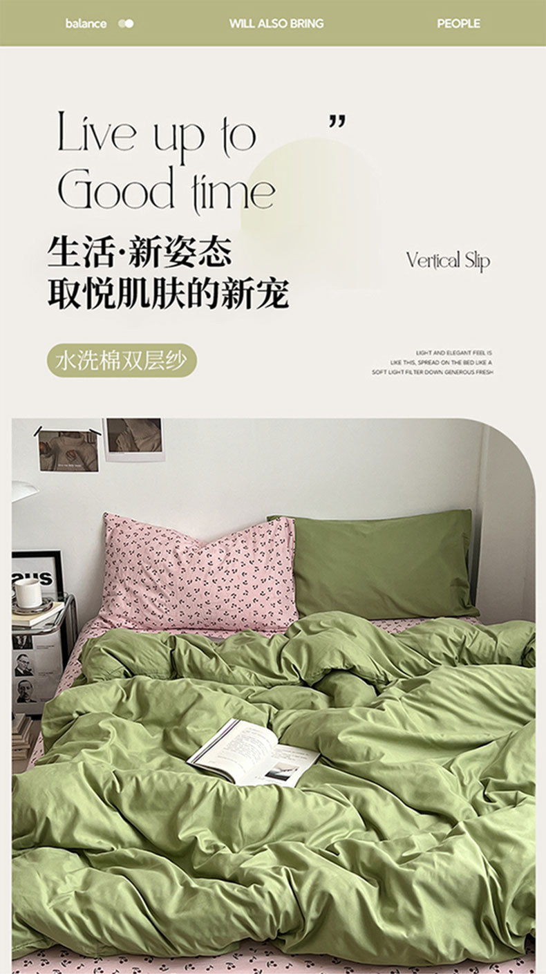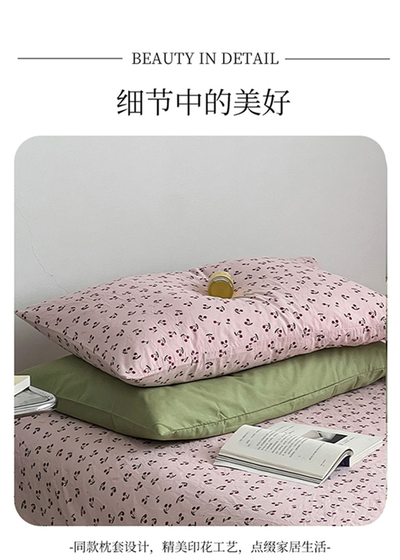 商品名称:梦嘉居 2023新款水洗棉双层纱亲肤舒适单床笠 抹茶绿+小樱桃