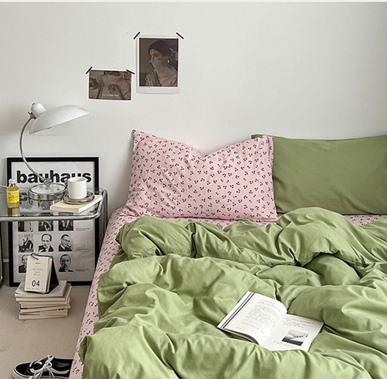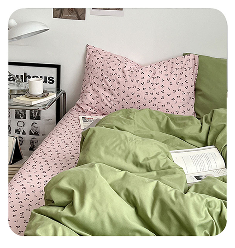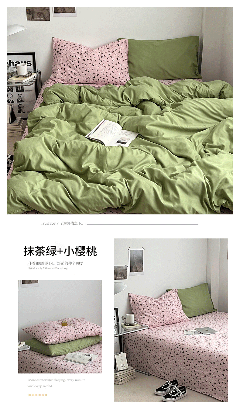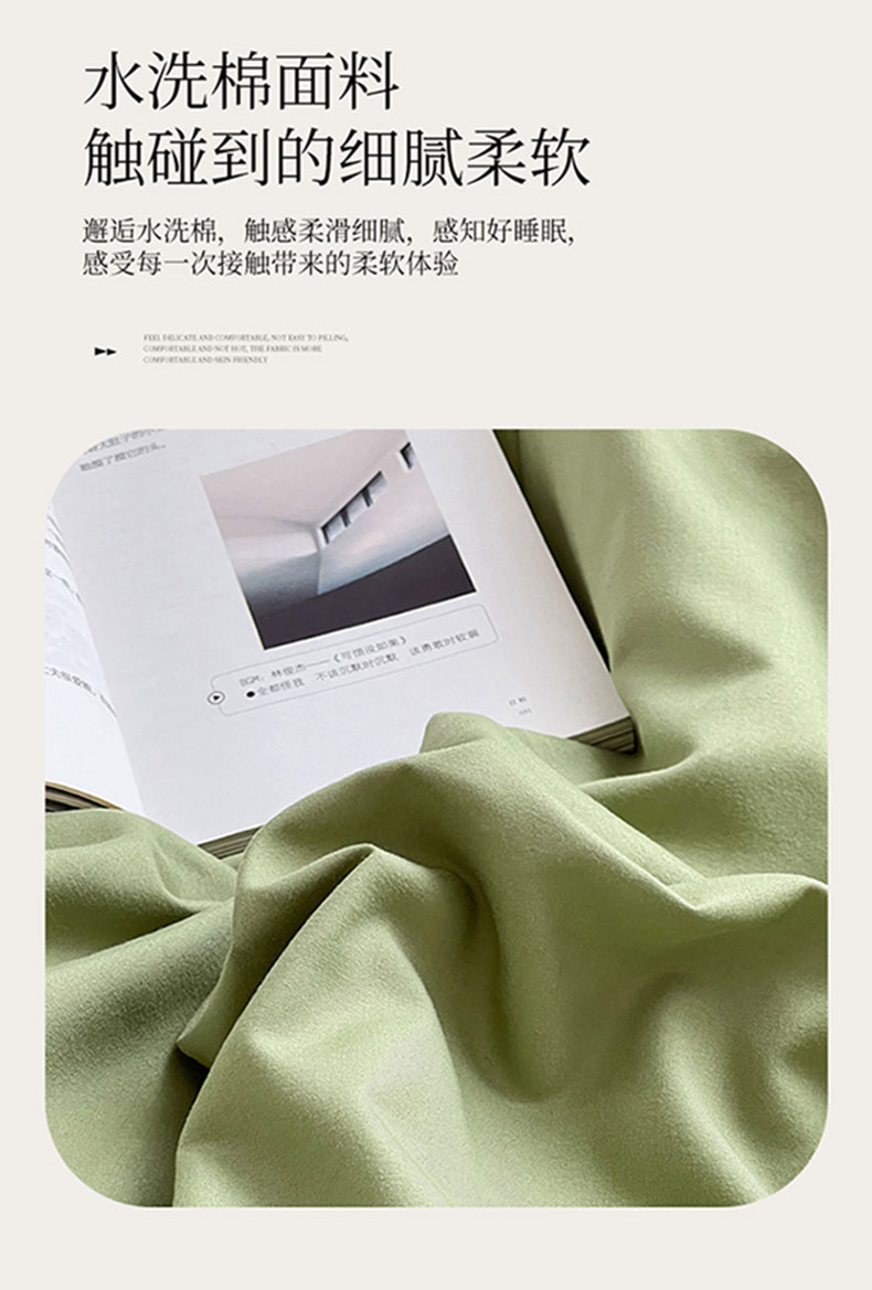 商品名称:梦嘉居 2023新款水洗棉双层纱亲肤舒适单床笠 抹茶绿+小樱桃