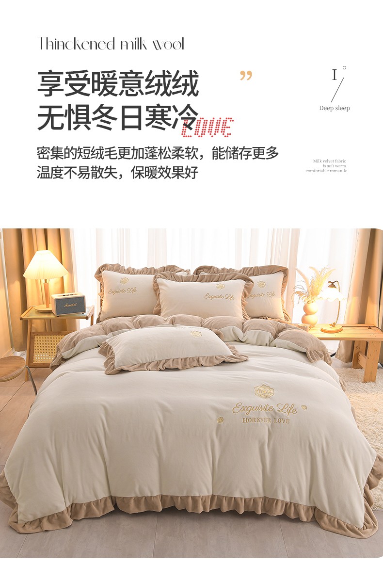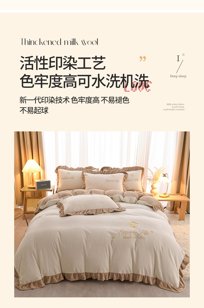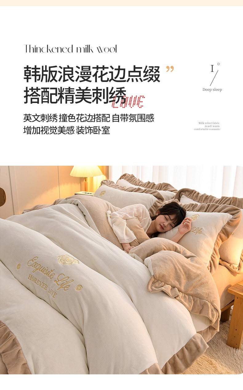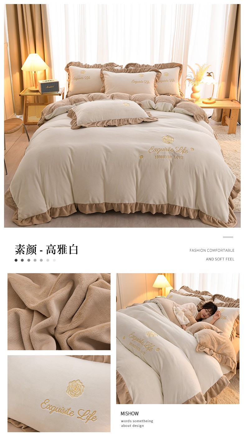 商品名称:湘雪家居 2025新款纯色双层花边牛奶绒四件套 素颜-高雅白