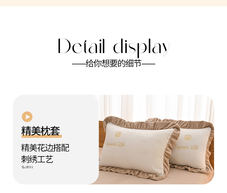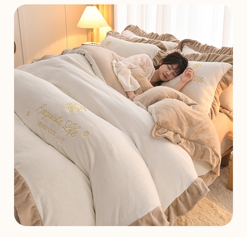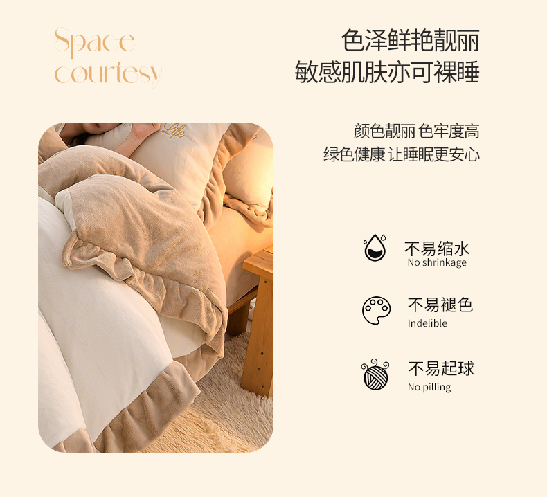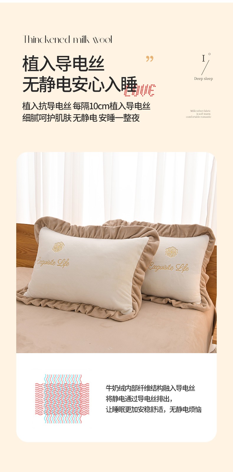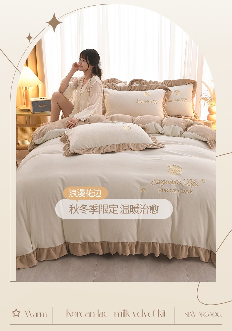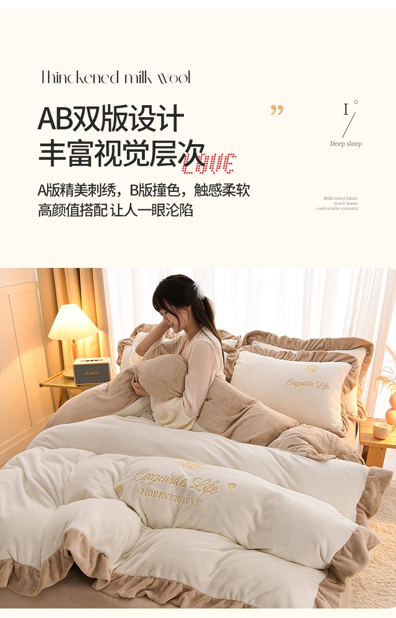 商品名称:湘雪家居 2025新款纯色双层花边牛奶绒四件套 素颜-高雅白