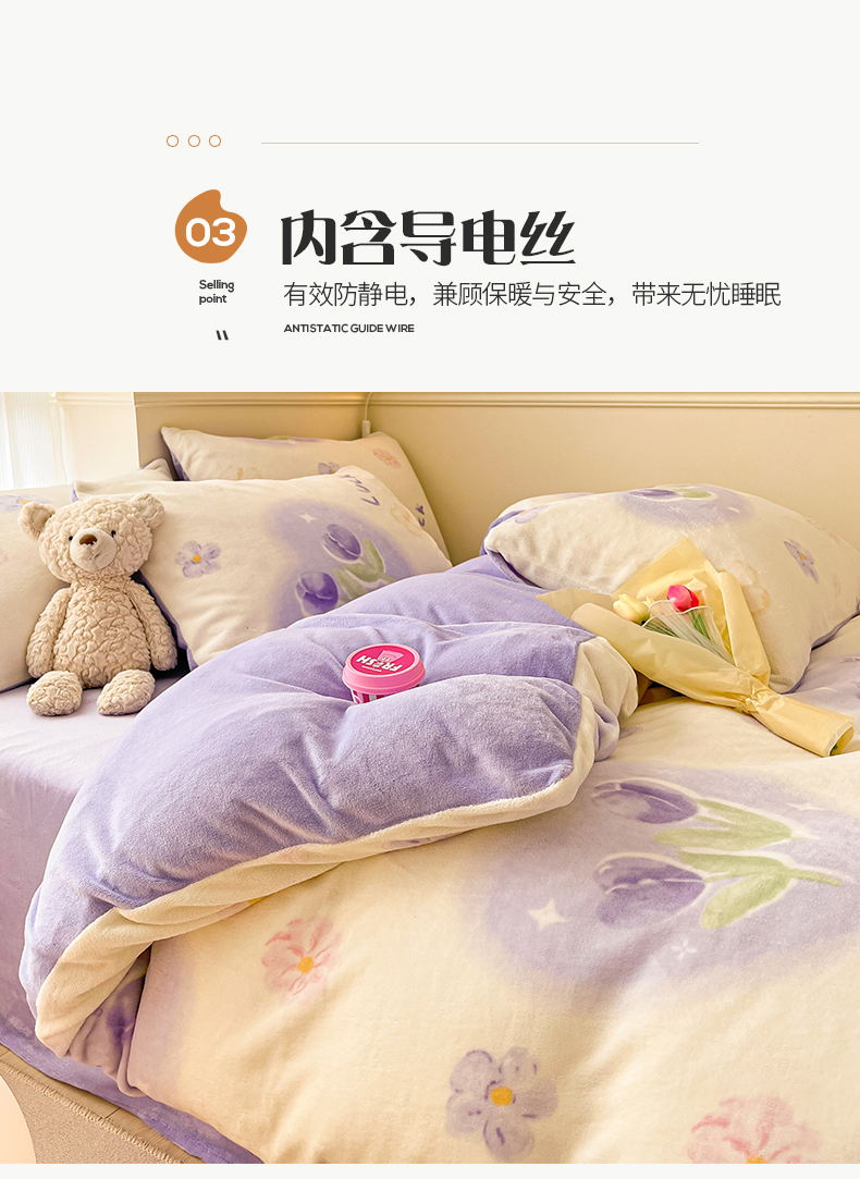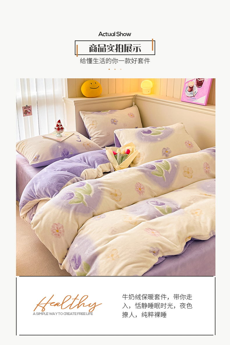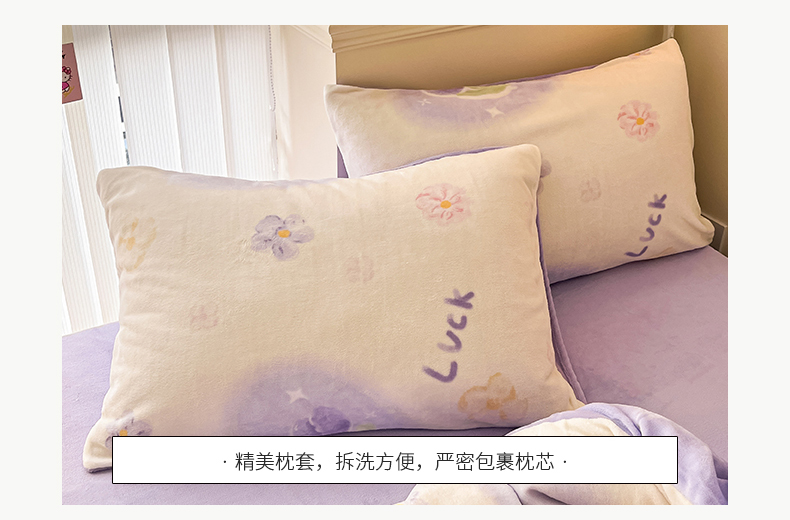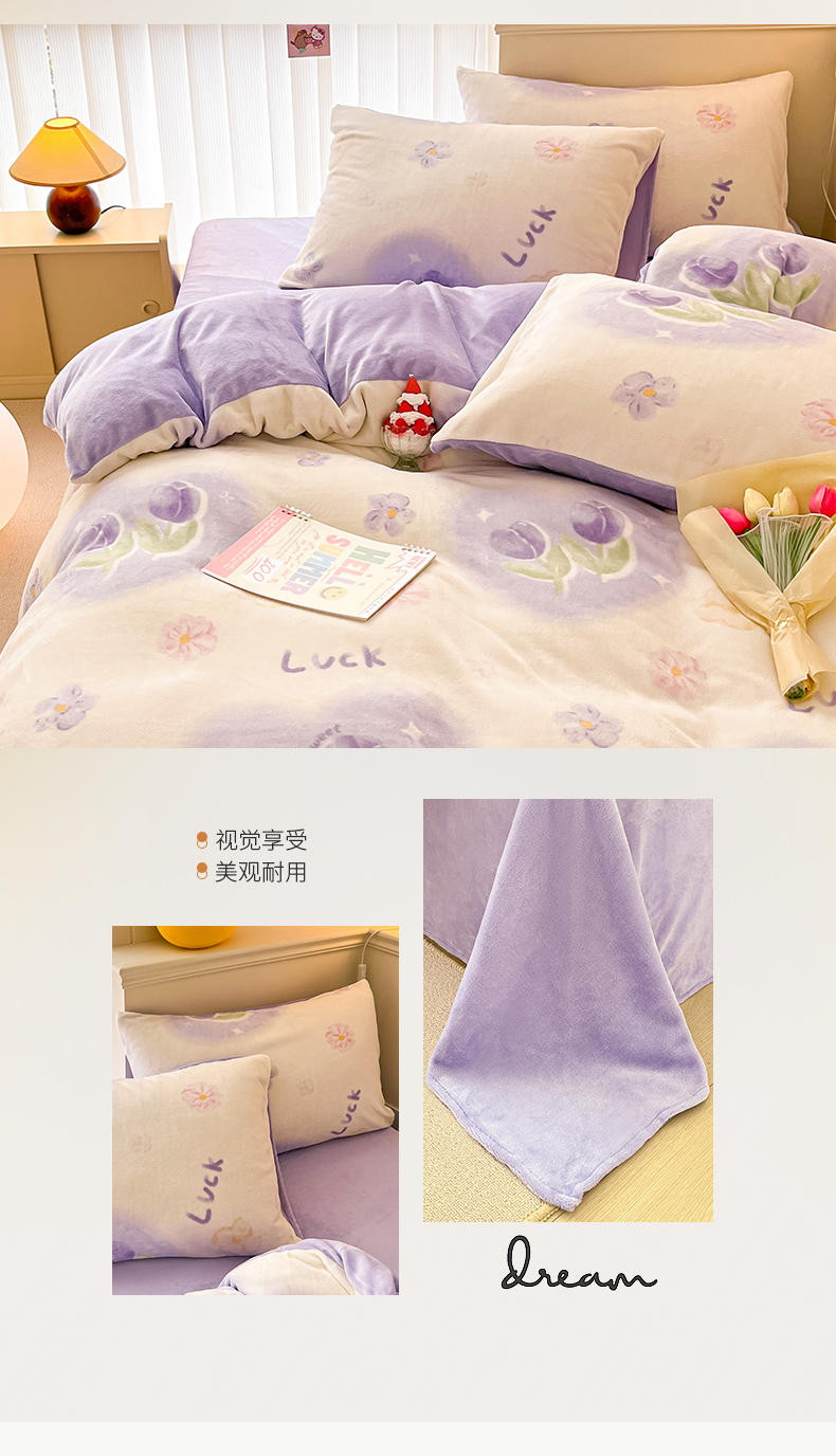 商品名称:桃子 2023新款ins小清新韩系卡通少女心奶油兔子加厚牛奶绒系列四件套-第一批 绒-幸运郁金香
