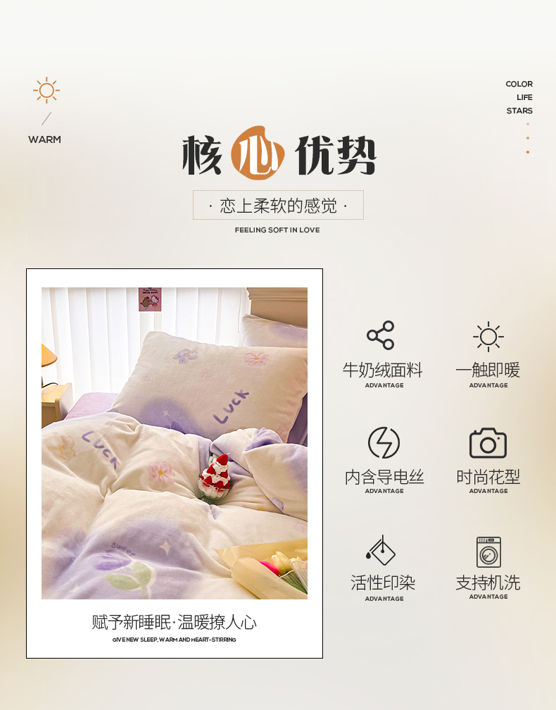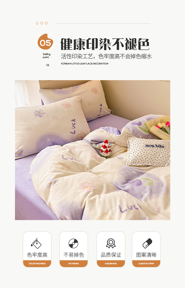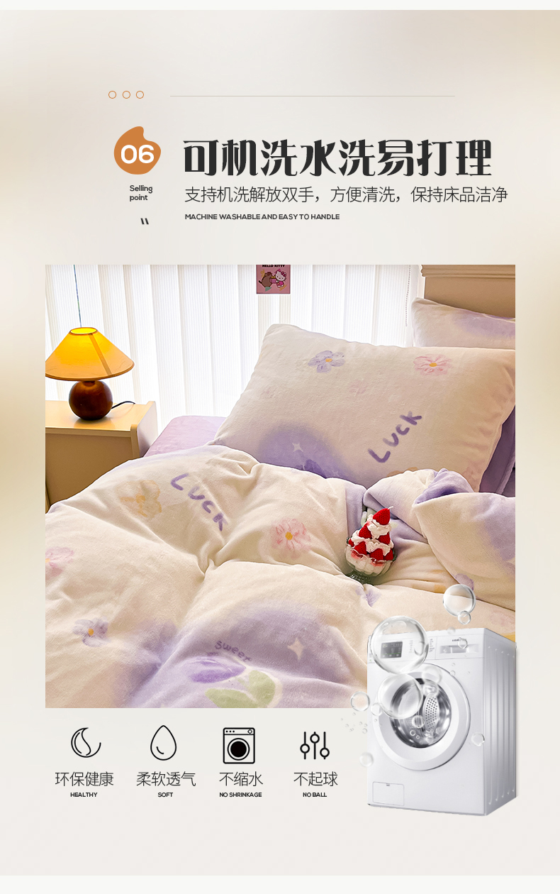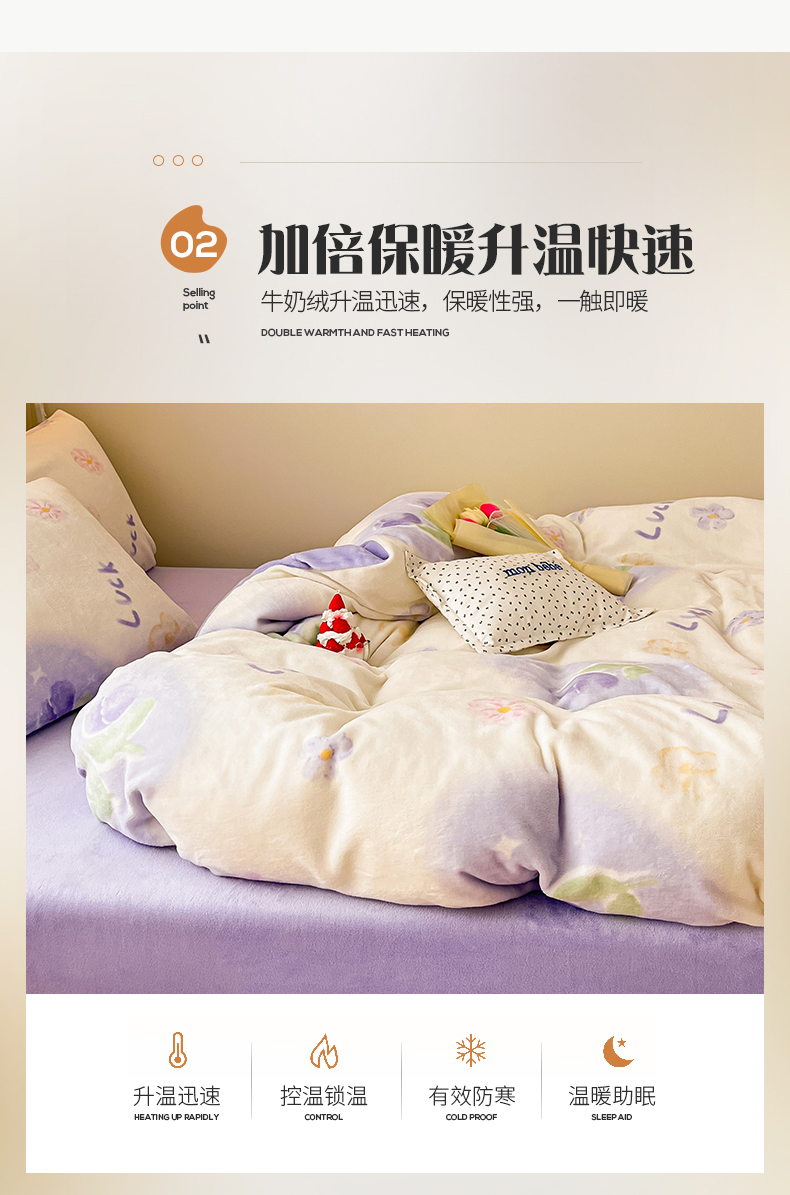 商品名称:桃子 2023新款ins小清新韩系卡通少女心奶油兔子加厚牛奶绒系列四件套-第一批 绒-幸运郁金香