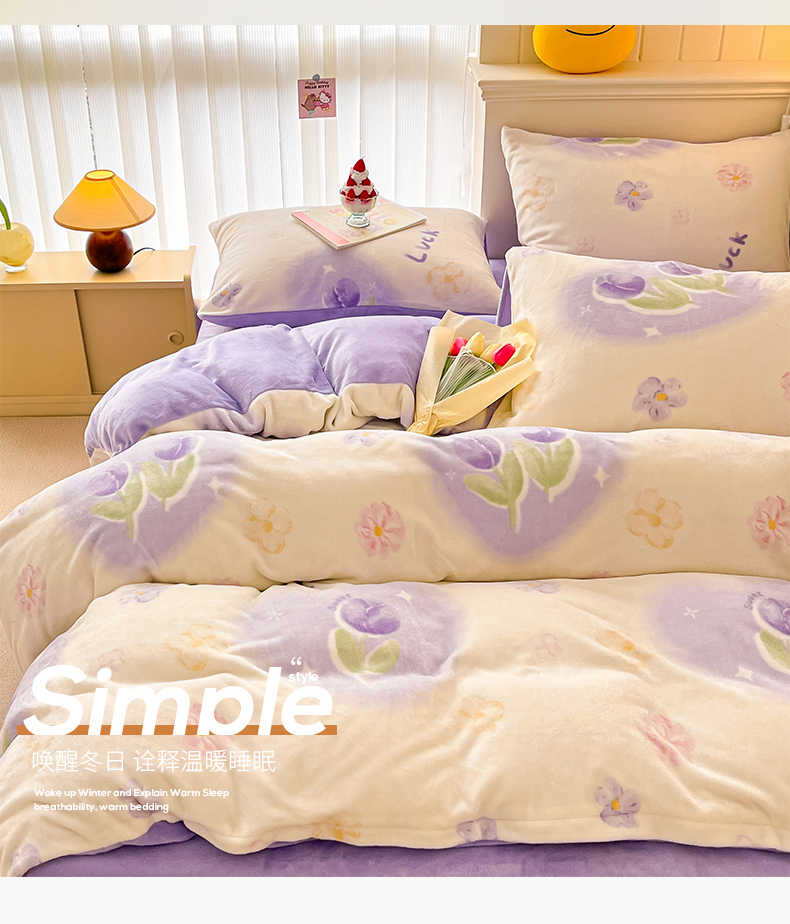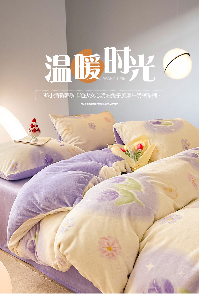 桃子 2023新款ins小清新韩系卡通少女心奶油兔子加厚牛奶绒系列四件套-第一批 绒-幸运郁金香