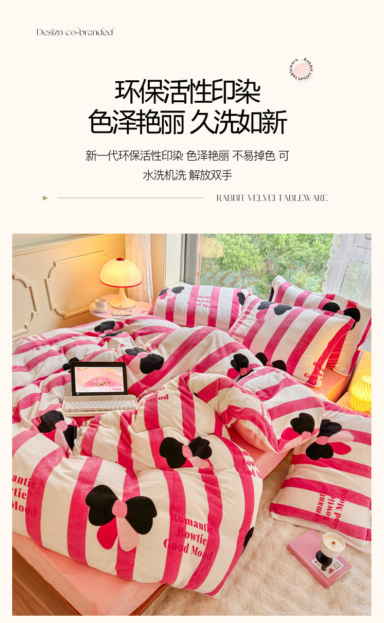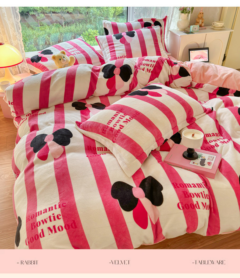 花伞 2024新款加厚牛奶绒保暖四件套 甜酷少女
