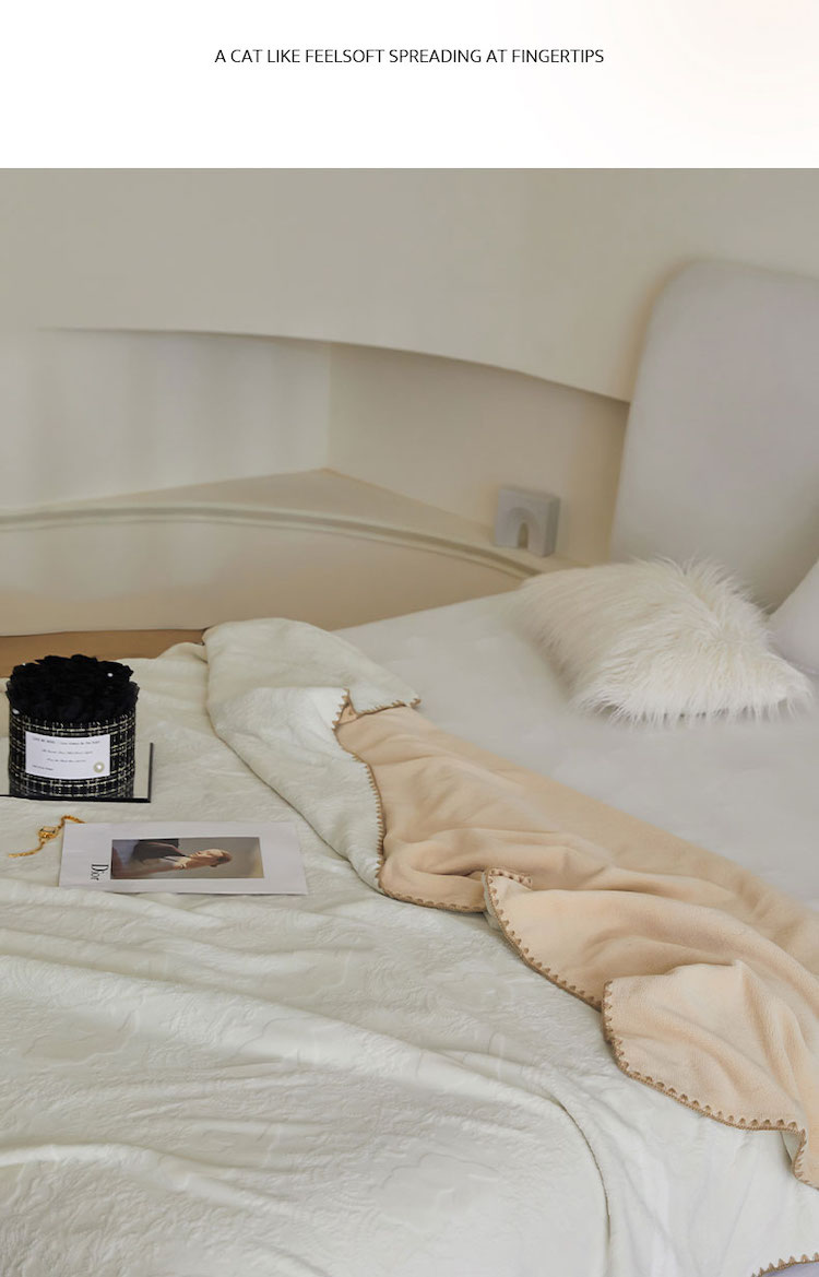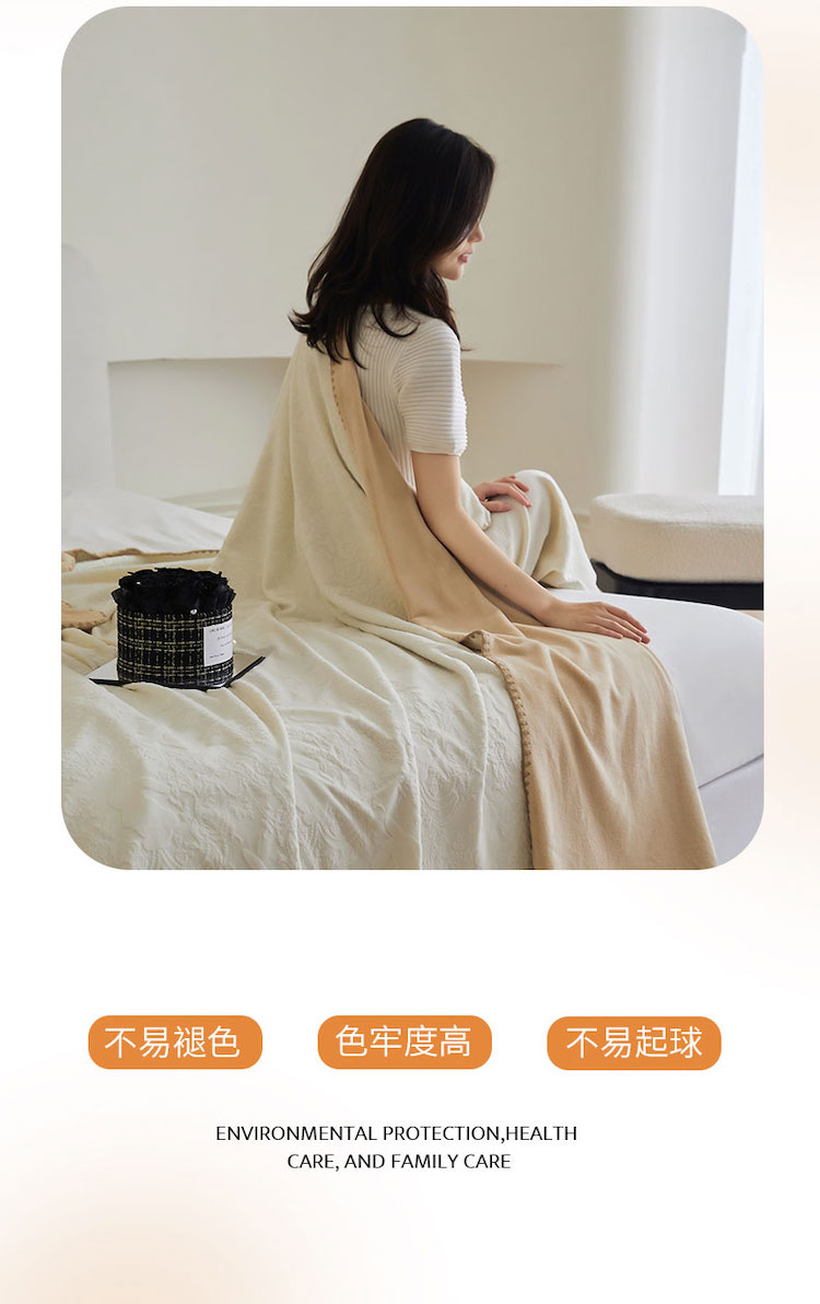 (总)铭动家纺 2024新款牛奶绒拼接款纯色保暖毯,粉色,灰,卡其,蓝灰,米白,天蓝