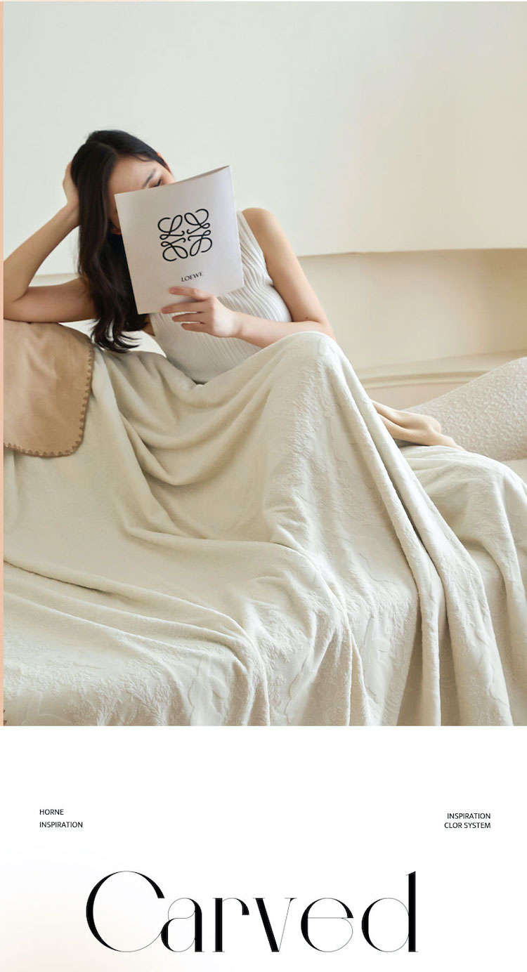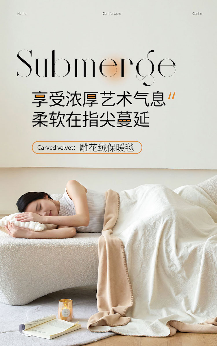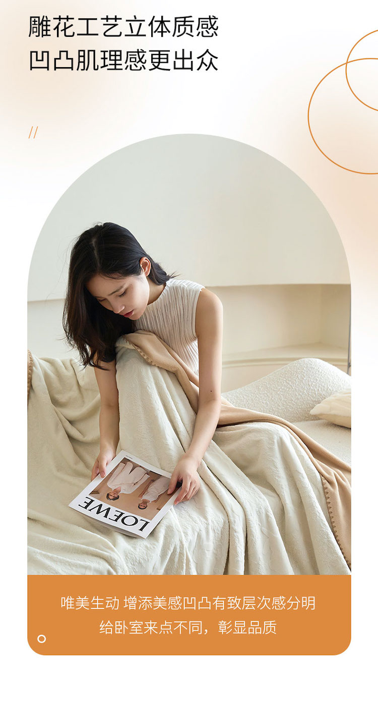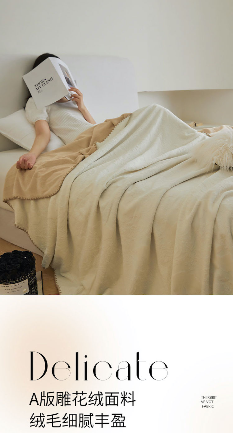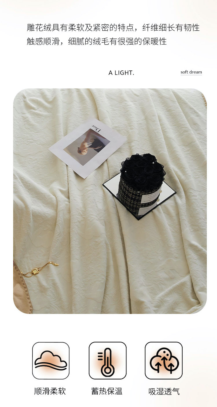 商品名称:铭动 2023新款雕花绒保暖毯-魅影 米色