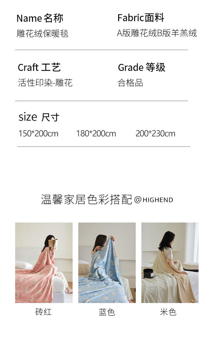 (总)铭动 2024新款雕花绒保暖毯-悠若毛毯,粉,卡其,蓝,绿