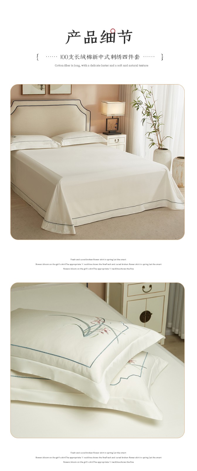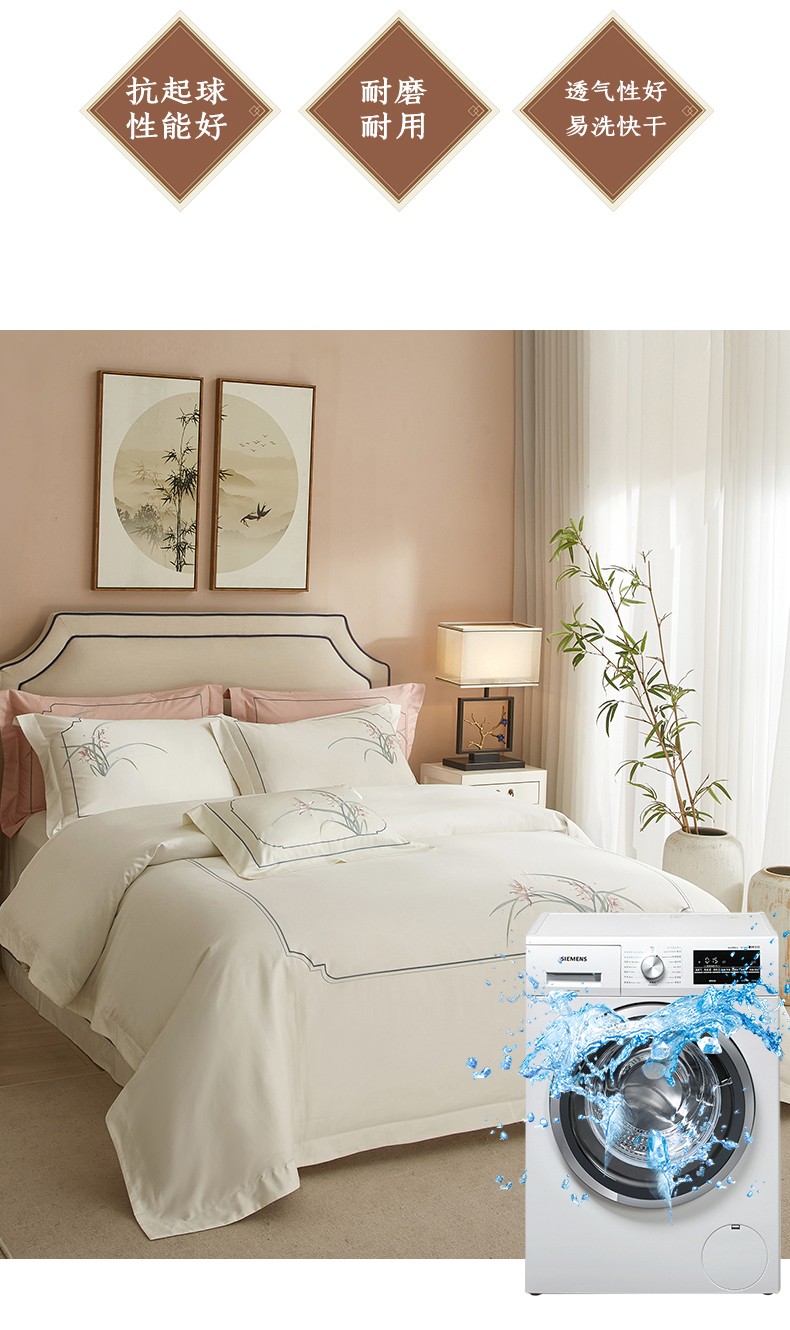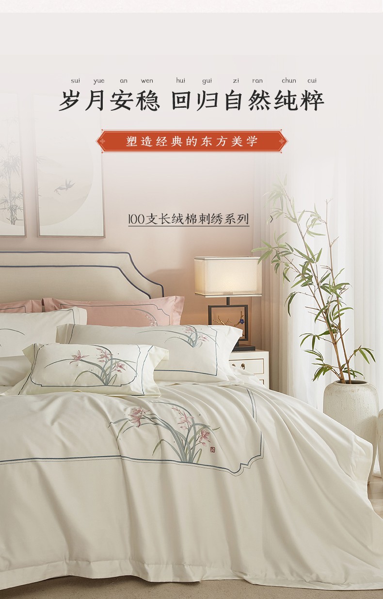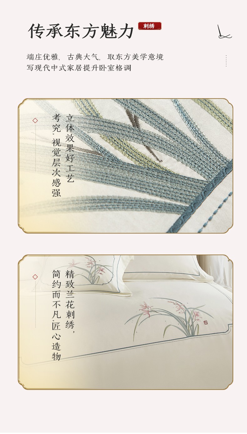 50S50支澳棉刺绣长绒棉四件套全棉新中式花卉直播爆款线下批发 兰花白