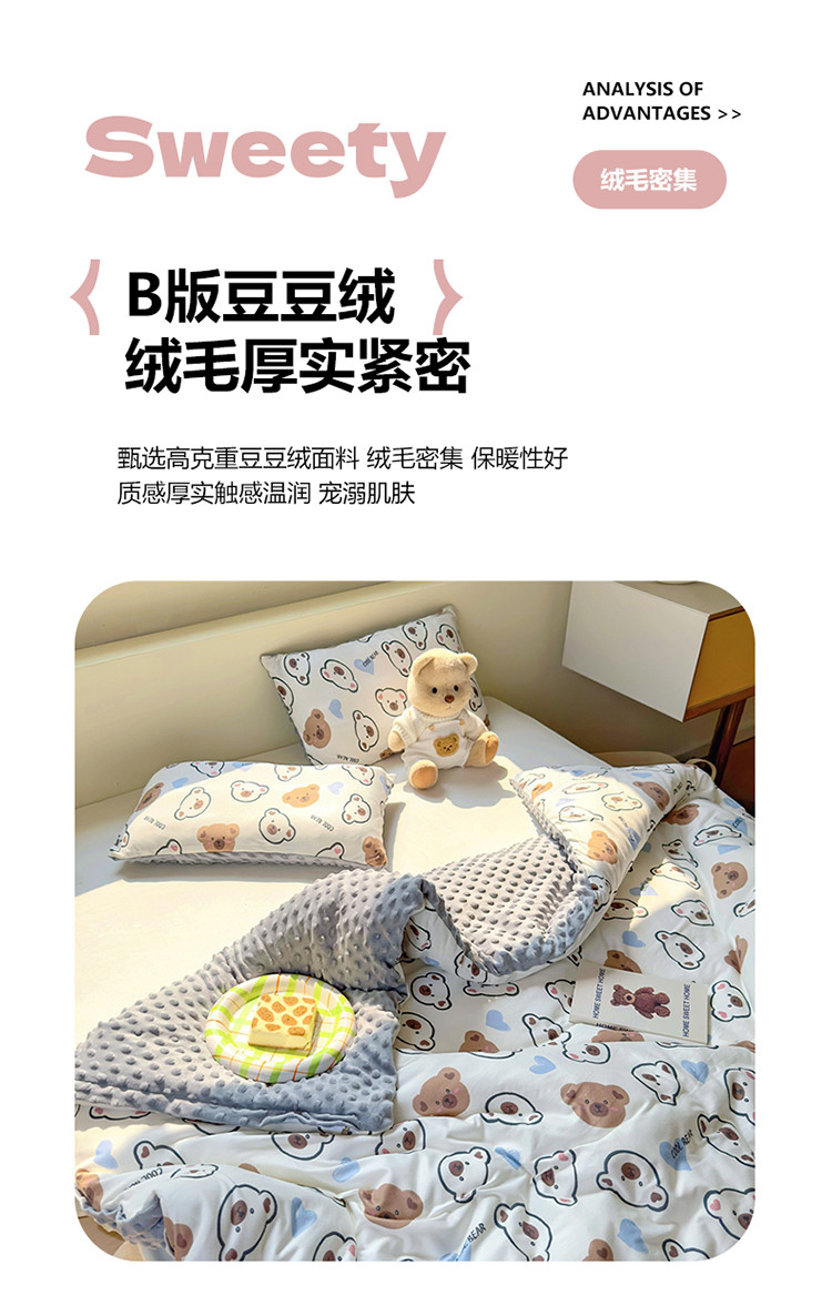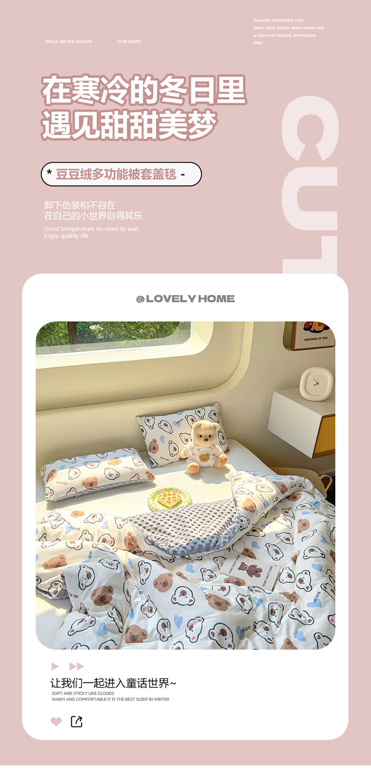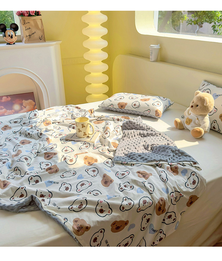希诺 2023新款普版豆豆绒多功能被套盖毯针织棉宝宝盖毯 酷小熊