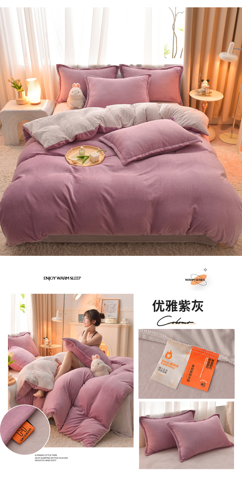 (总)简爱家纺 2025新款高克重牛奶绒床单系列,豆沙,宾利蓝,橄榄绿,灰色,卡其,奶油色,柠檬黄,天蓝,樱花粉,优雅紫,组合
