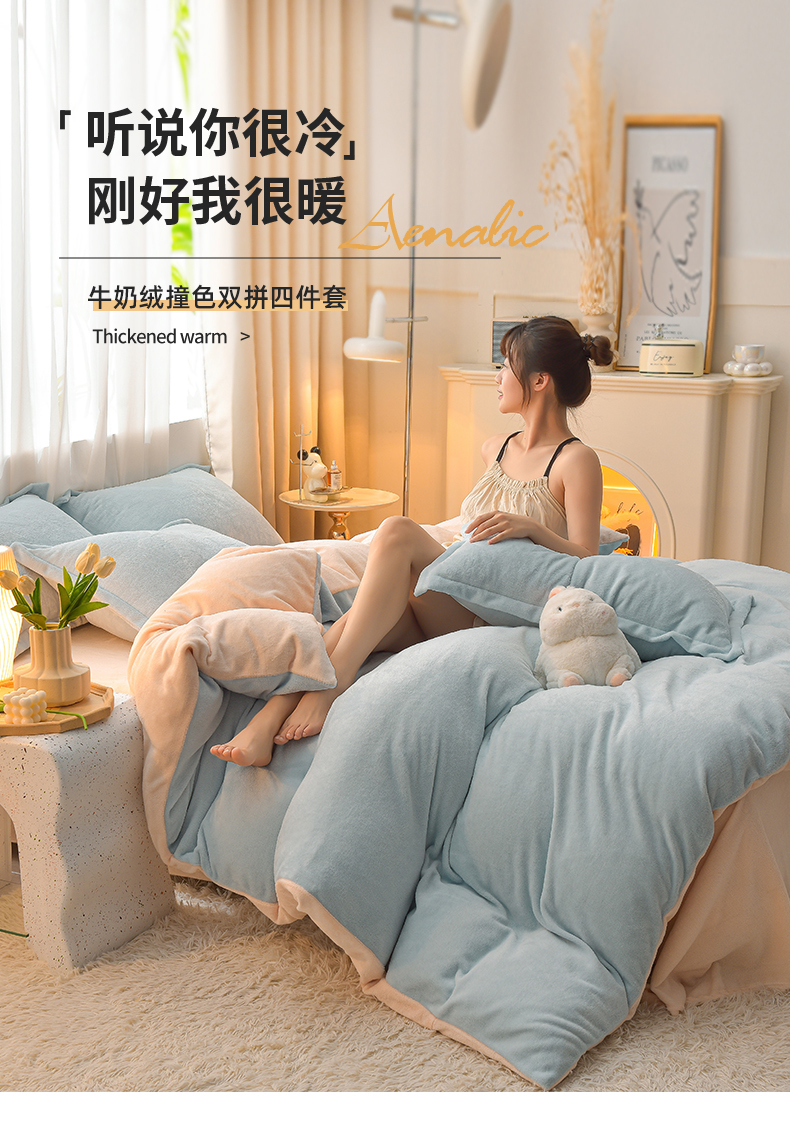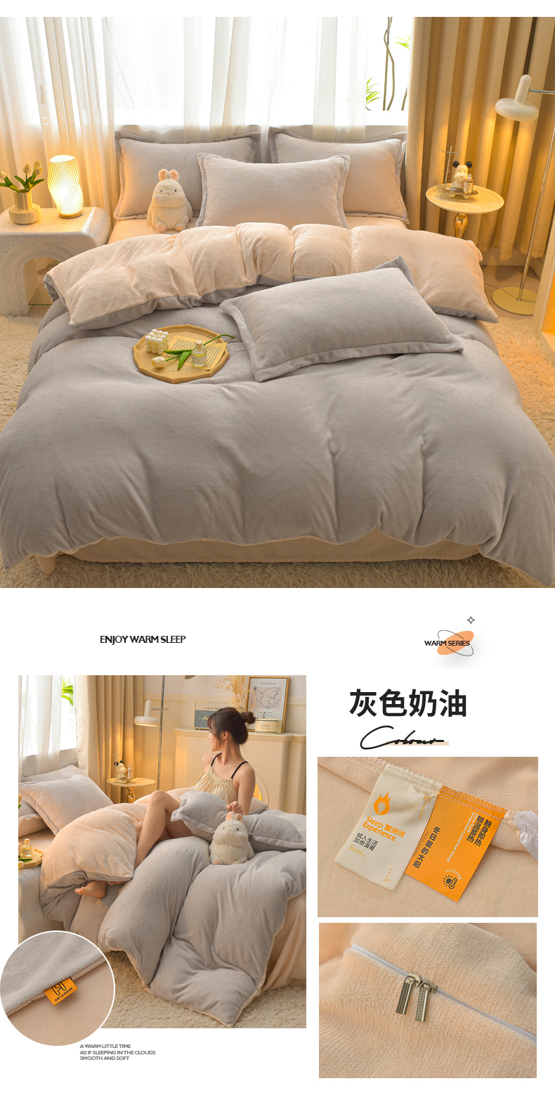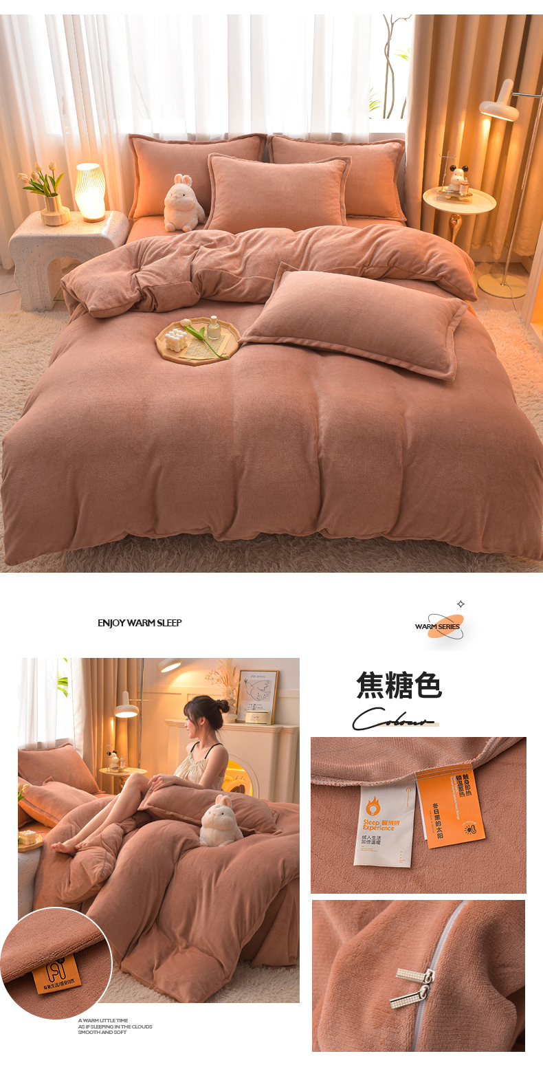 (总)简爱2025新款纯色双拼牛奶绒四件套被套(跑量款)直播