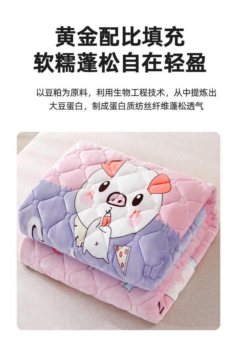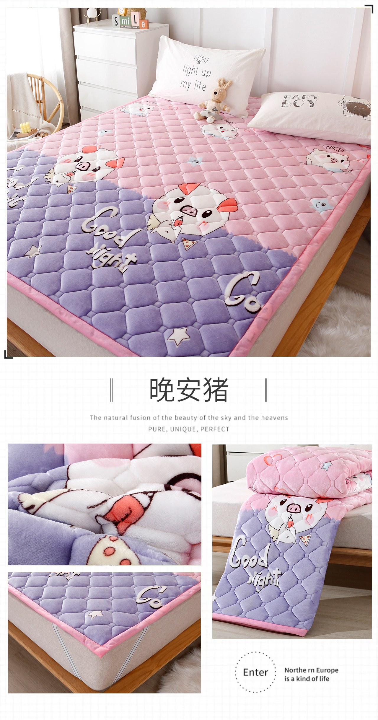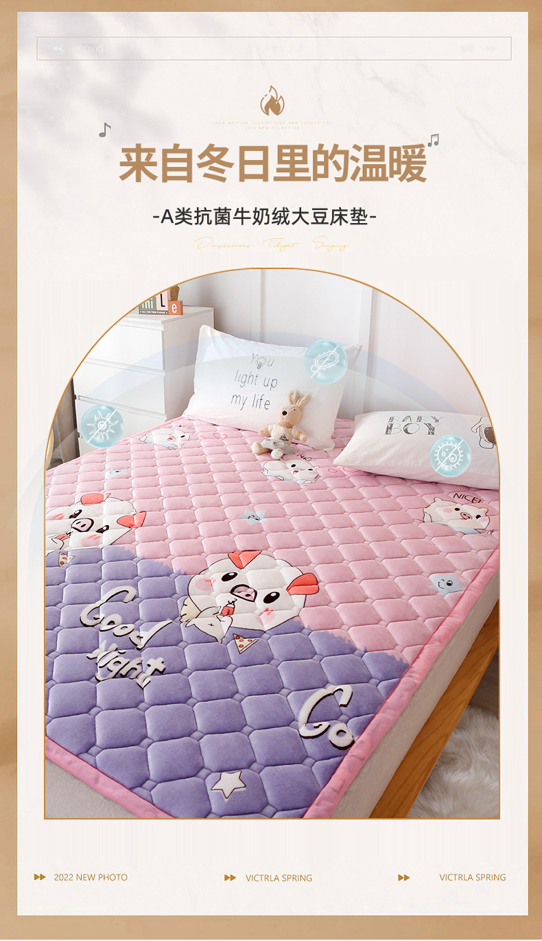 商品名称:东宇 2024年新款A类抗菌牛奶绒大床加厚床垫 晚安猪
