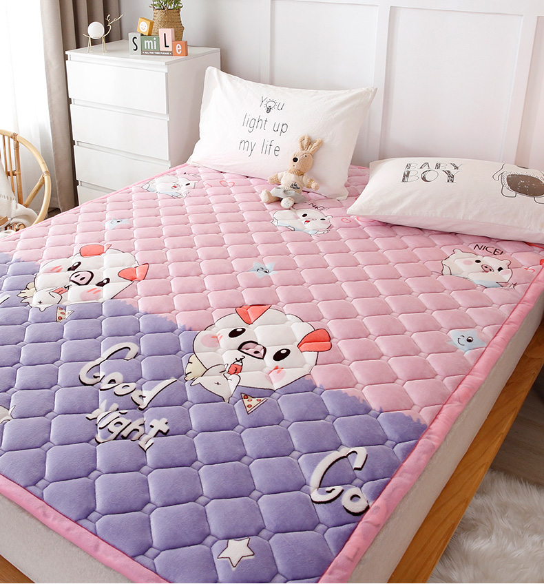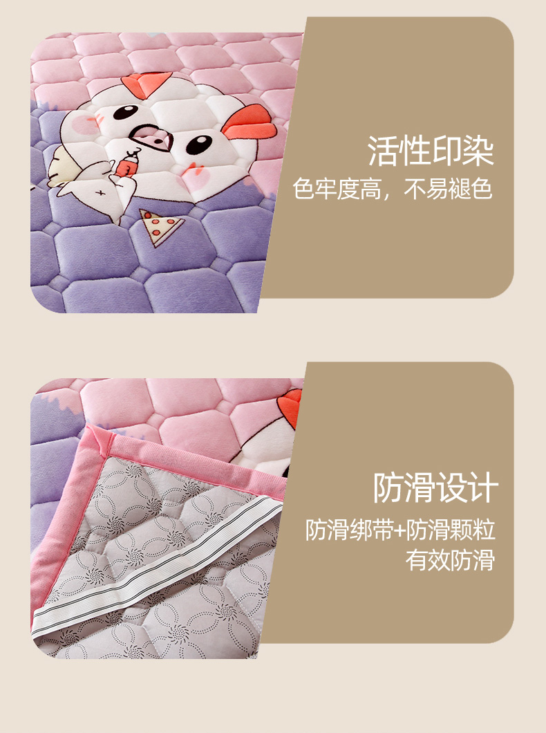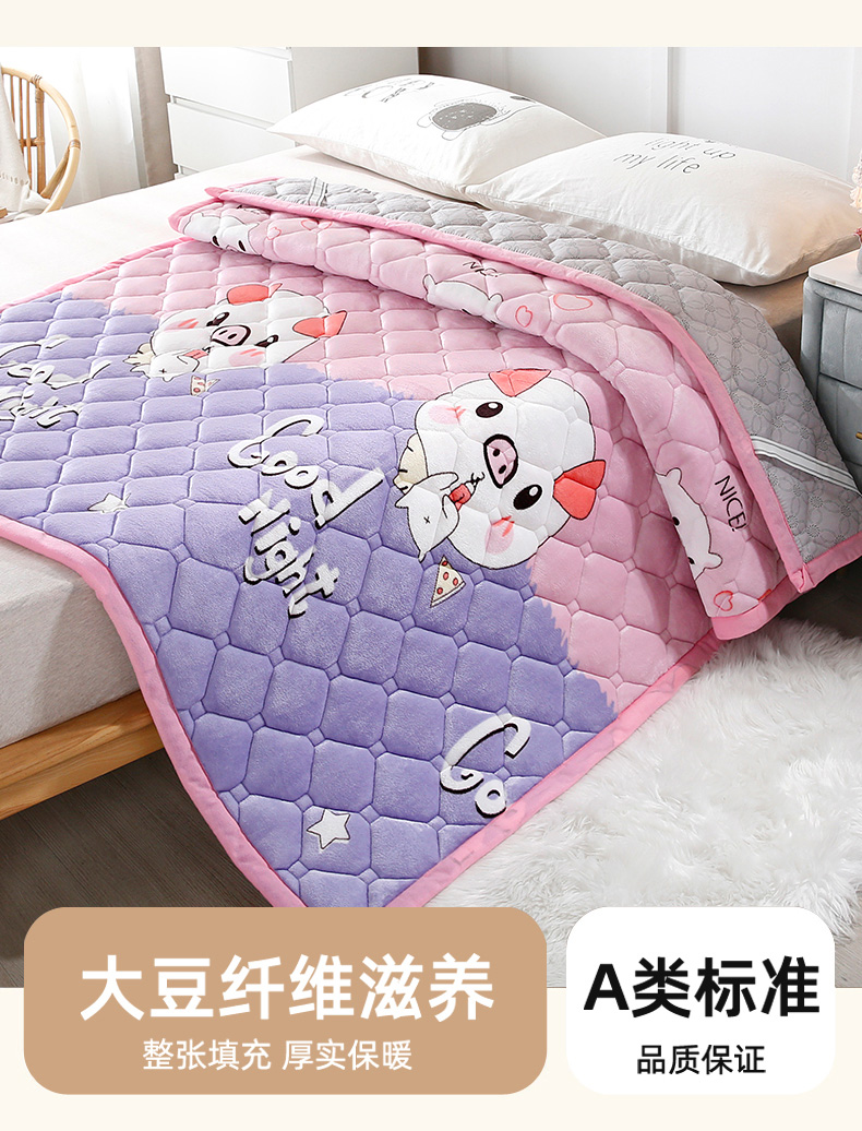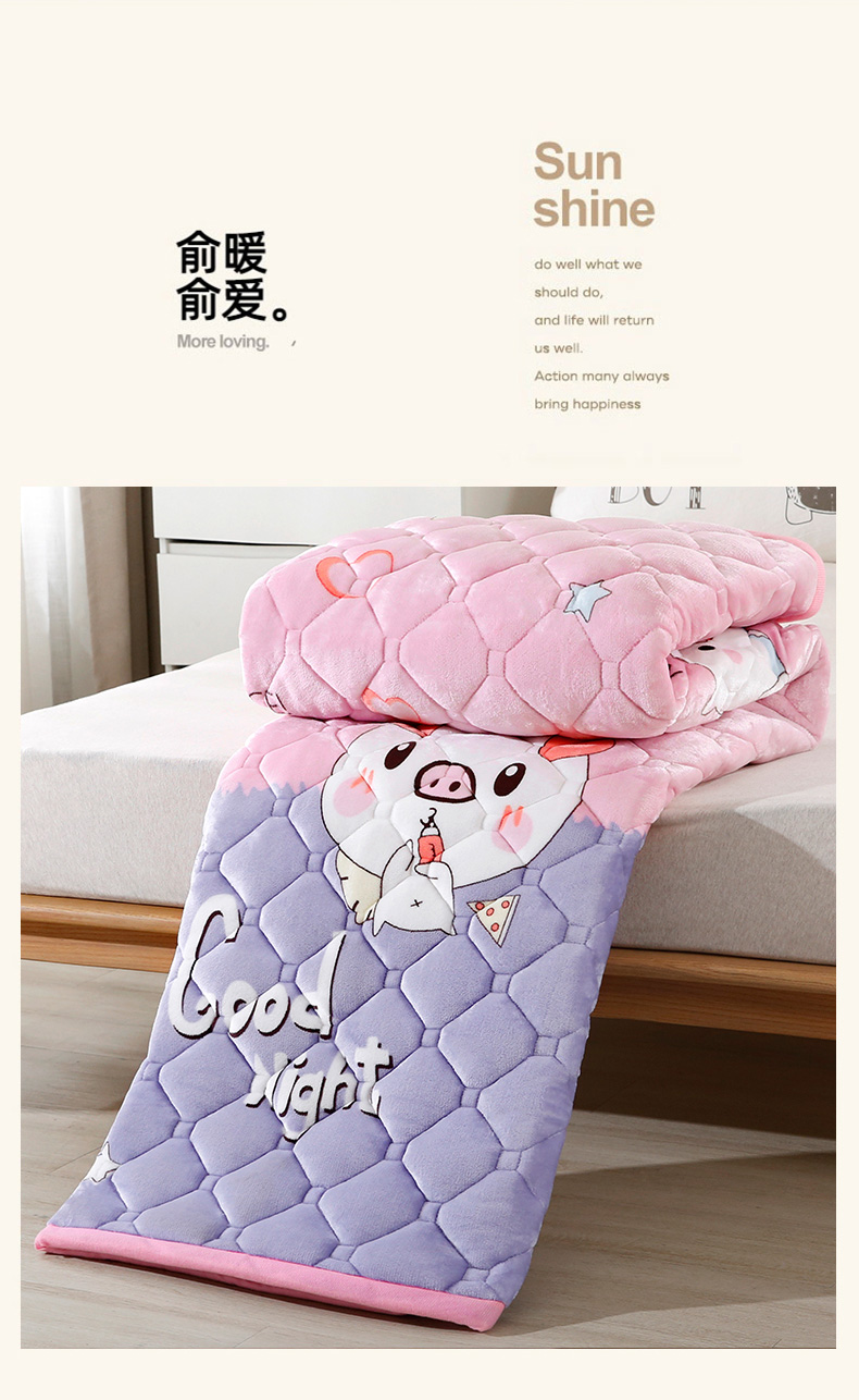 商品名称:东宇 2024年新款A类抗菌牛奶绒大床加厚床垫 晚安猪